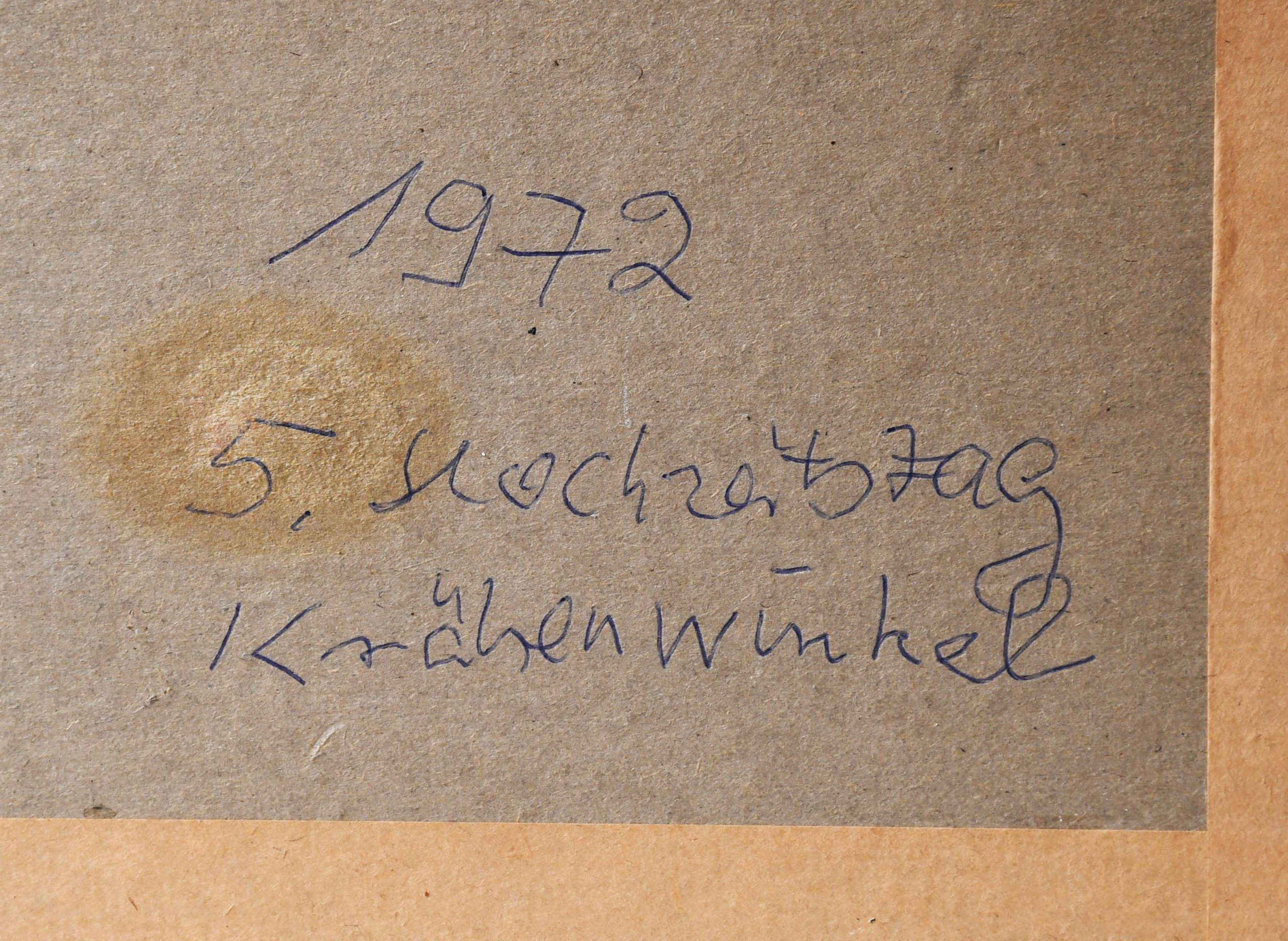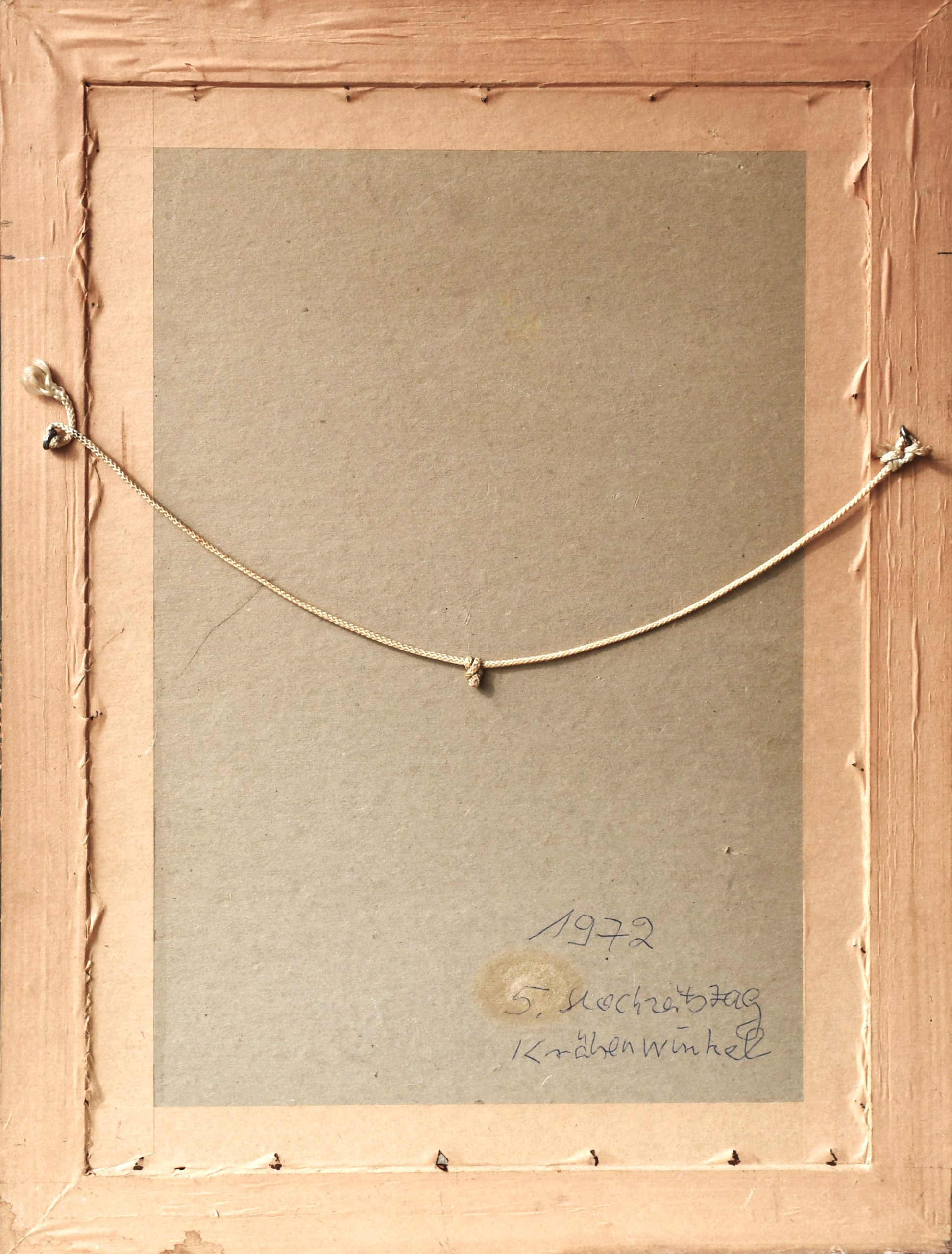 Елегантна и експресивна работа от 70те. Великолепно изпълнение, с маниера на релефното рисуване. Изцяло в стила на Robert Cox, но без подпис не може да се докаже. Рамкирана в подходяща рамка от периода. Ръчен надпис на немски на гърба (представен в близък план).