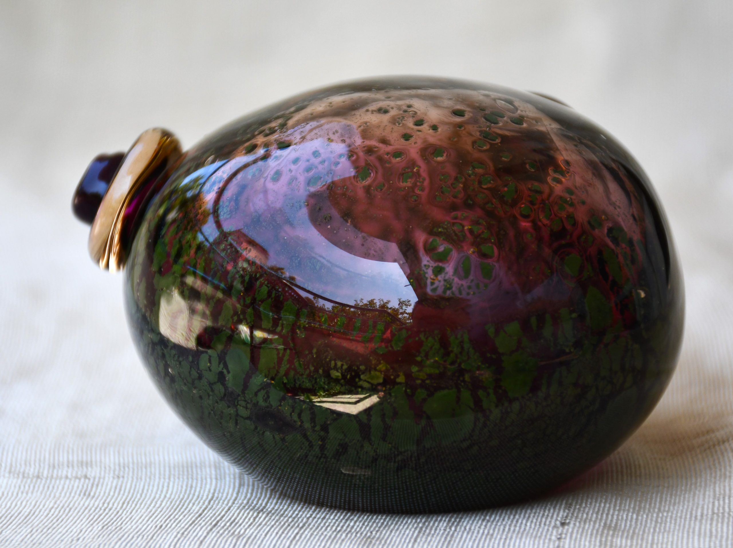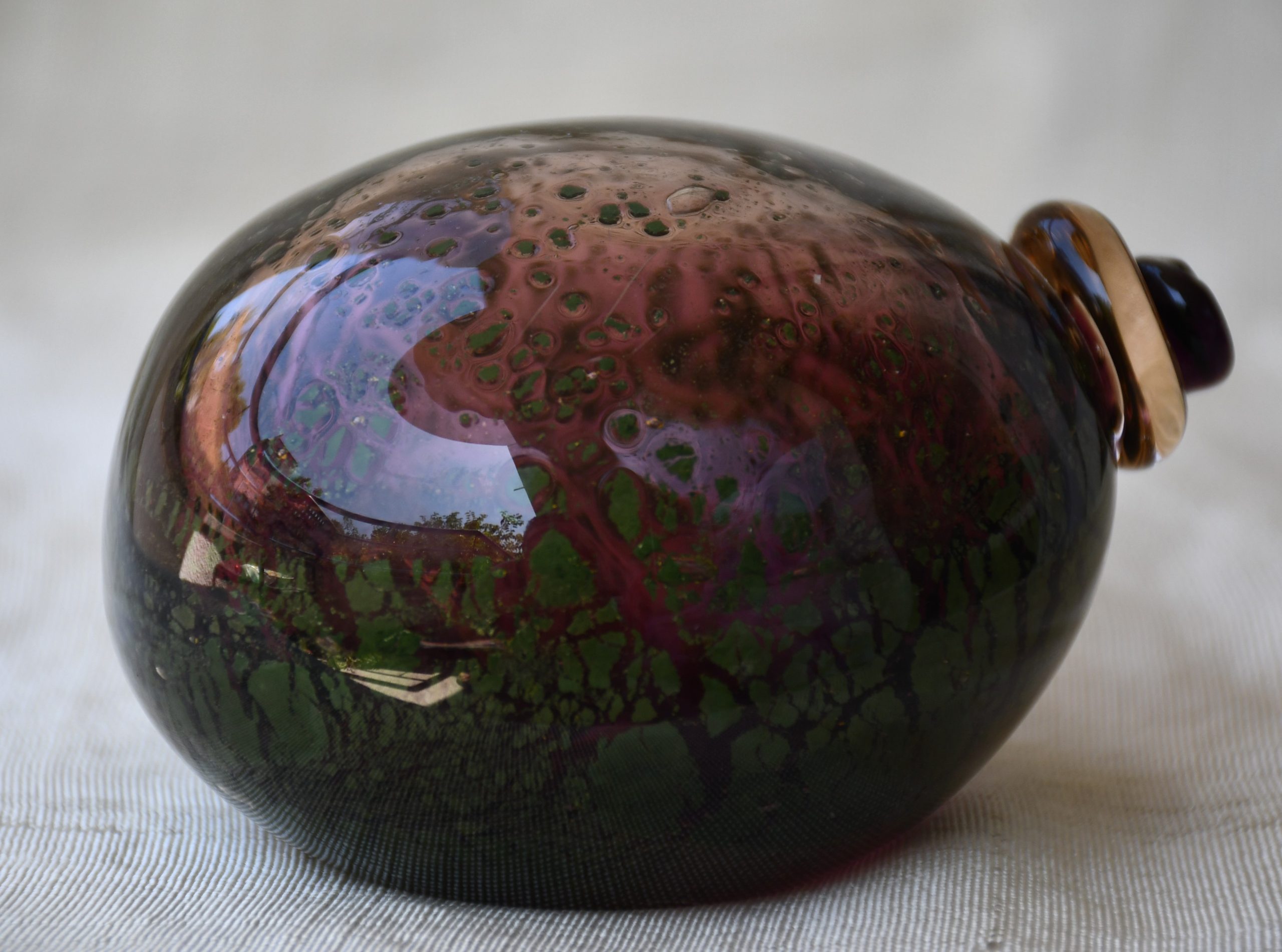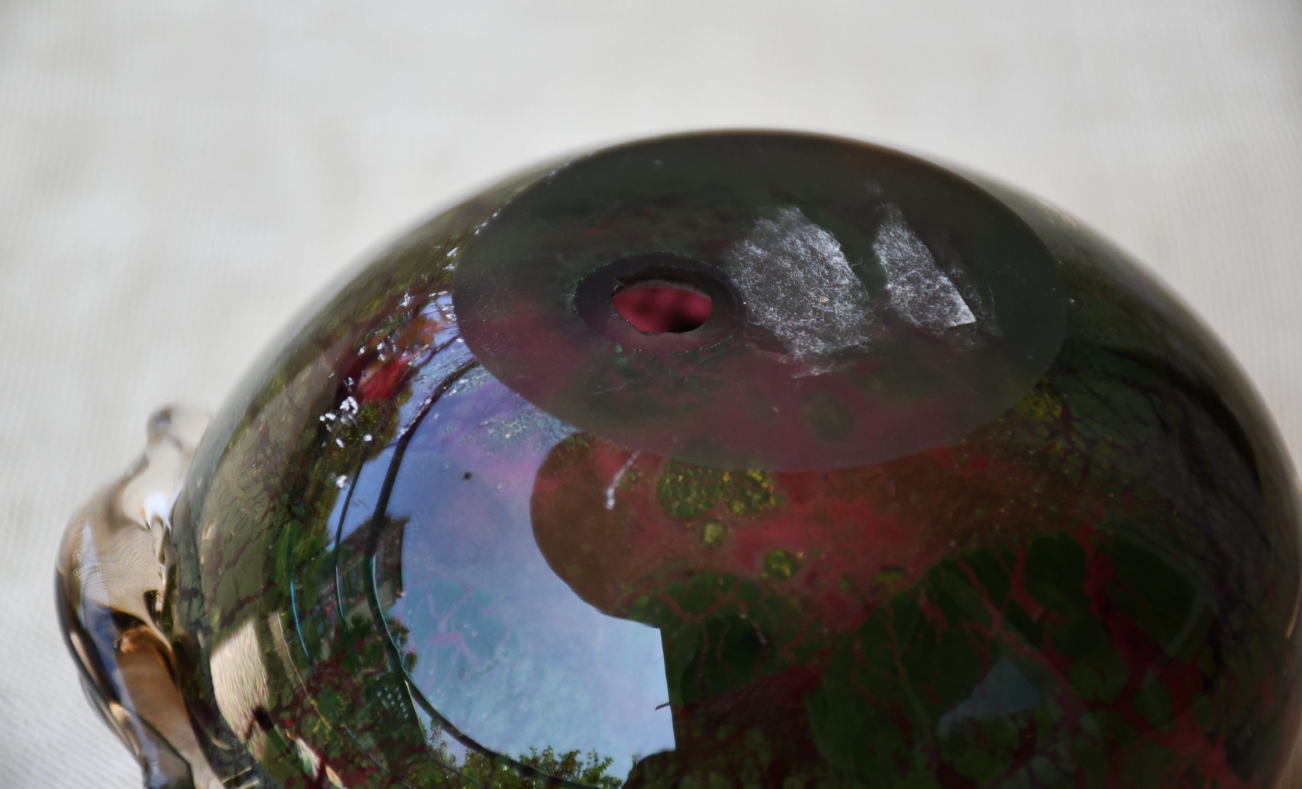 В чудесно общо състояние, съвсем леки следи от изминалото време – наистина незначителни леки драскотини. Остатъци от етикет по дъното. Малки несъвършенства вътре в стъклото, резултат от ръчния метод на изработка.