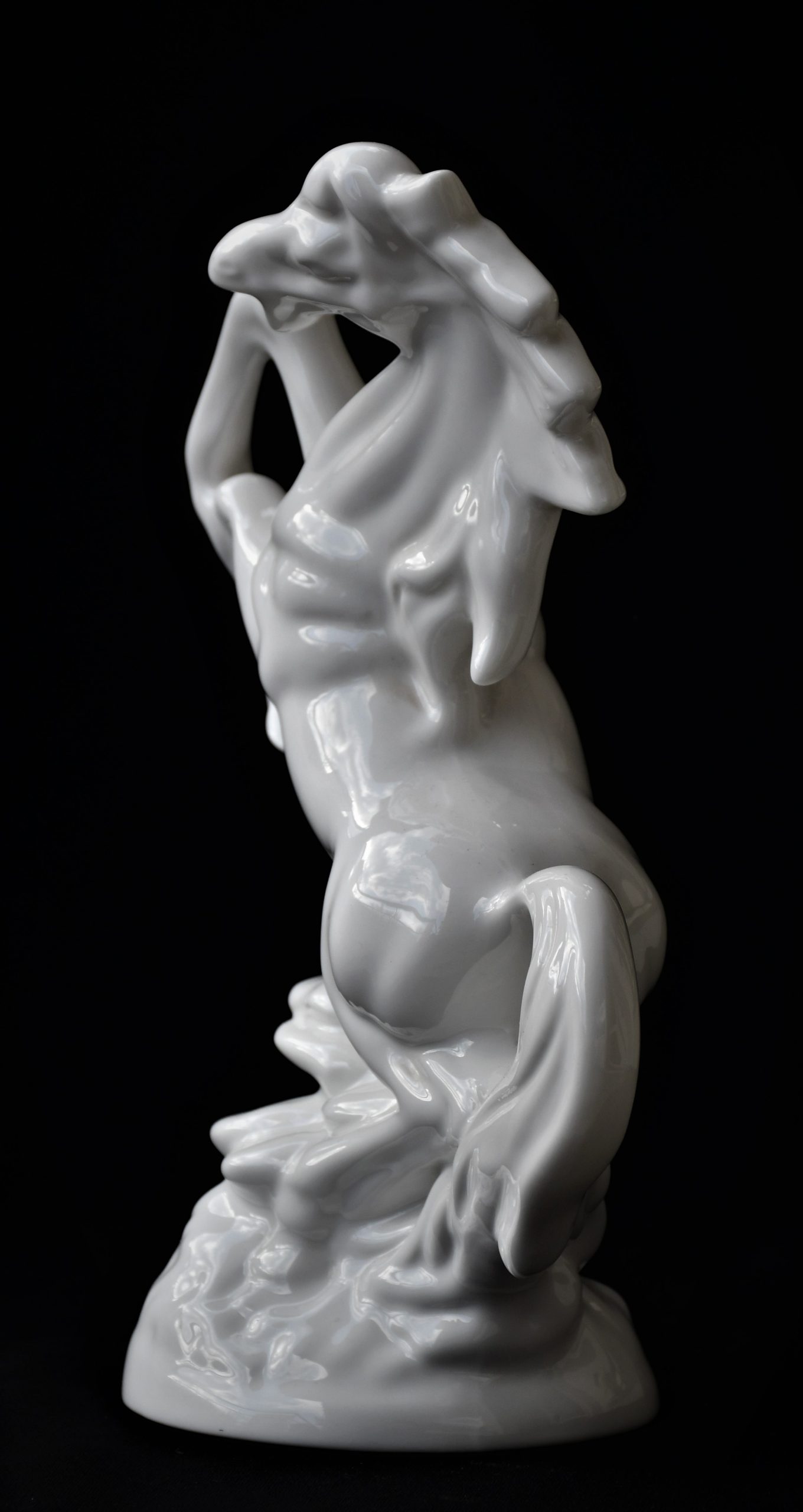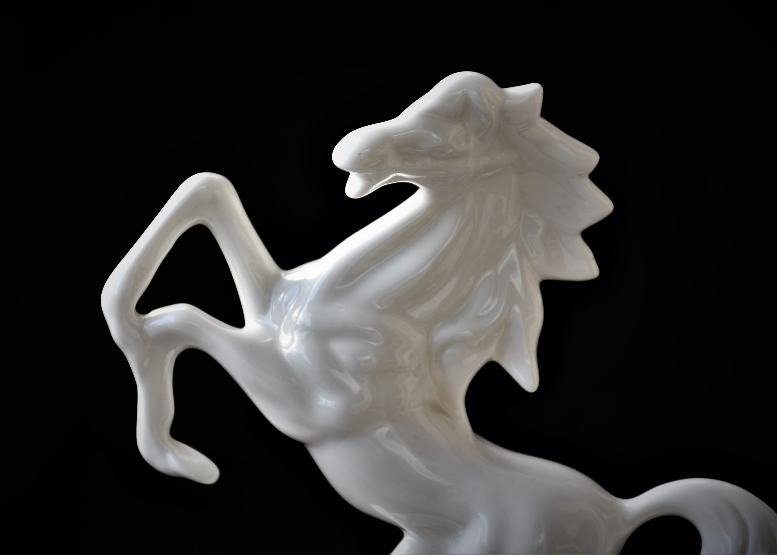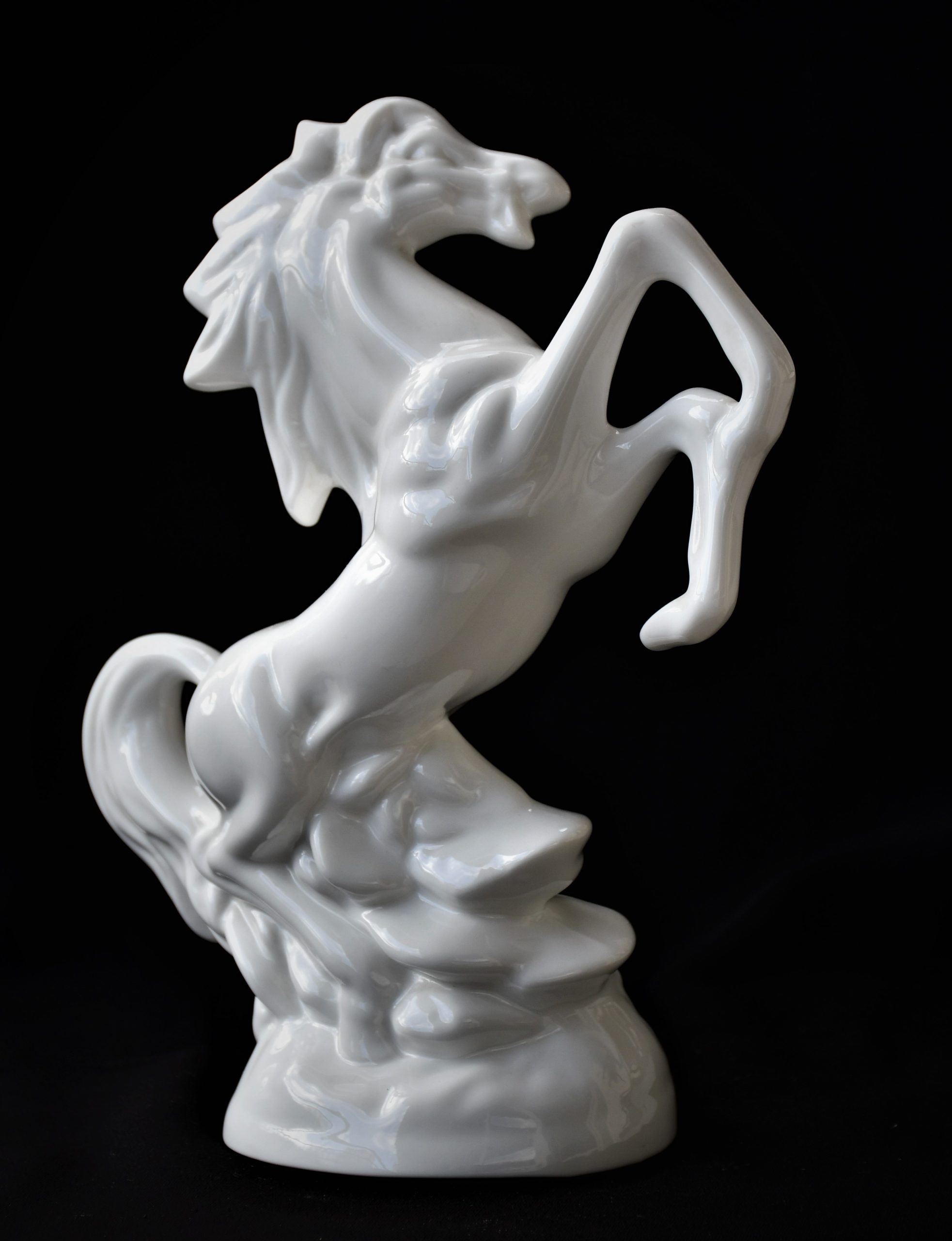 Впечатляваща порцеланова статуетка на изправен на задните си крака жребец. Произход – Австрия. Период: втората половина на ХХ век.
