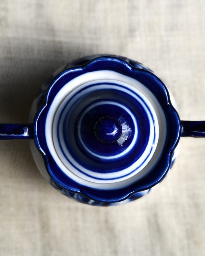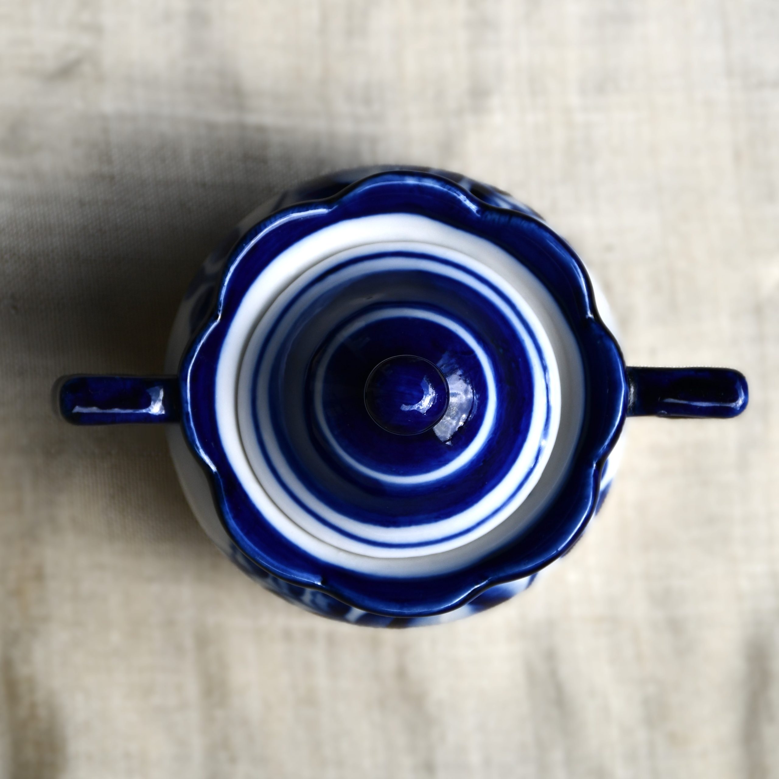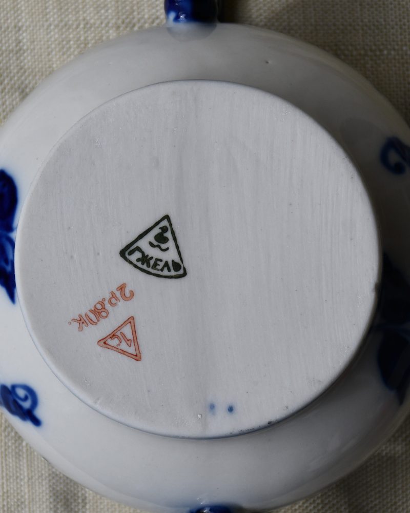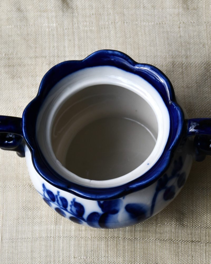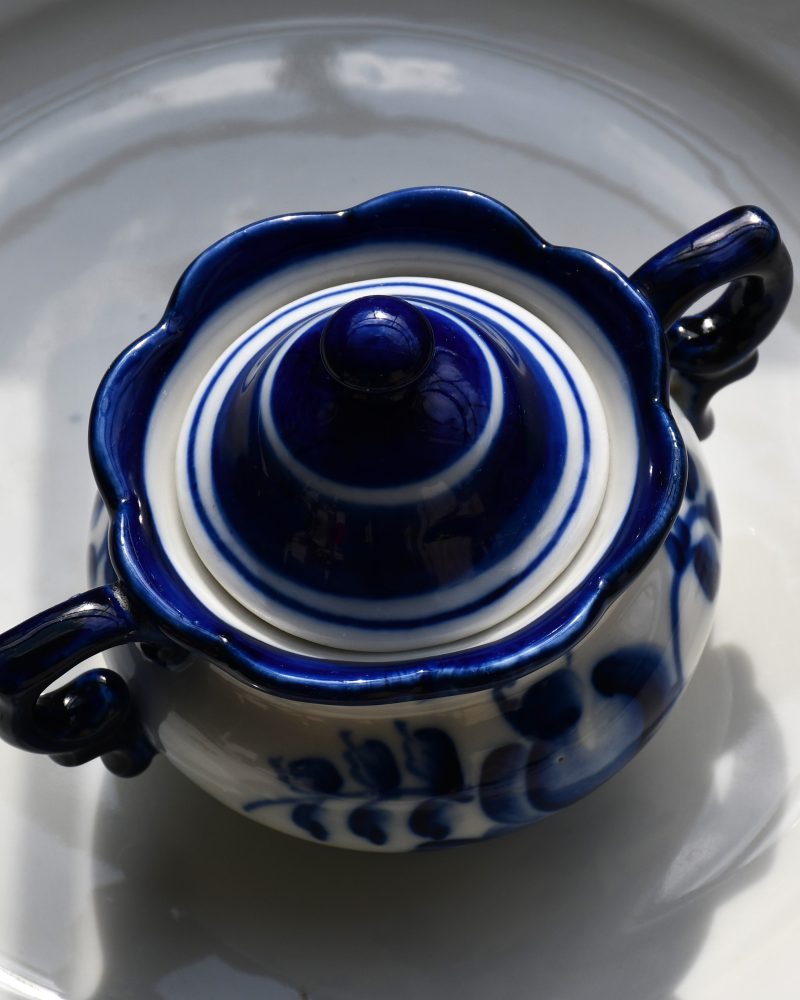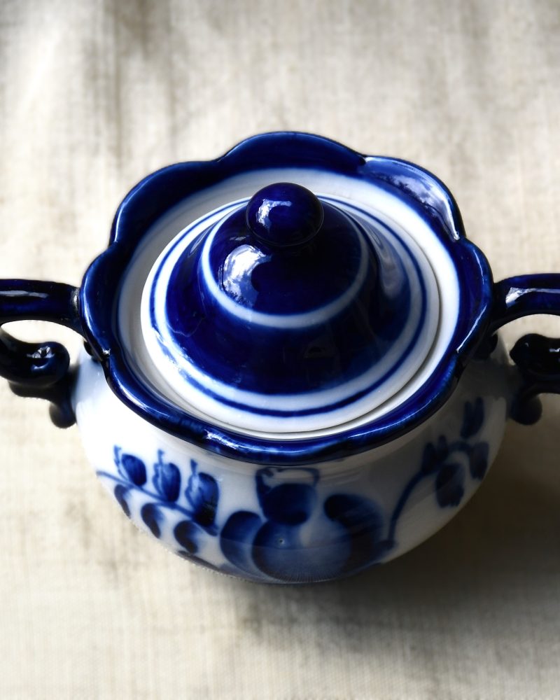 Порцеланова захарница на Гжел. Vintage, датировка втората половина на XXв. Напълно маркирана. Червен печат за първо качество.