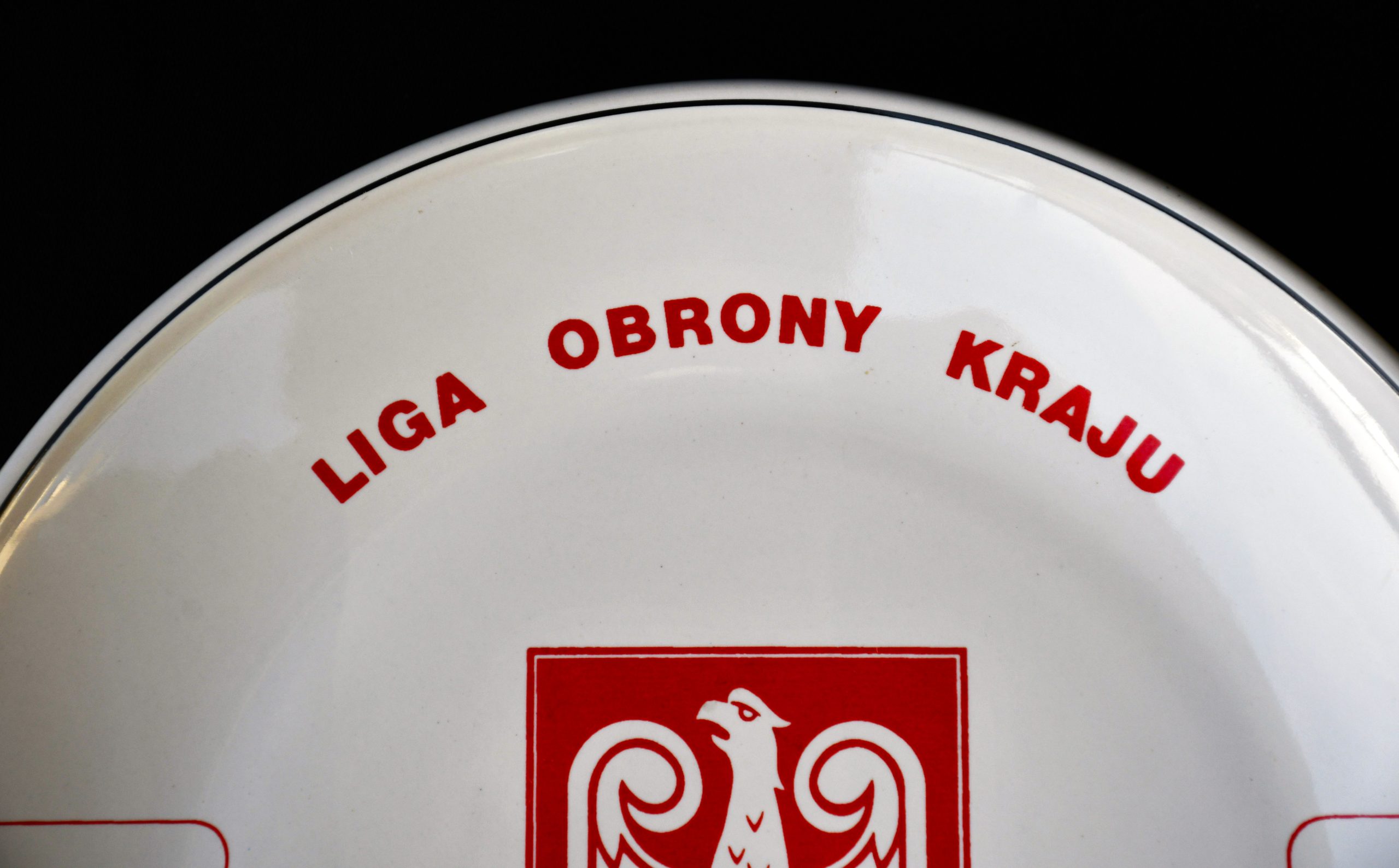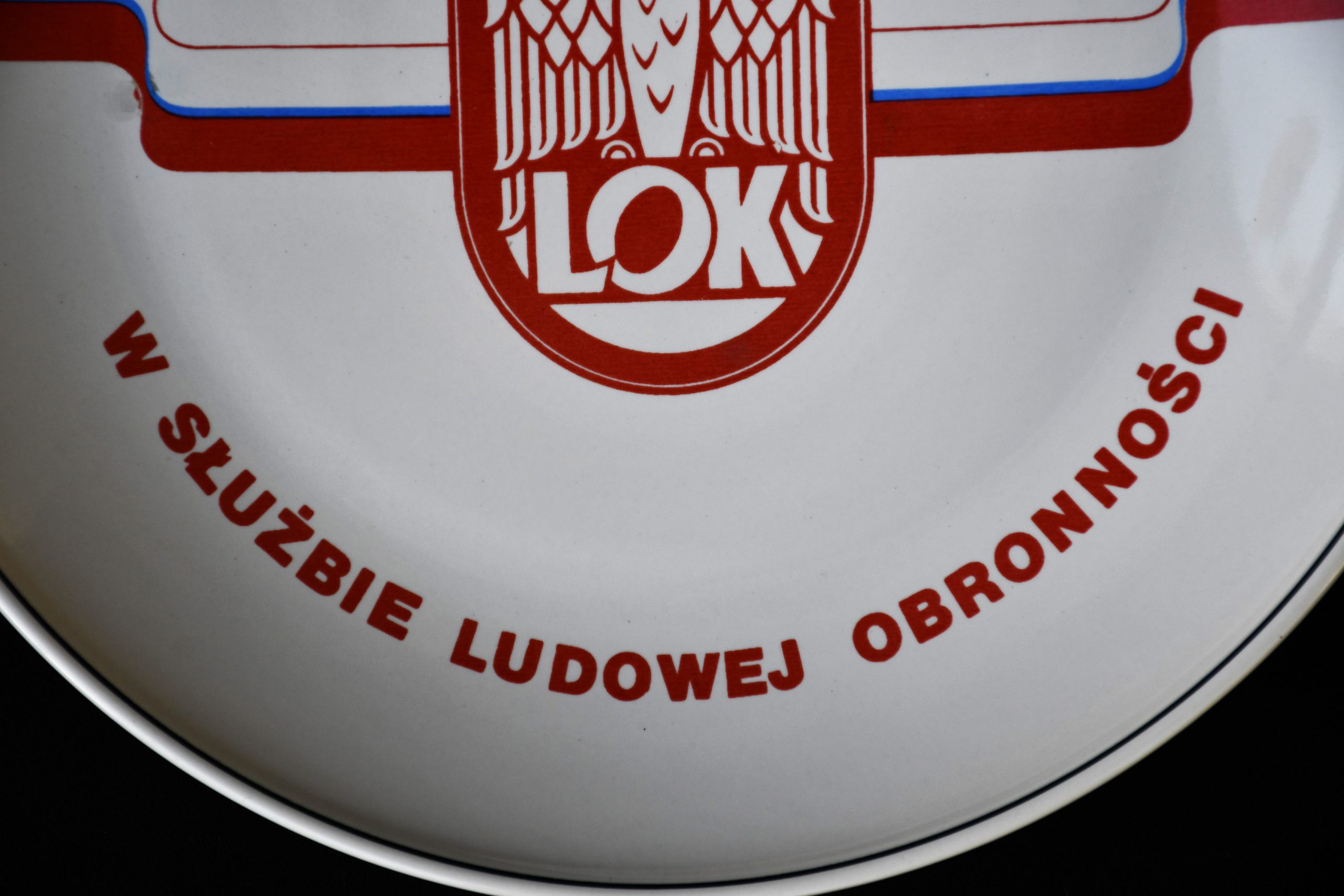 Историческа чиния, от 1970-те. Официален сувенир на LOK – Liga Obrony Kraju (Лига за защита на отечеството) – националистична паравоенна организация в Полша. Колекционна. Рядка.