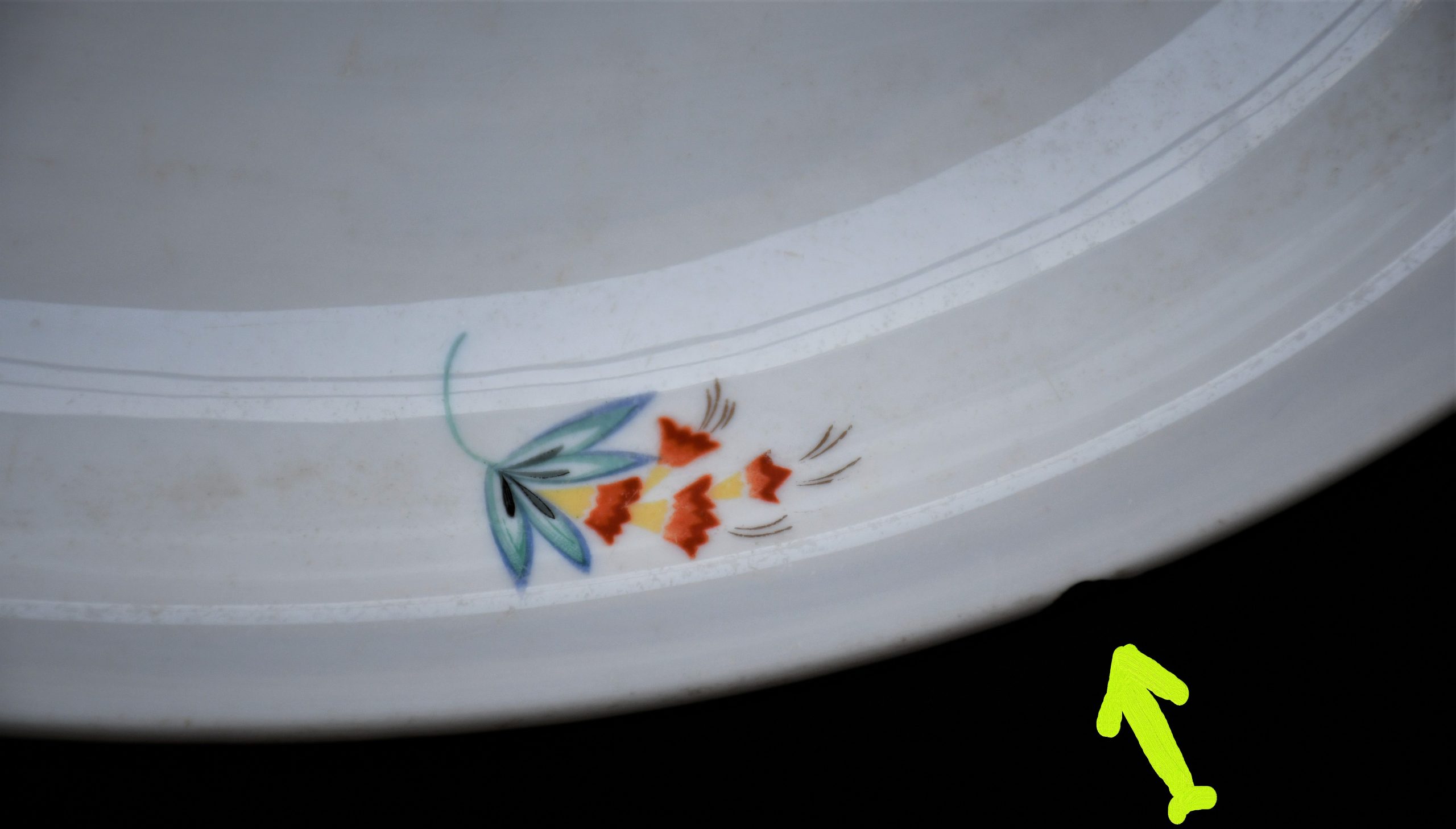 Част от историята. Великолепна голяма чиния/плато от завода на „Bohemia Ceramic Works“ – Neurohlau (Nová Role), Чехословакия. Датирана 1941-45.