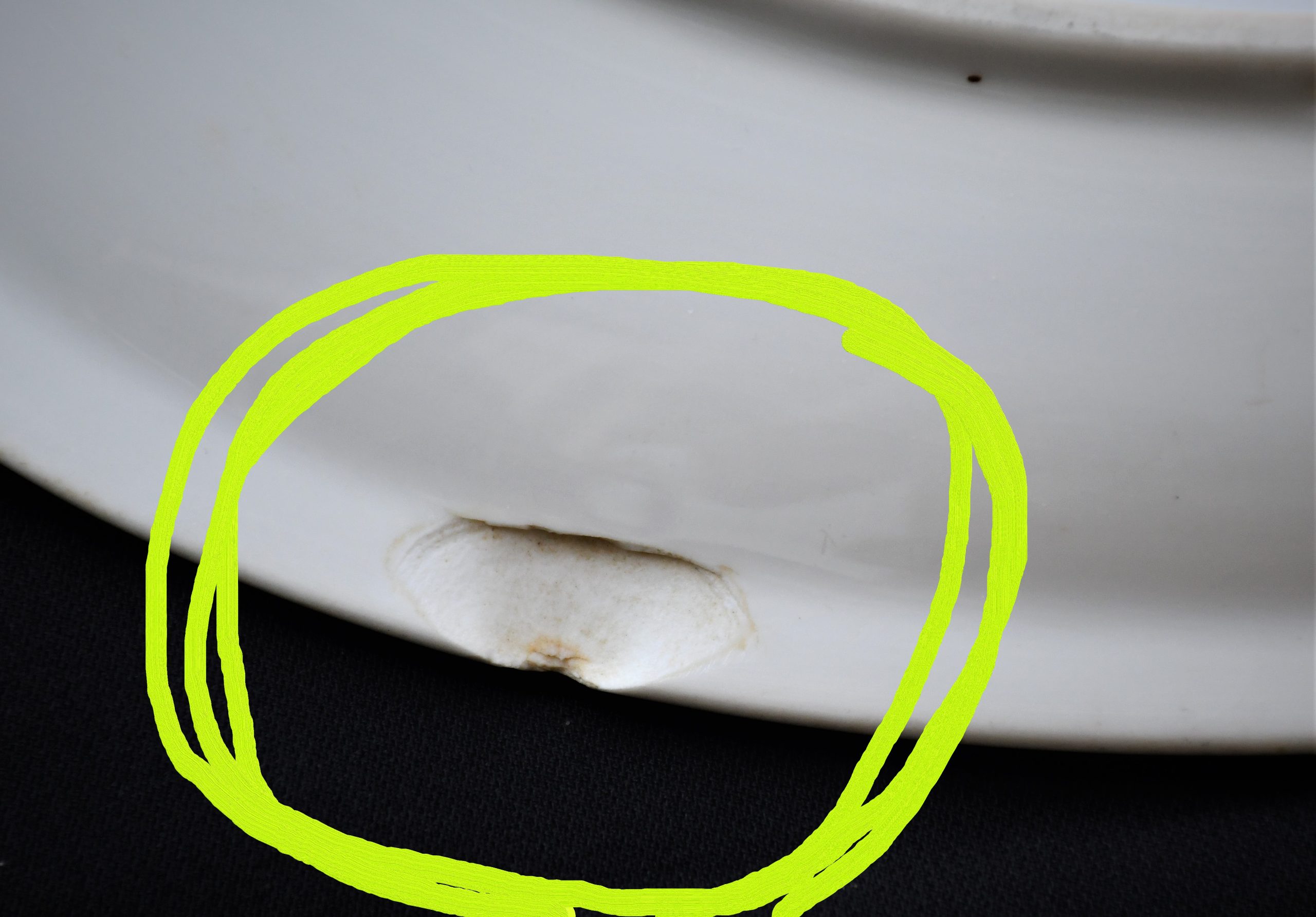В много добра форма, съобразно възрастта си. Лека автентична патина. За съжаление има малък чип от долната страна на ръба – отбелязан на снимките. При положение в дисплей или поставена на маса – почти не се забелязва.