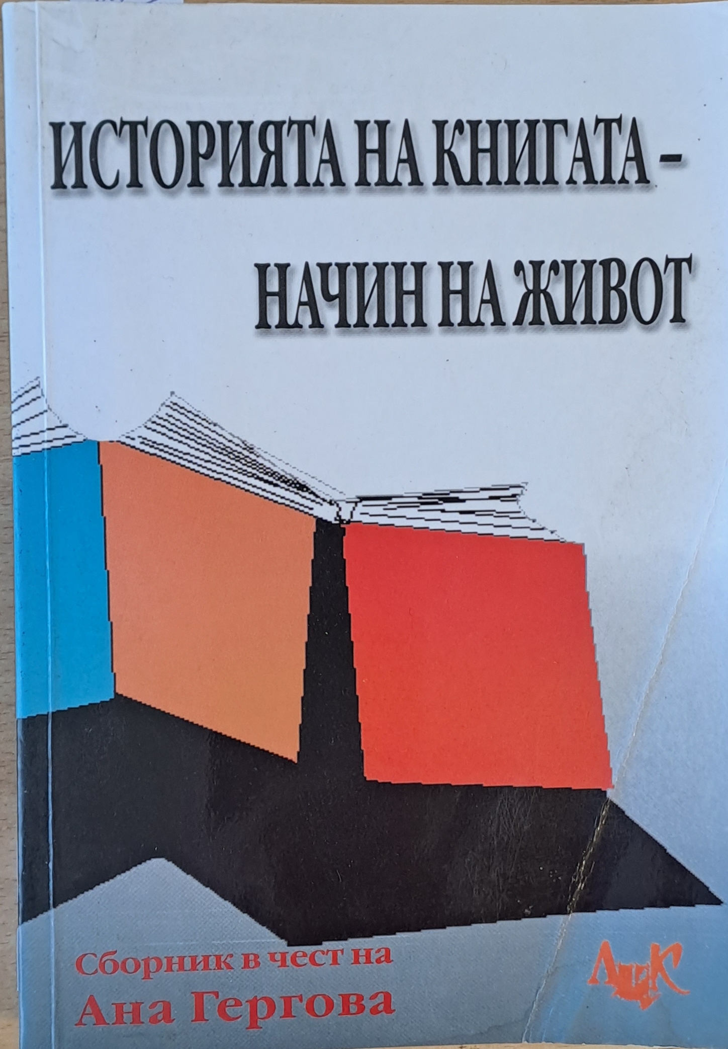 Прегъната предна корица и малко петно от намокряне от вътрешната страна на същата корица