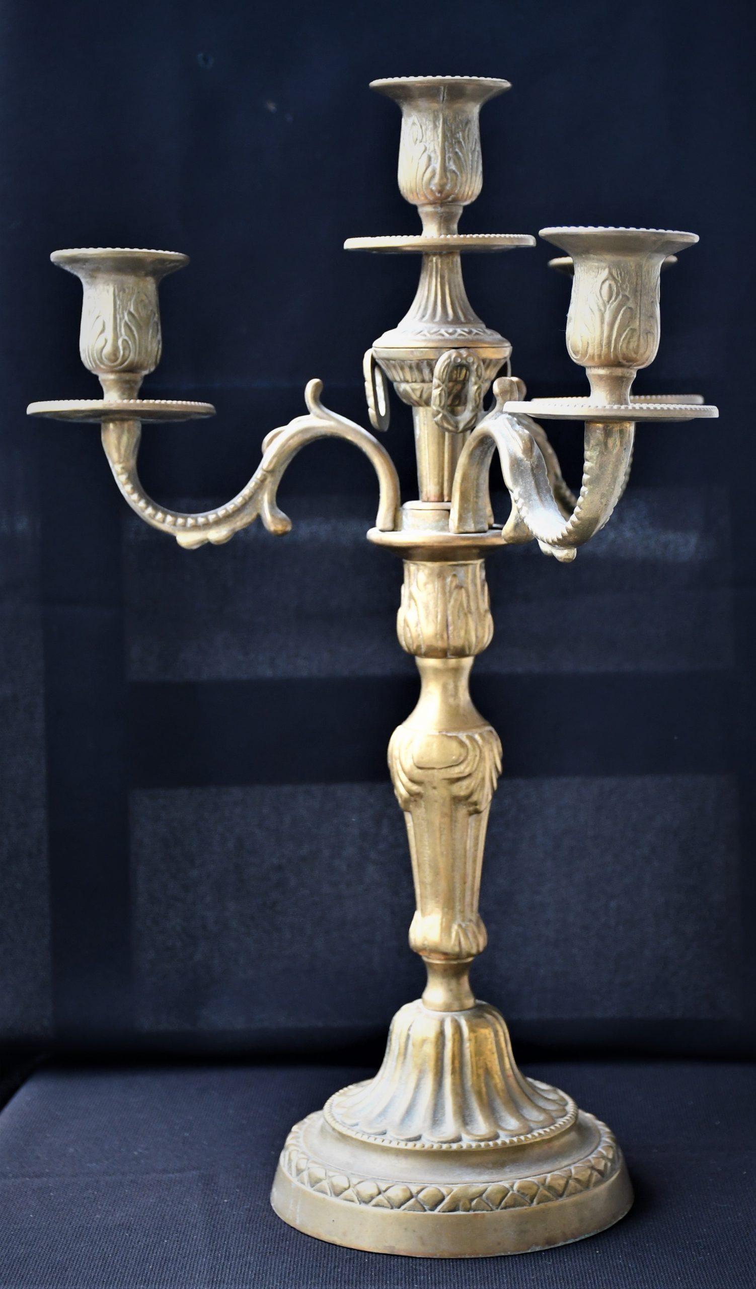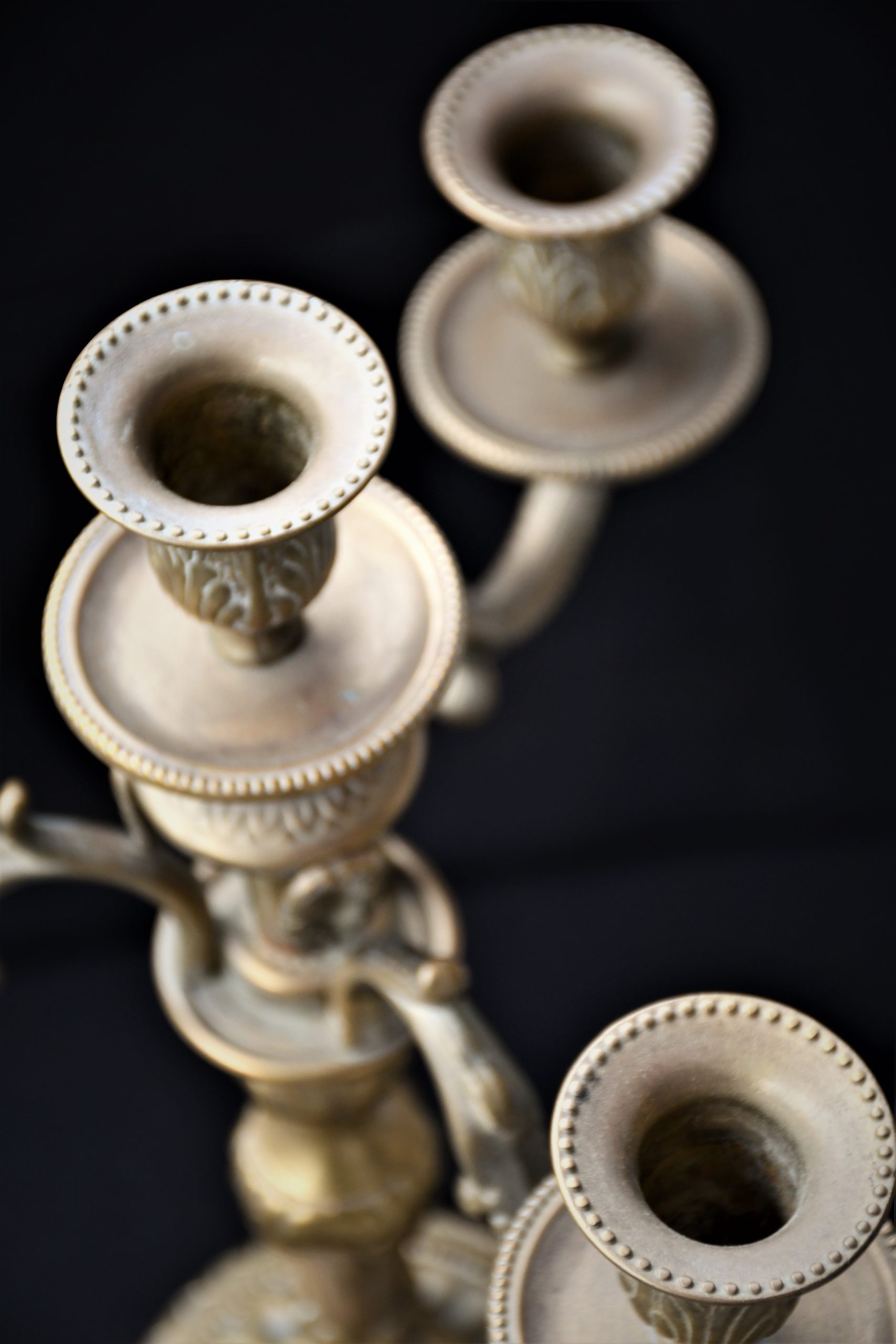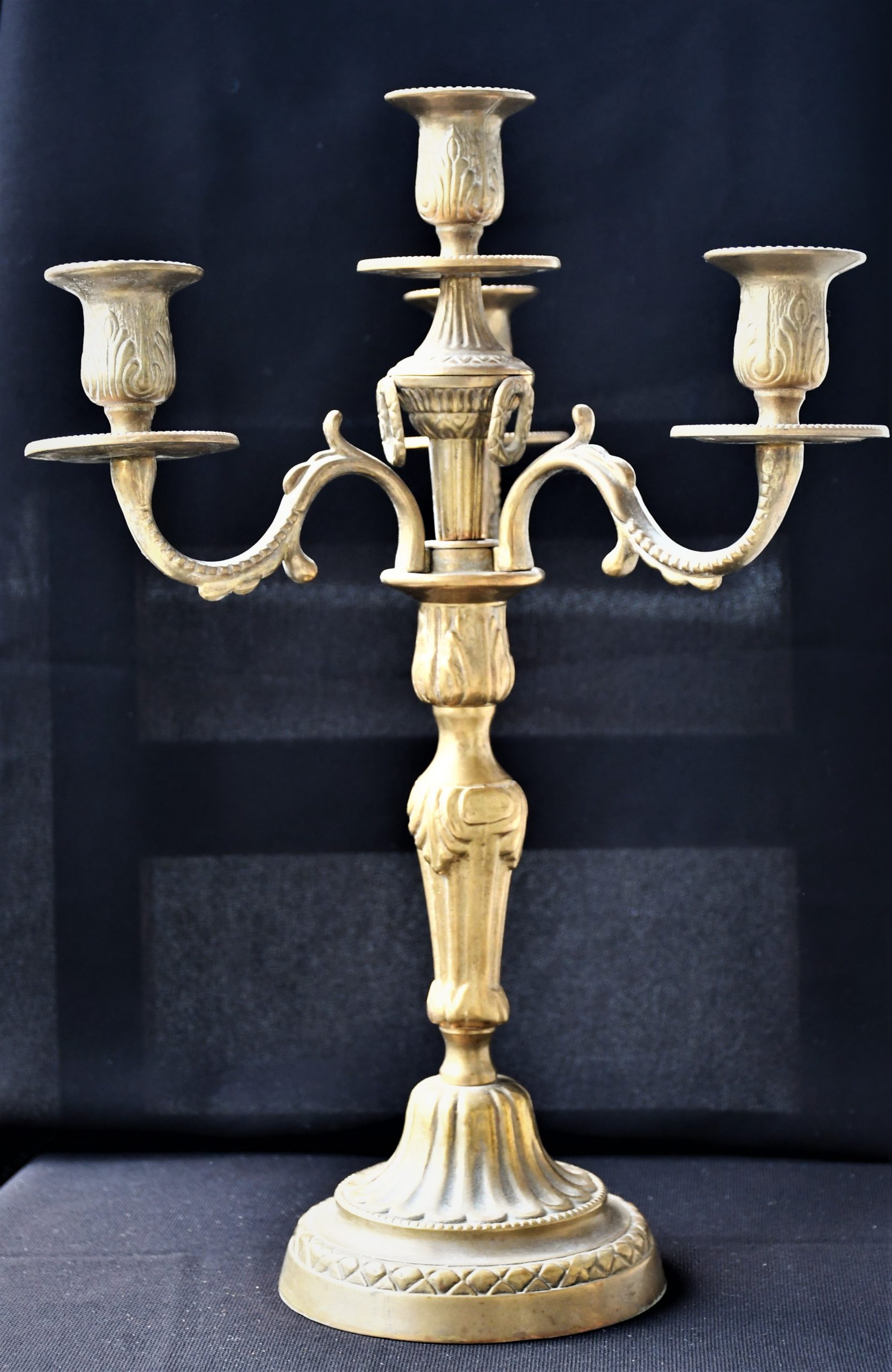 Импозантен свещник – канделабра за 4 свещи. Солиден лят бронз. В стила на Третата империя.