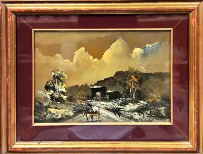 Картина масло върху дъска с рамка и стъкло