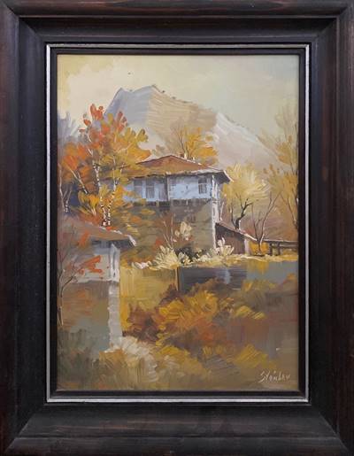 Картина масло върху платно с рамка-Ивайло Стойчев“Пейзаж от Мелник“