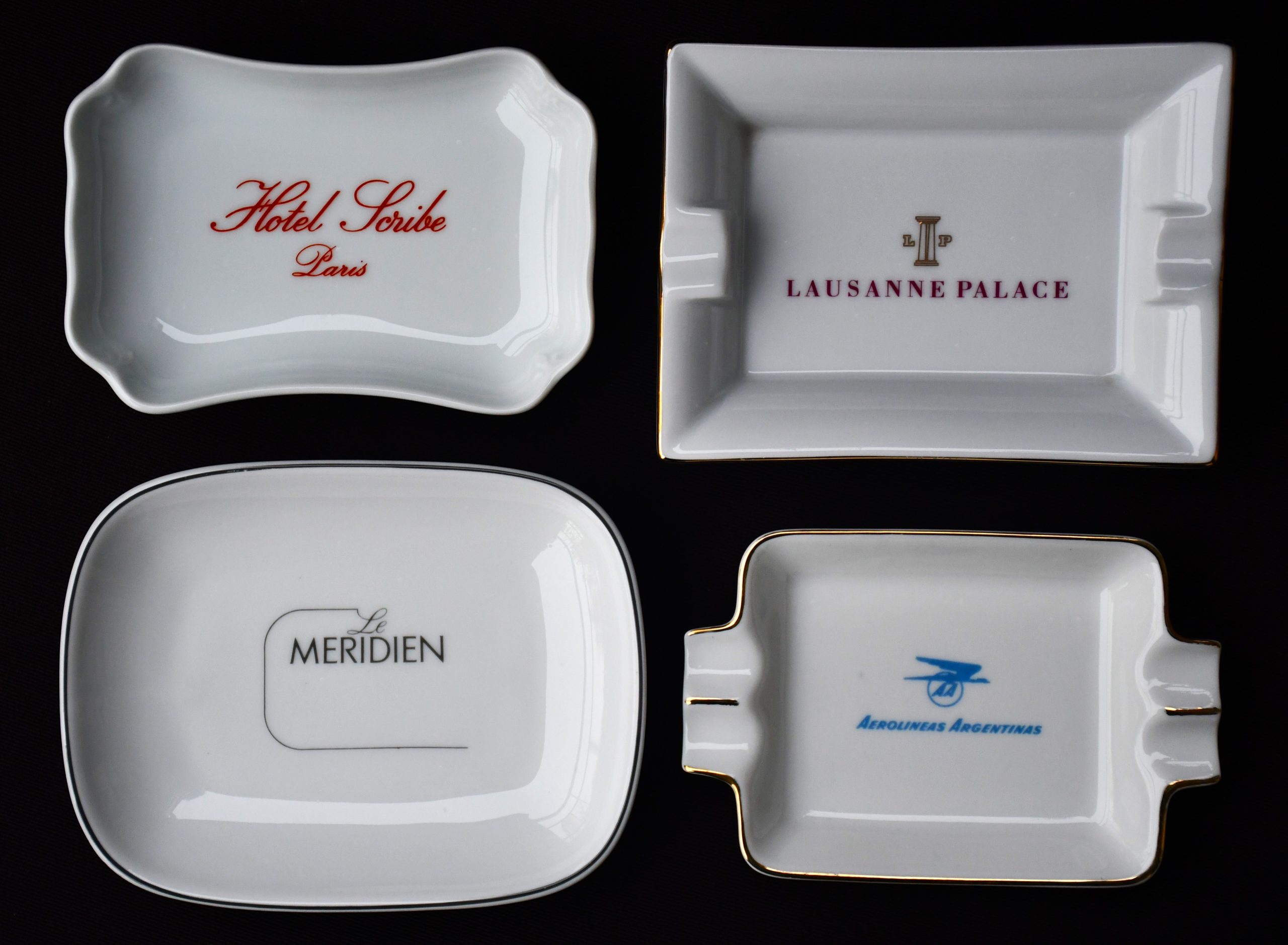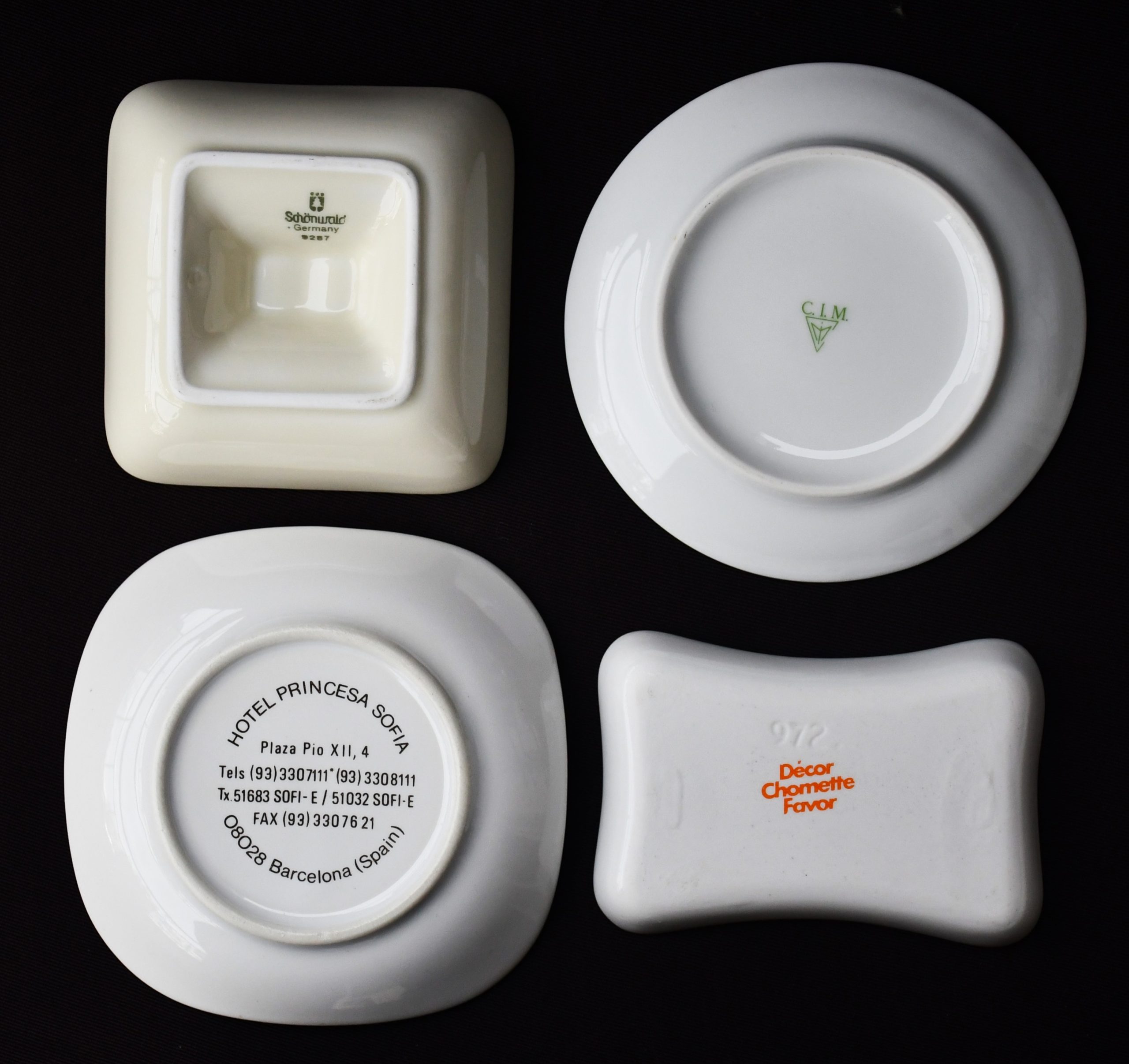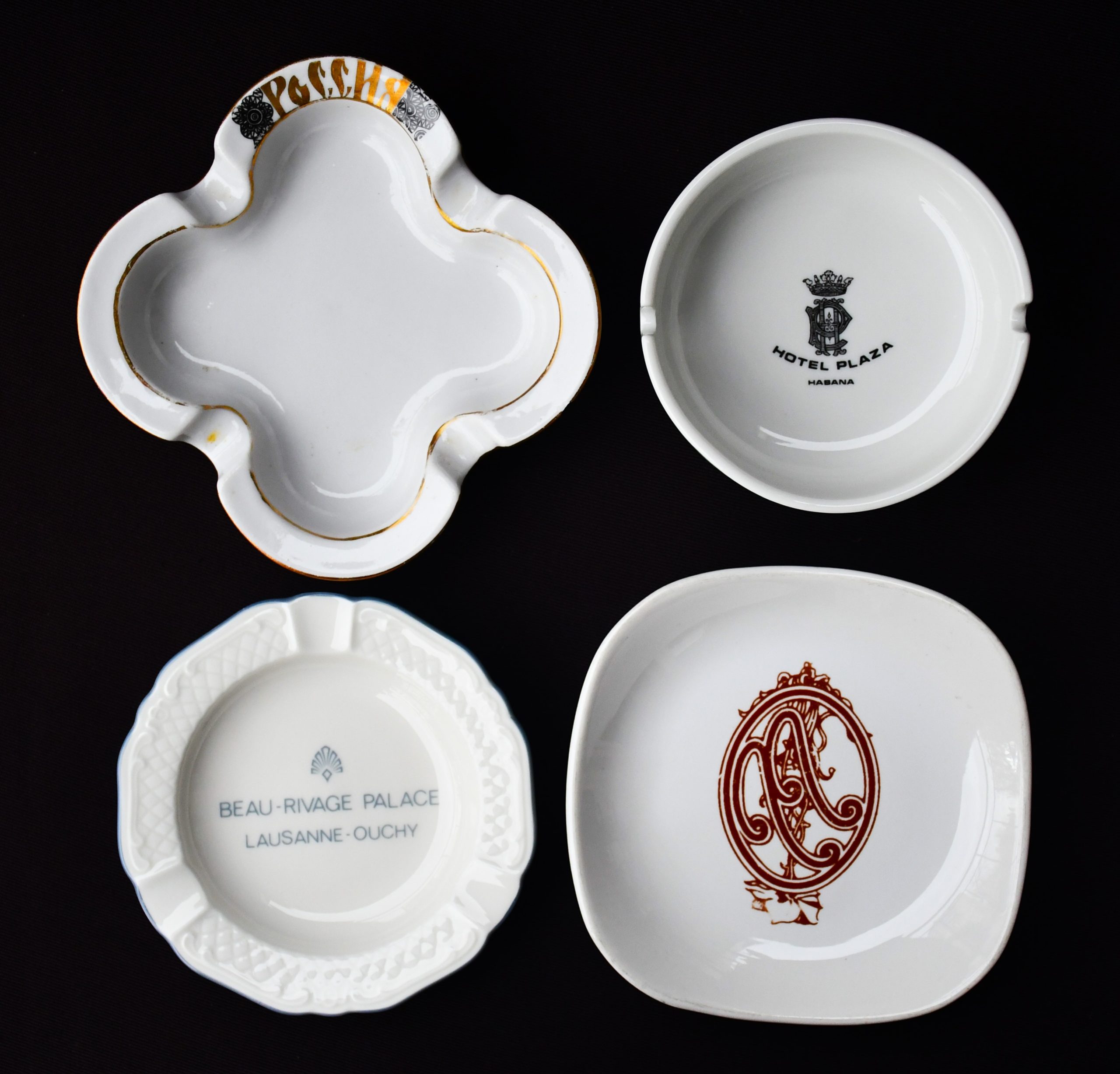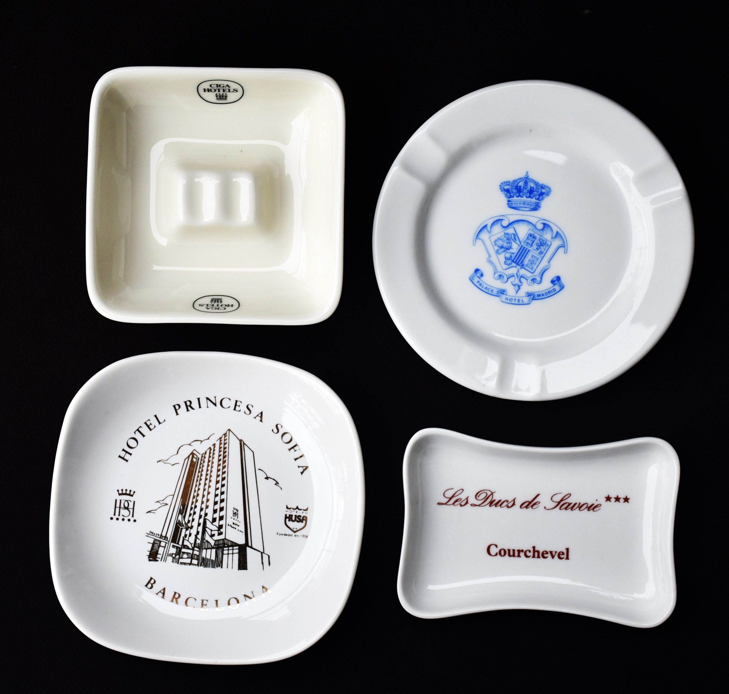 Богата колекция от 18 винтидж порцеланови пепелници. Всичките брандирани, от различни хотели по целия свят. Датировка 1970-80те.
