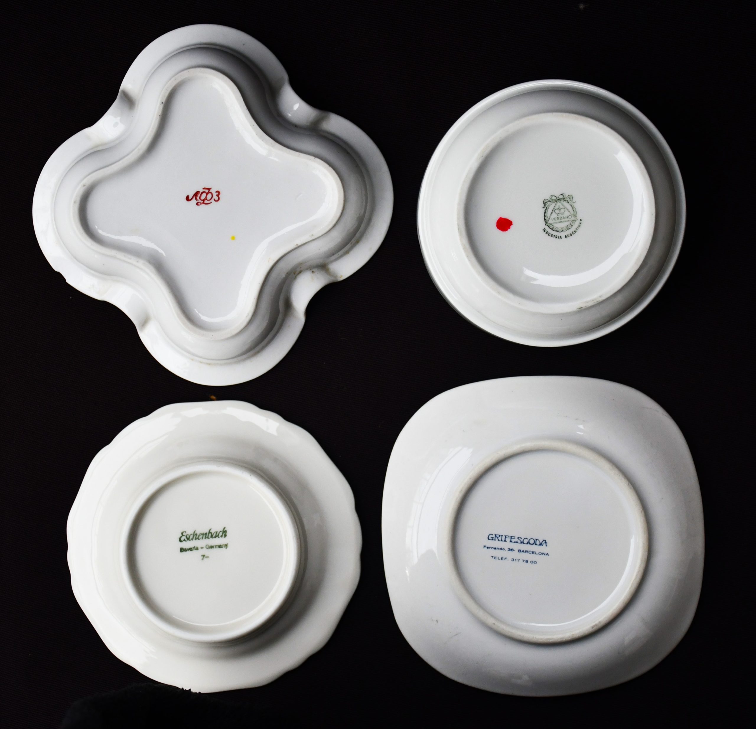 С различни форми и размери. Голямо разнообразие: Париж, Мадрид, Москва, Атина, Барселона, Аржентина и др. Разнообразни производители: ЛФЗ, Hutschenreuther, Limoges и пр.