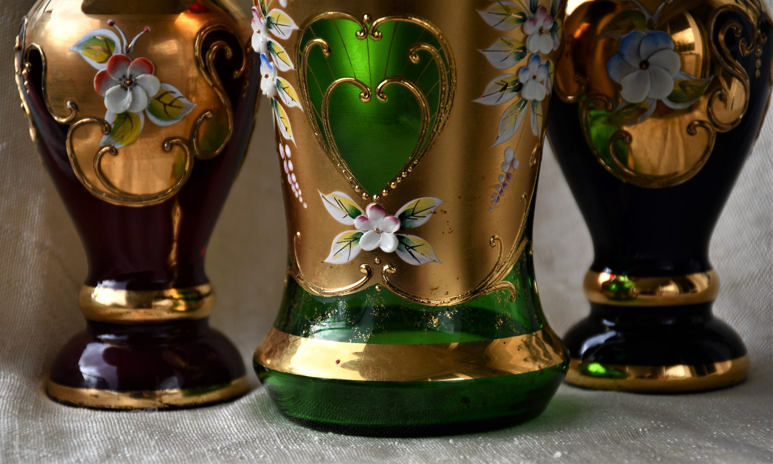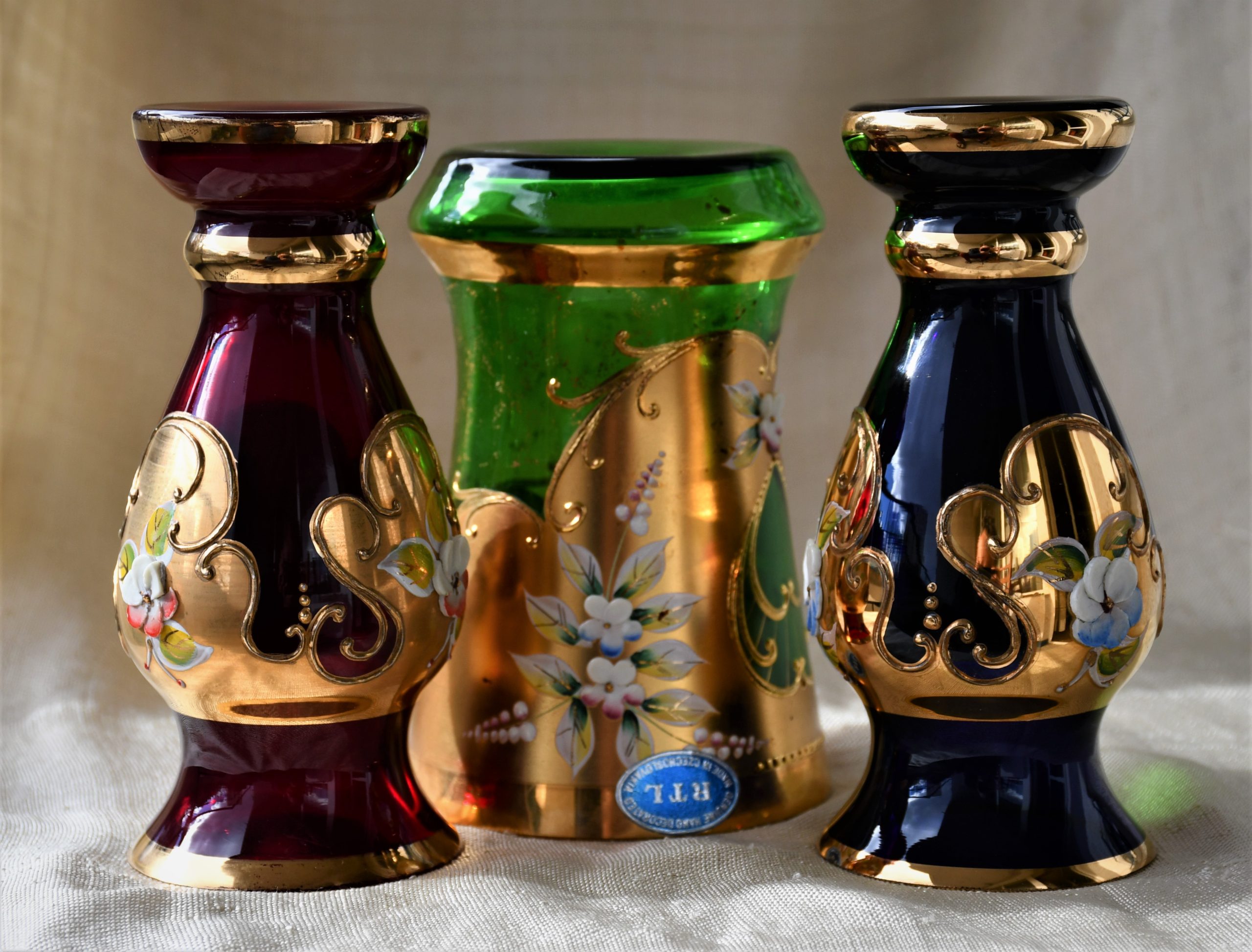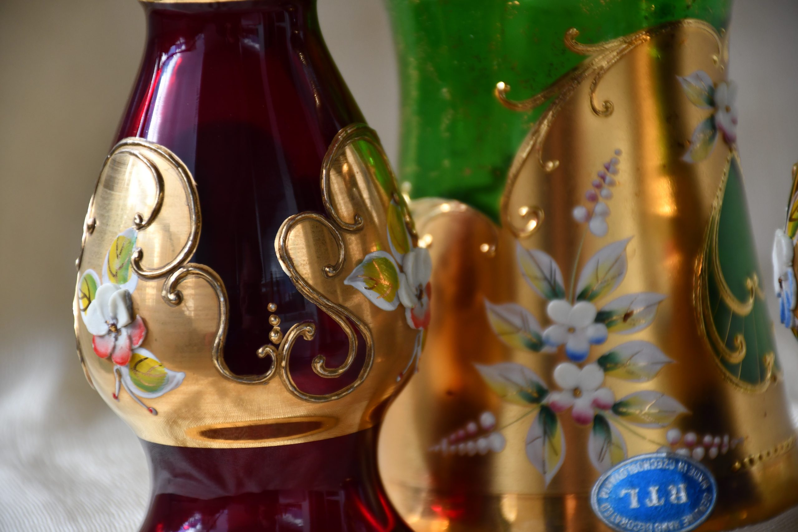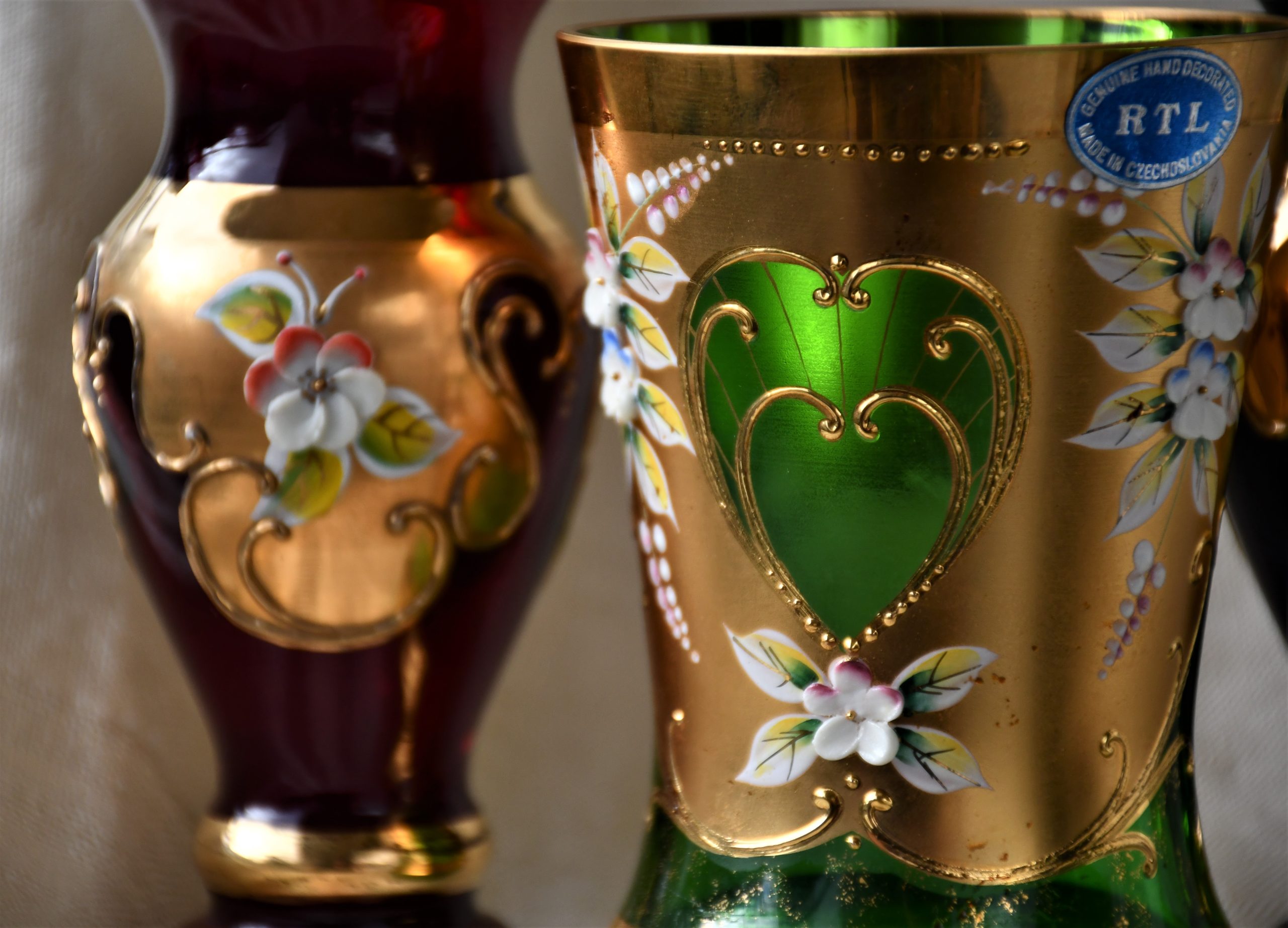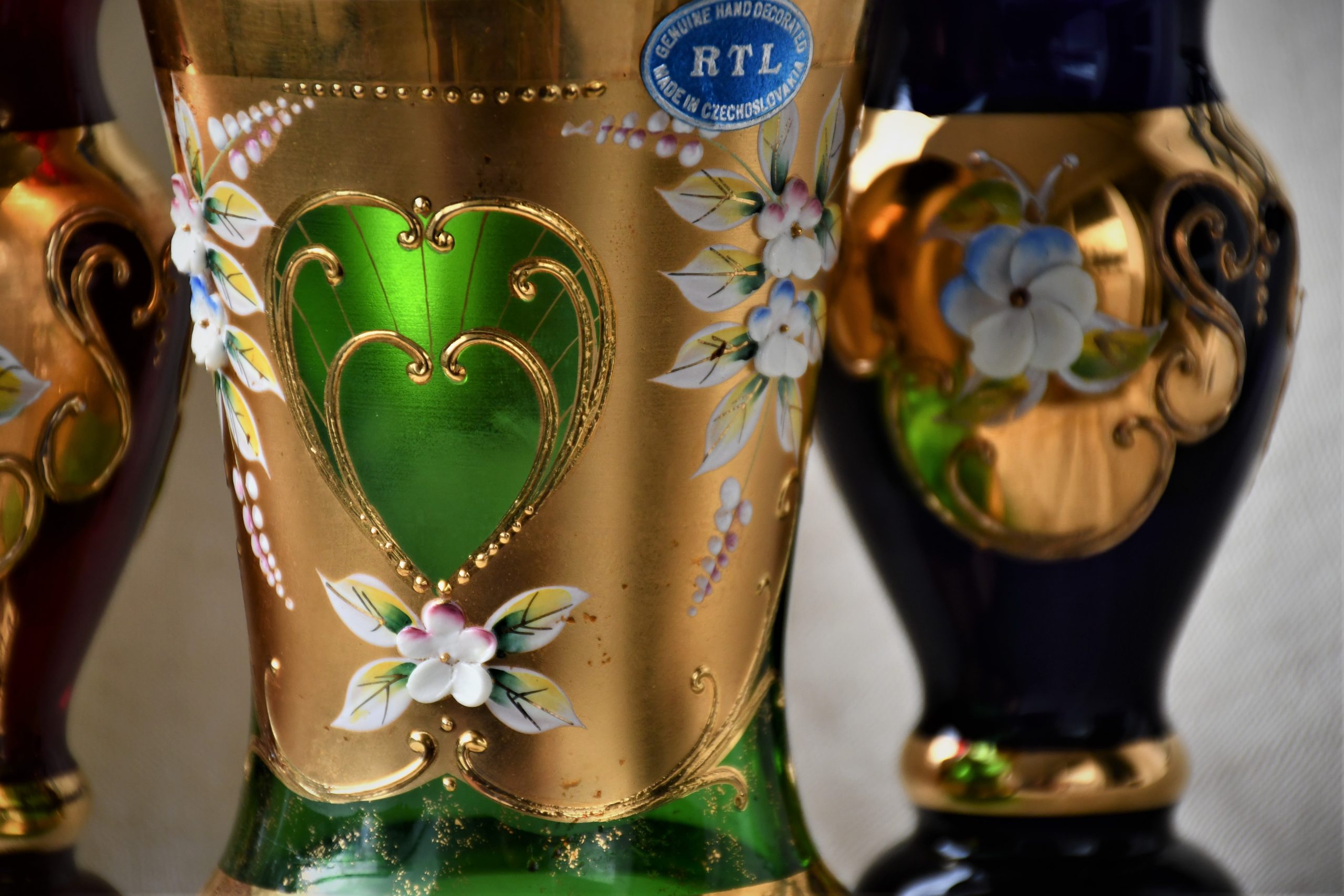 Зелената е още с фабричен етикет – RTL Made in Czechoslovakia.) Техниката, по която са изработени, се нарича „Tre Fuochi“ или „Три огъня“ и е създадена през Ренесанса във Венеция, за да угоди на непрекъснатия стремеж към лукс и разкош на местните богаташи.