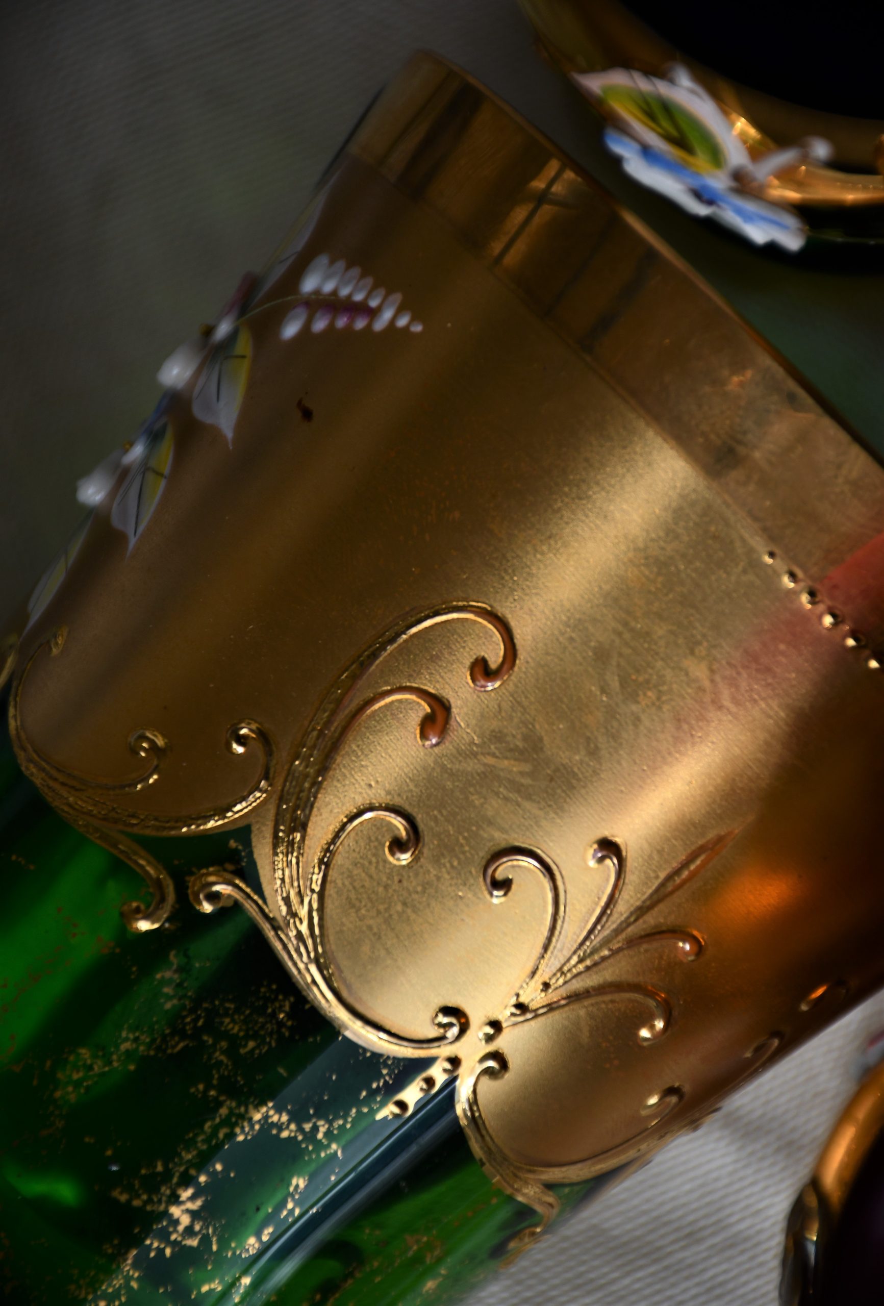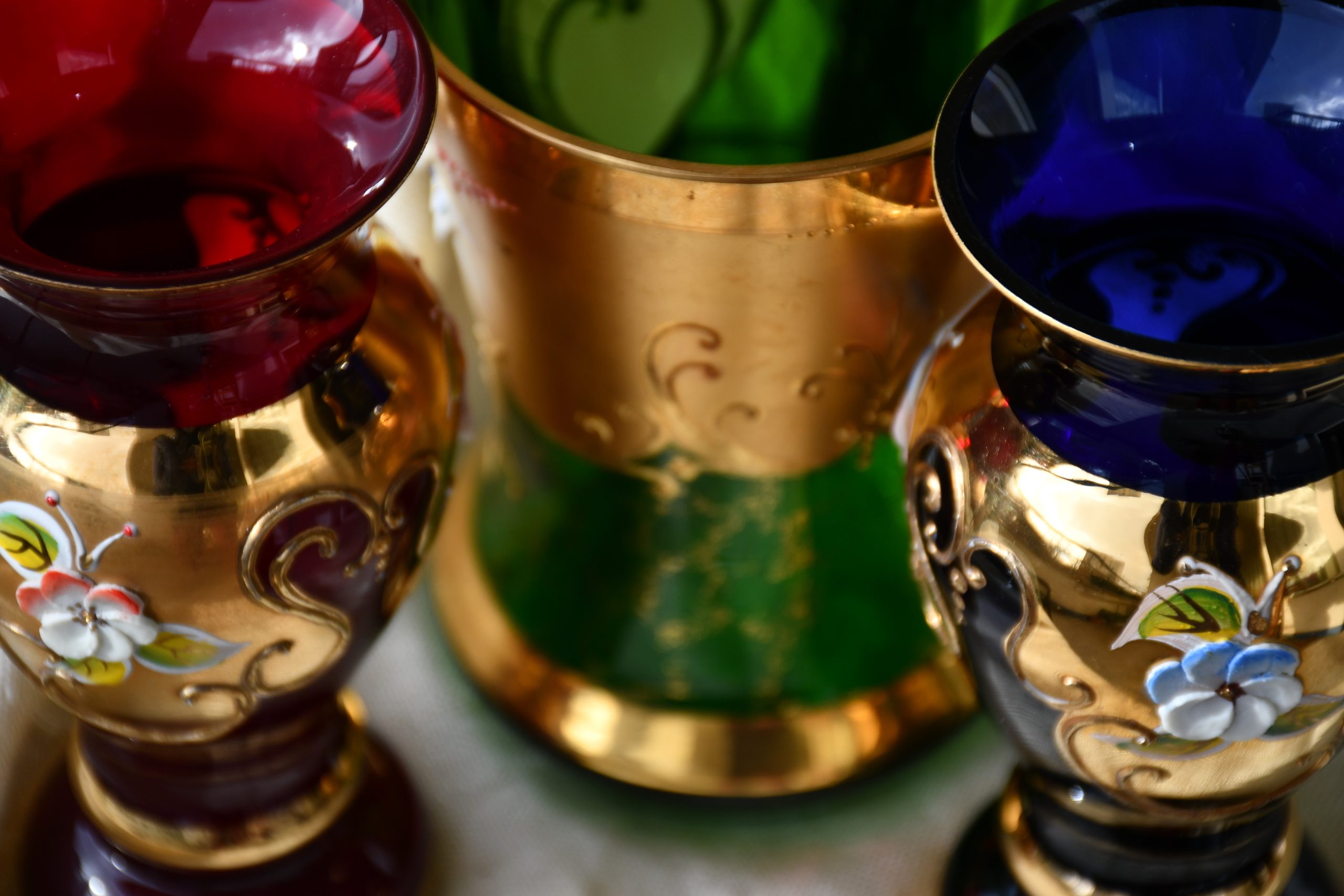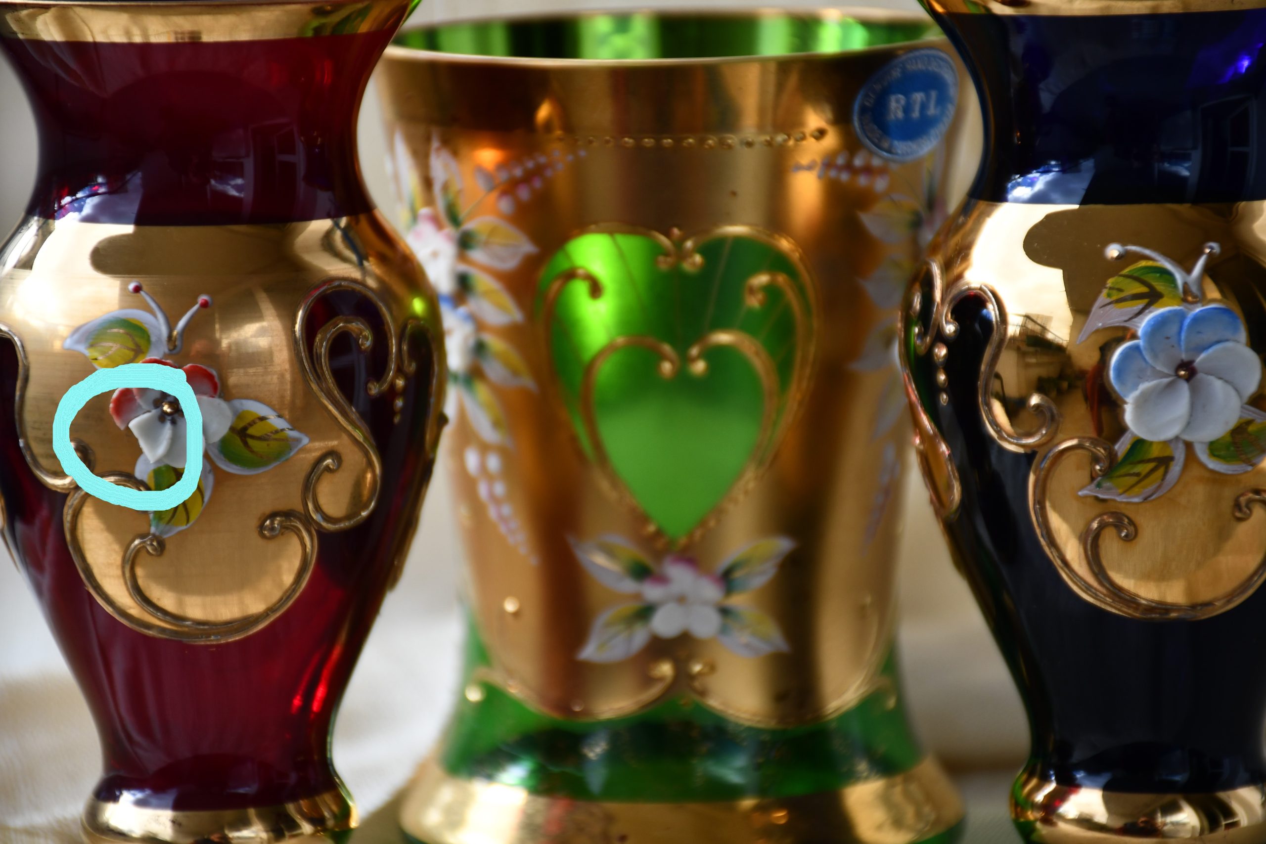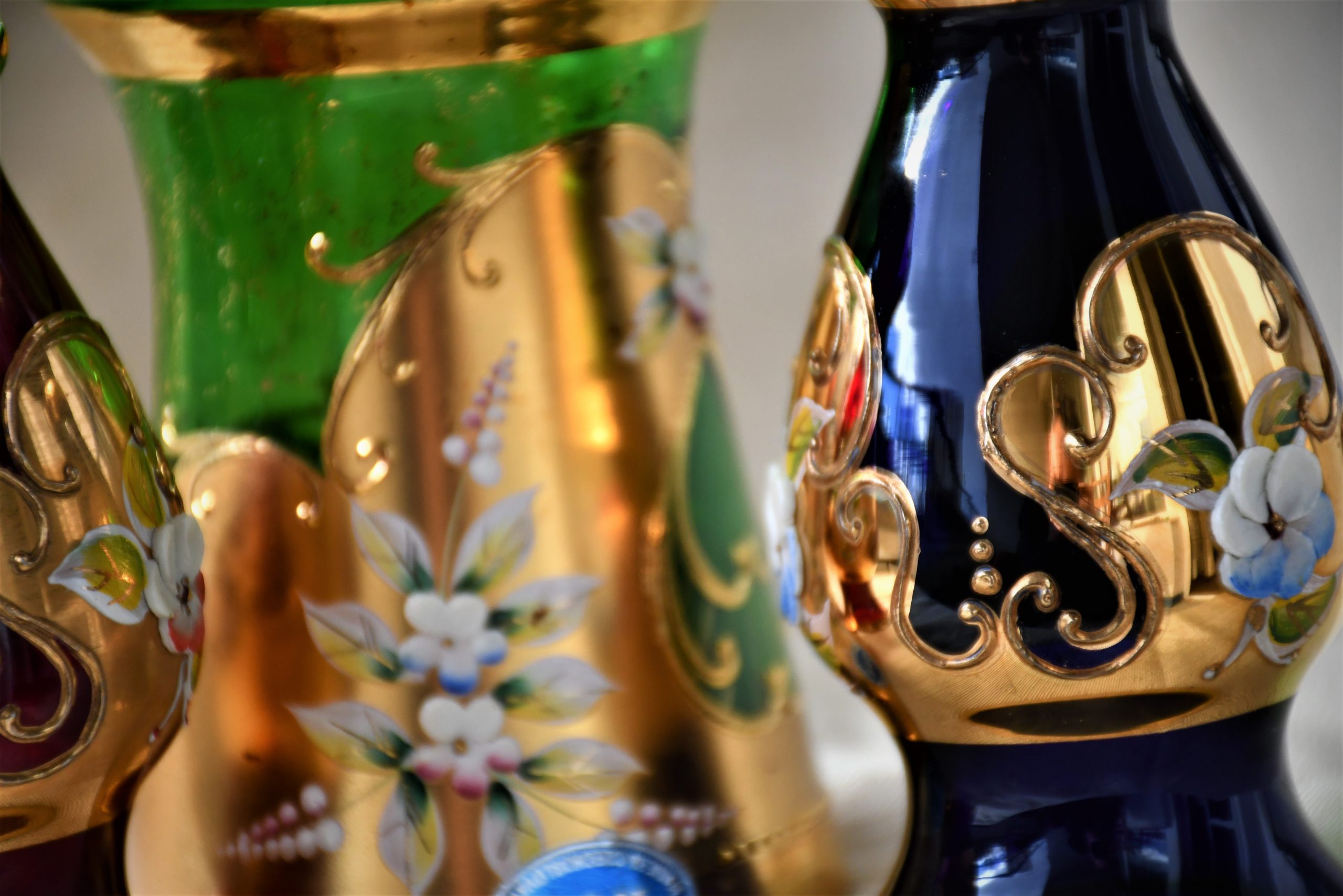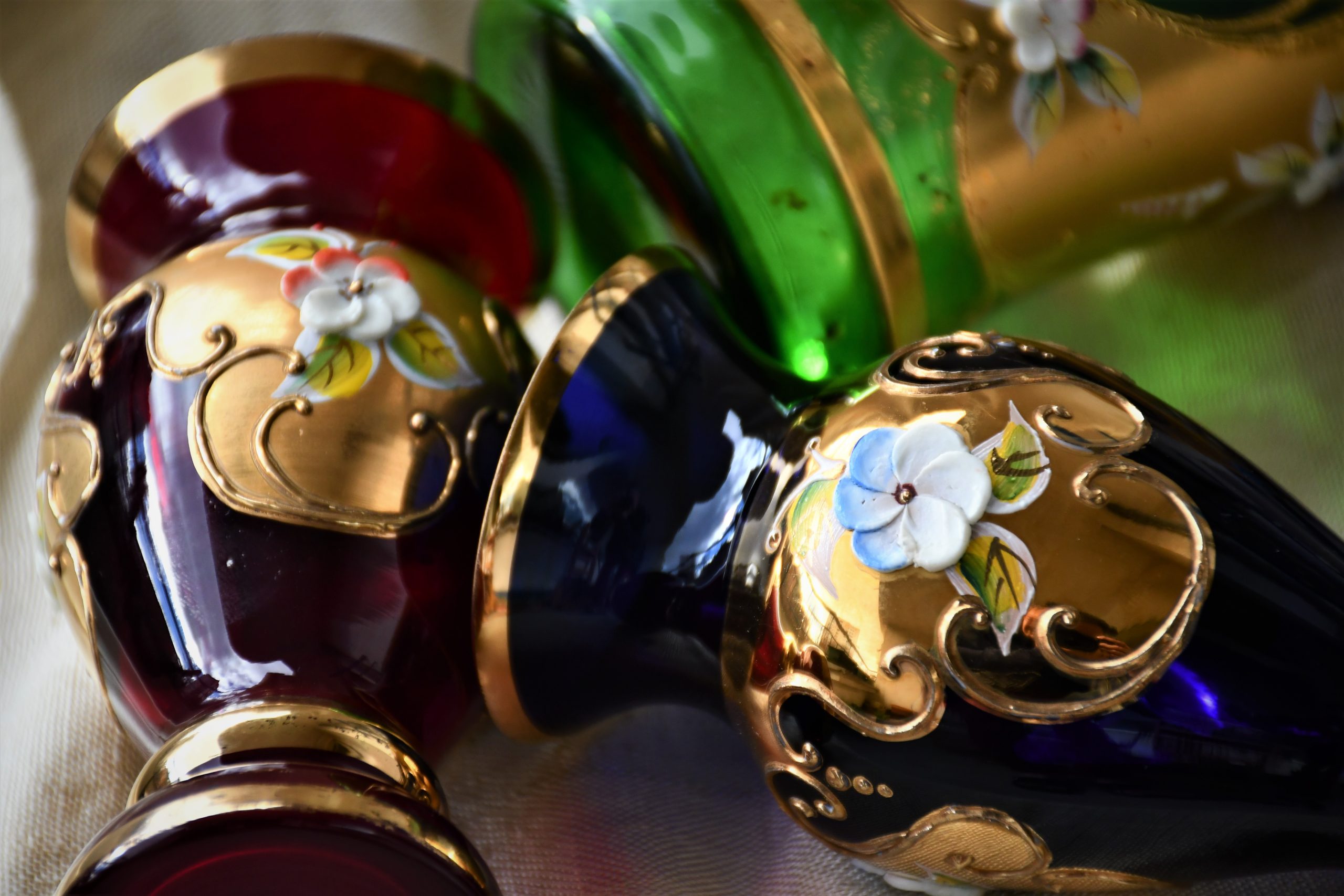 Зелената е още с фабричен етикет – RTL Made in Czechoslovakia.) Техниката, по която са изработени, се нарича „Tre Fuochi“ или „Три огъня“ и е създадена през Ренесанса във Венеция, за да угоди на непрекъснатия стремеж към лукс и разкош на местните богаташи.
