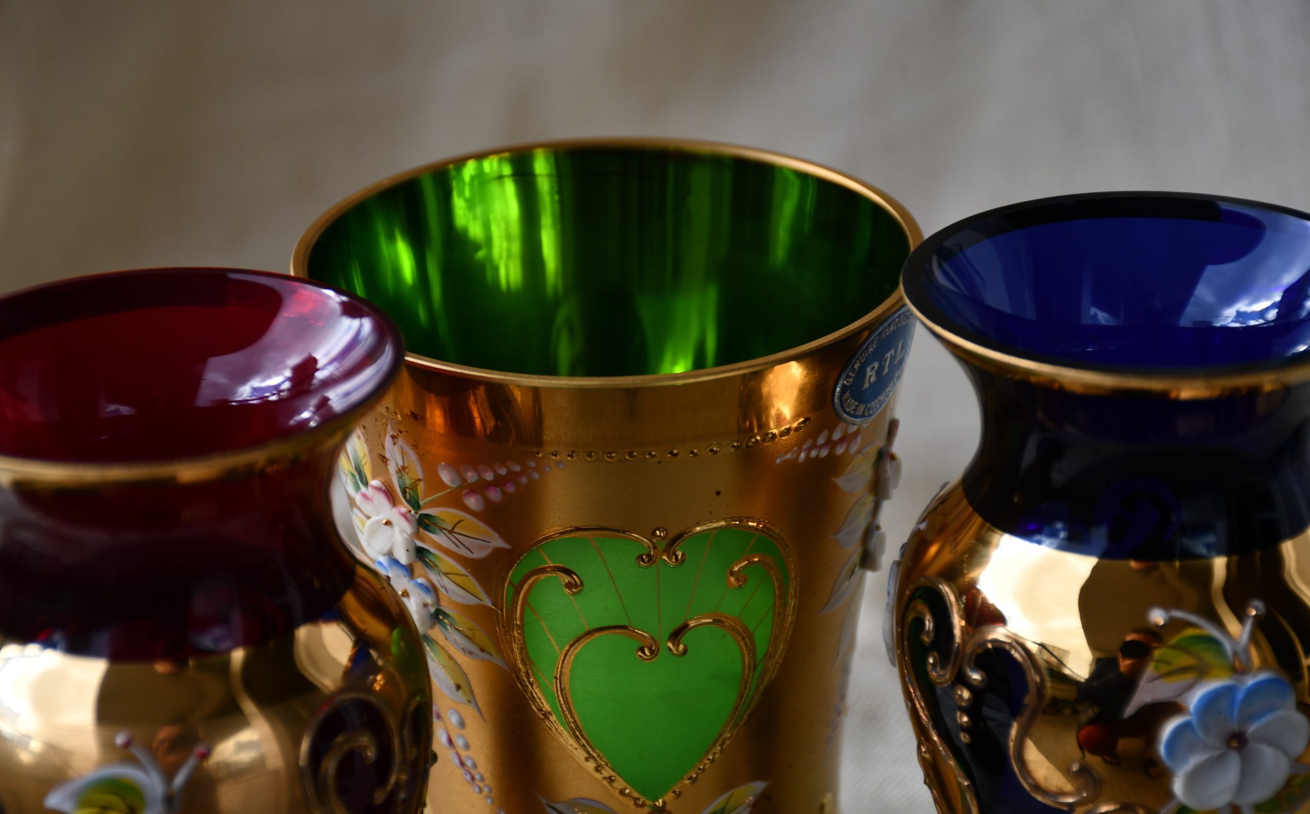 „Bohemia“ – Великолепен комплект от вази „Tre Fuochi“ (3) Ръчно правени и ръчно декорирани.