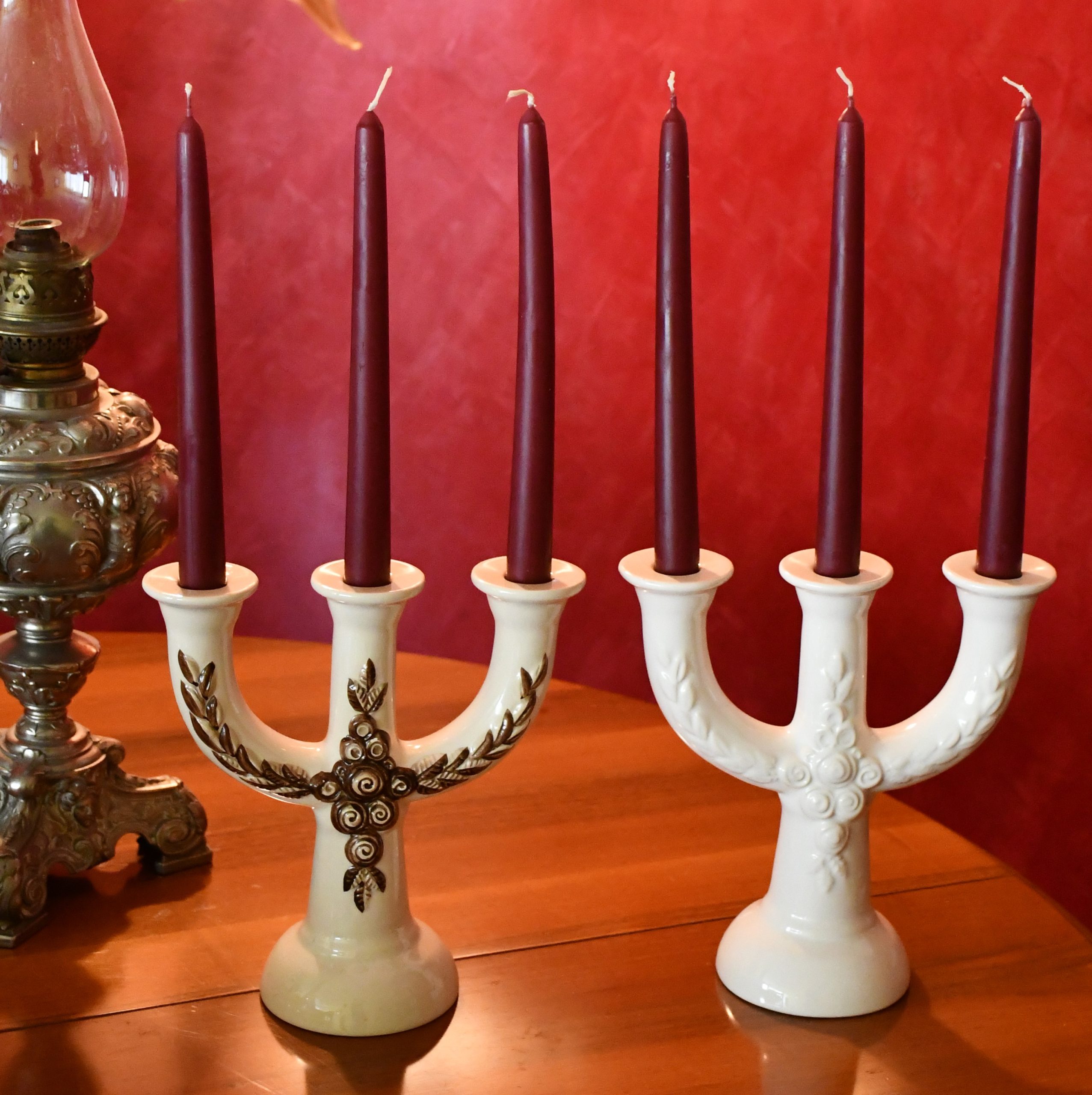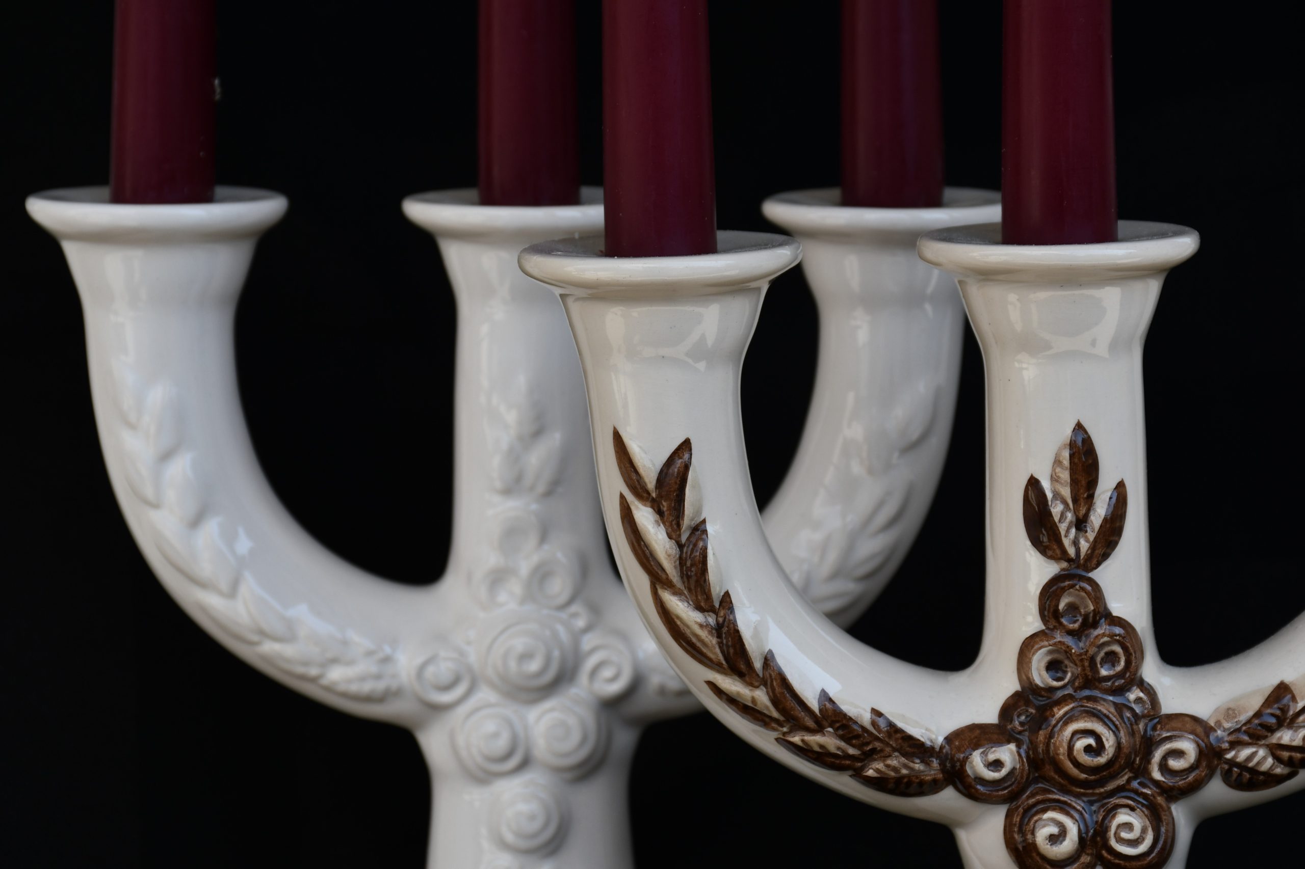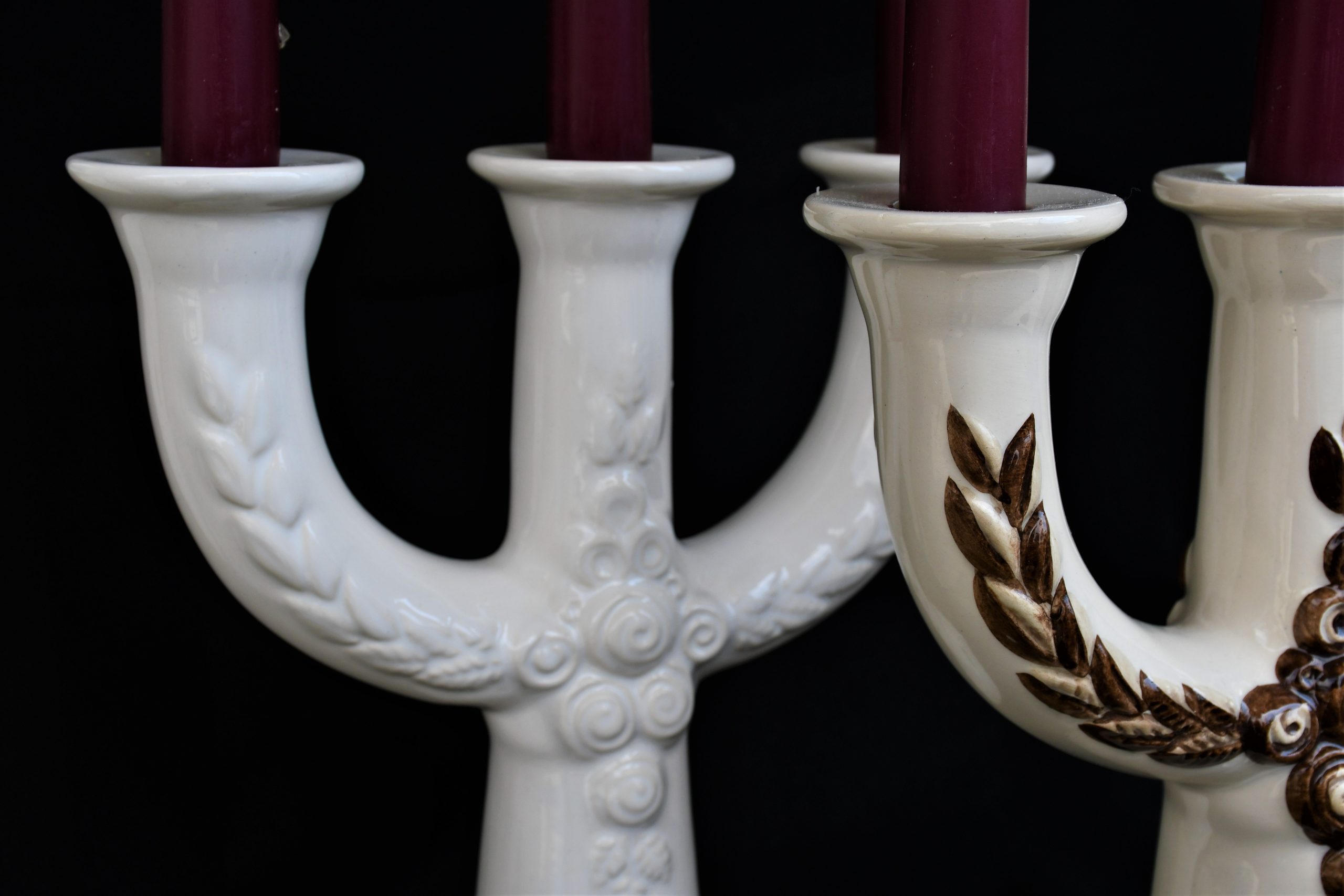 Канделабрите са сред най-големите и емблематични дизайни на Rosa Ljung. Материалът е глазирана керамика/фаянс, солиден и тежък. Единият е ръчно рисуван. Отлично винтидж състояние