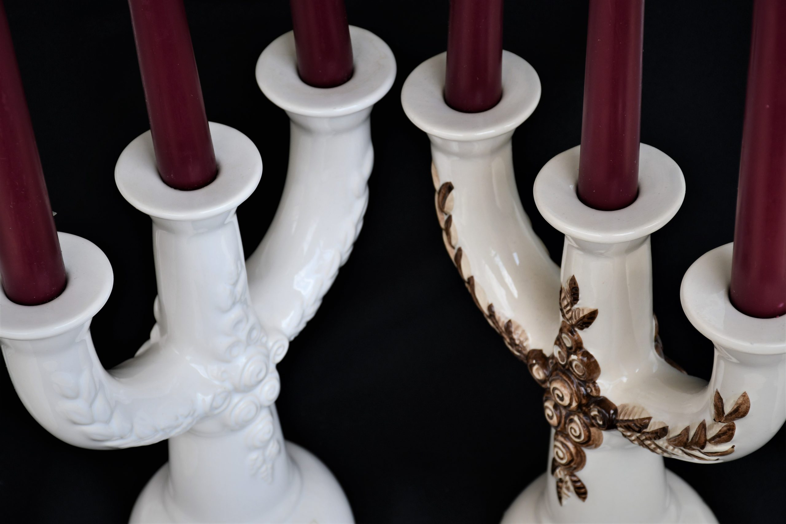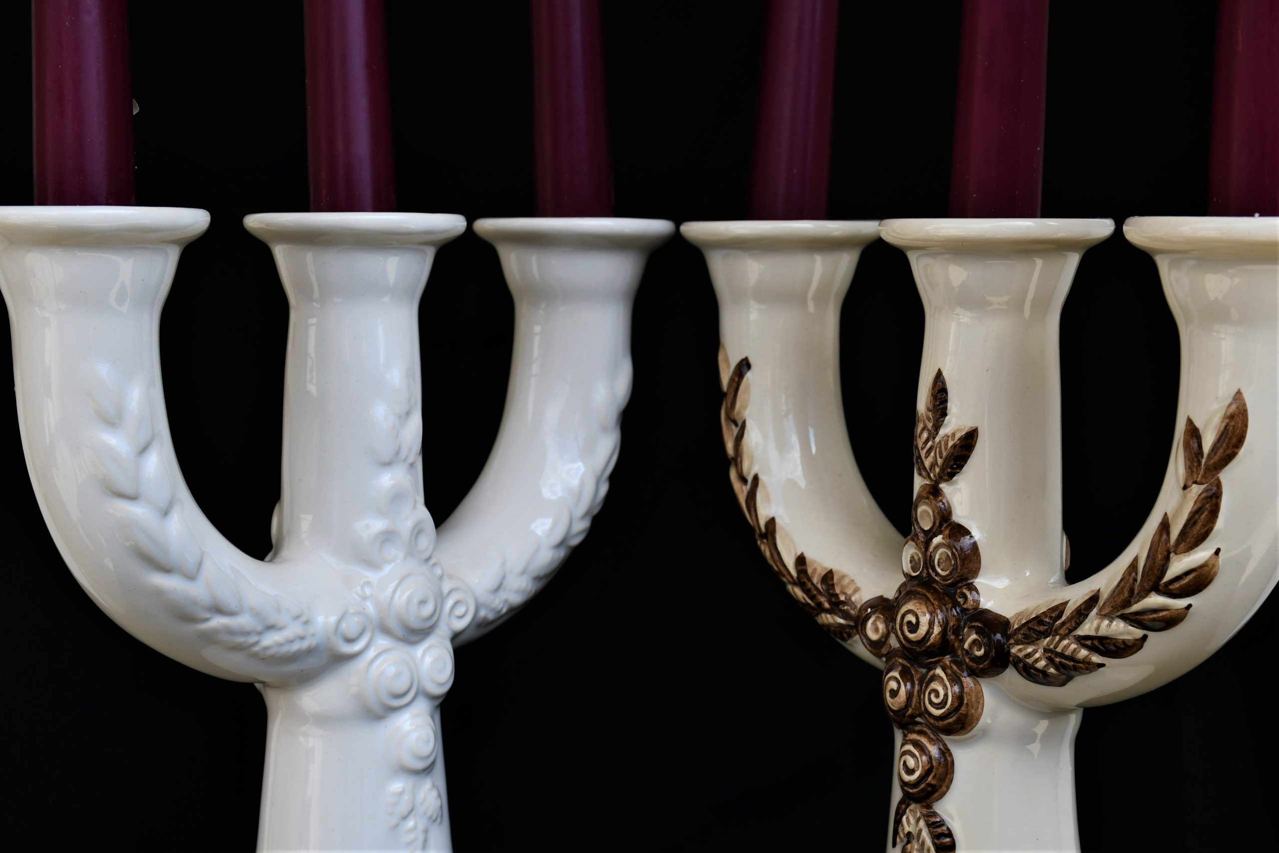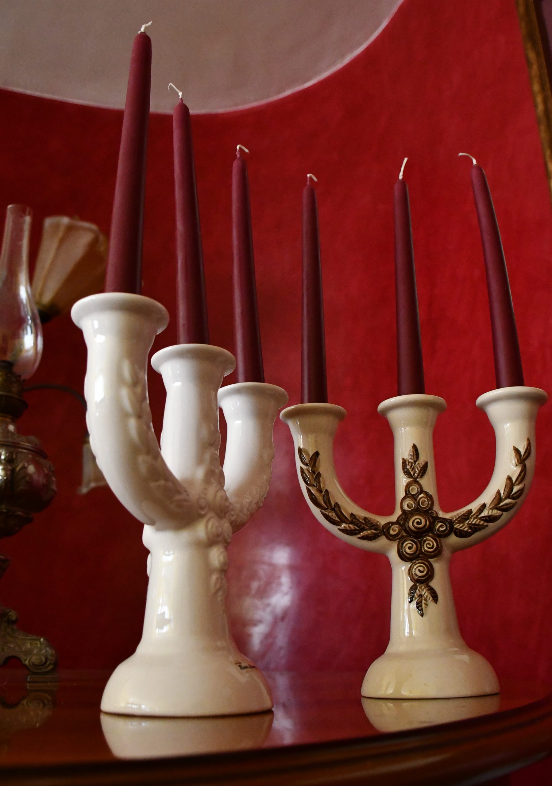 Канделабрите са сред най-големите и емблематични дизайни на Rosa Ljung. Материалът е глазирана керамика/фаянс, солиден и тежък. Единият е ръчно рисуван. Отлично винтидж състояние