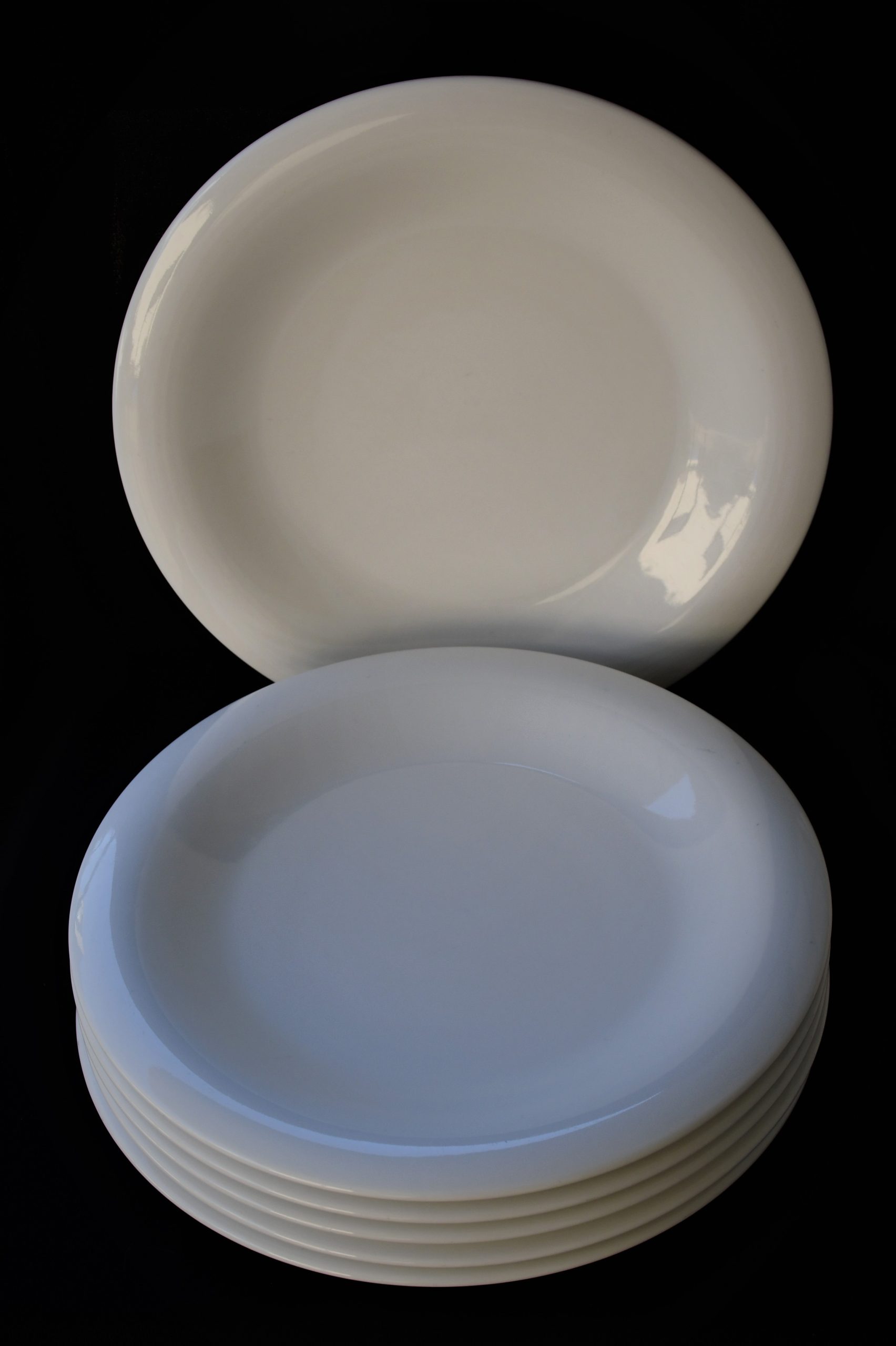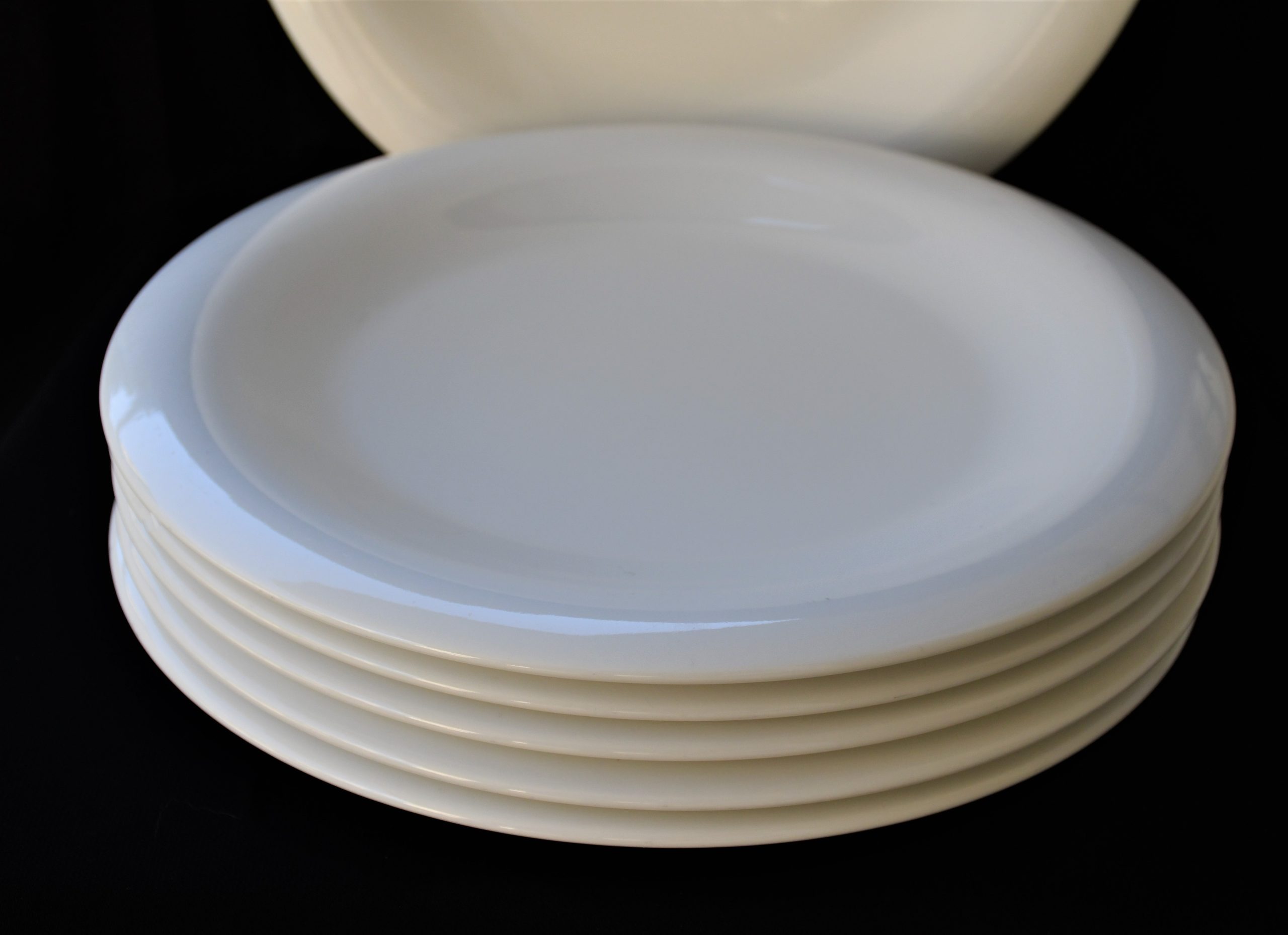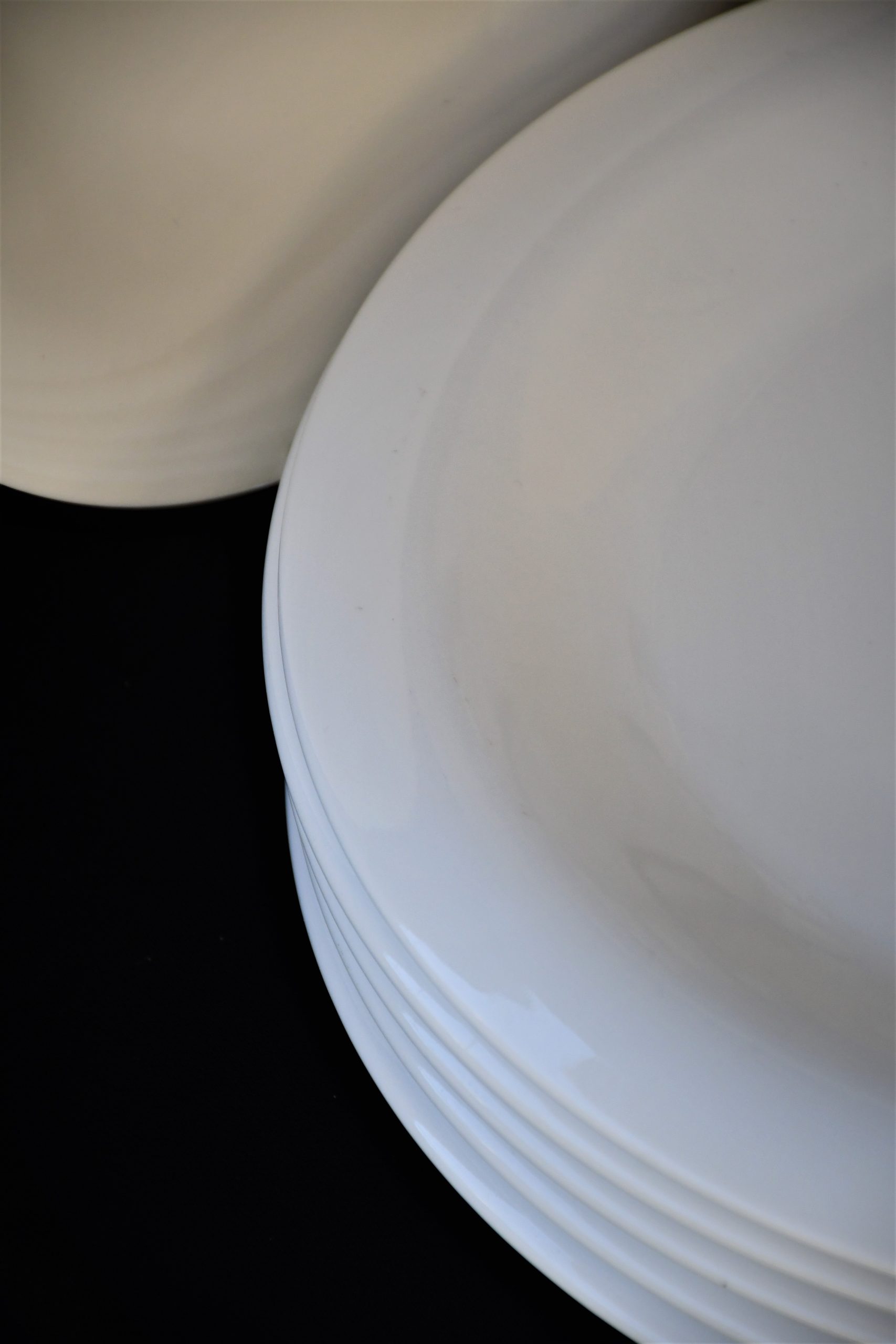 Големи, солидни и тежки чинии: Ширина: 29 cm. Чисто бели, с елегантна дизайнерска форма, направени с превъзходно майсторство. Създадени да превърнат всеки ден от живота ви в специален. Перфектно употребявано състояние. Без надрасквания и пукнатини.