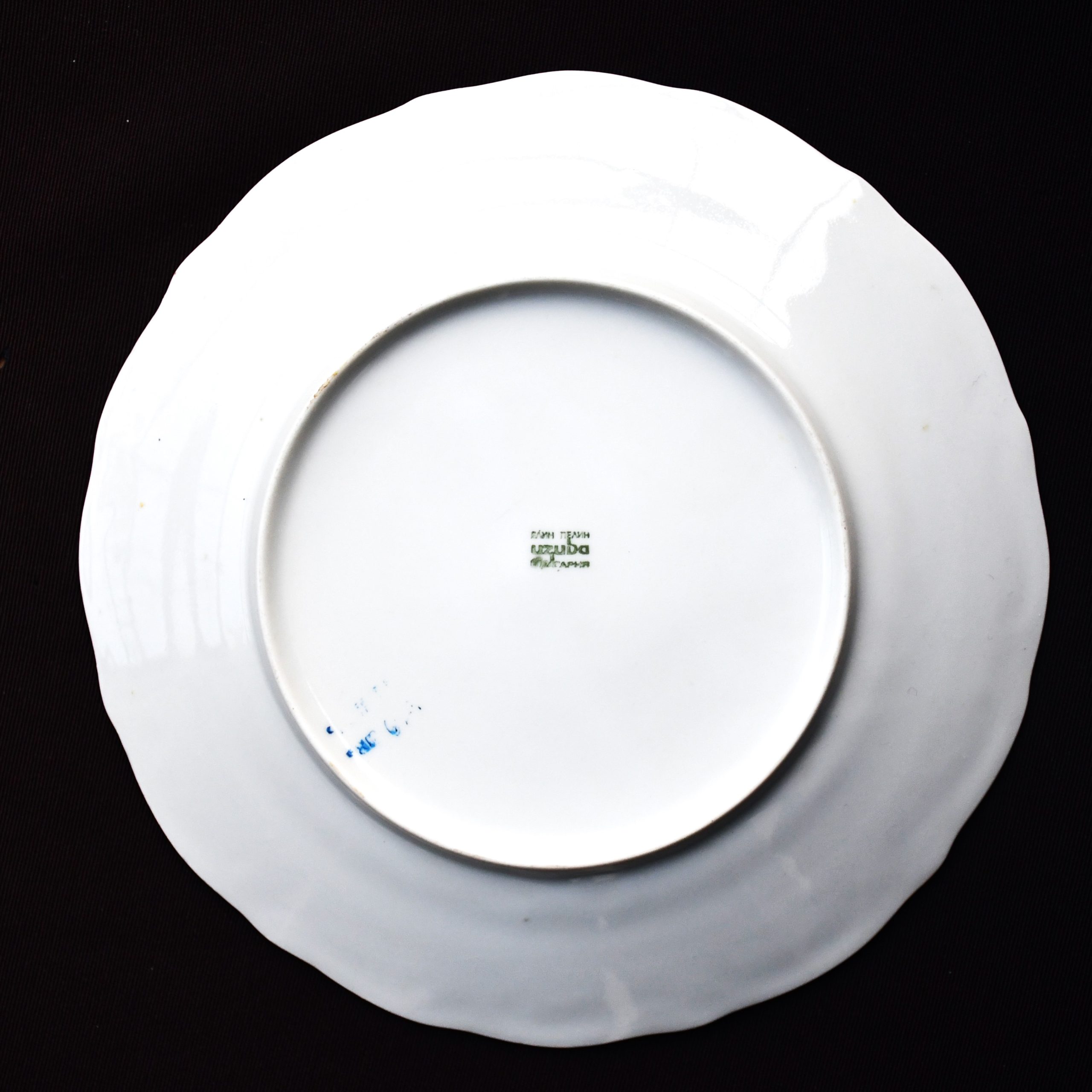 Нежна флорална декорация, по борда – орнаментика в релеф. Златен кант по ръба. Датировка – 70-те. Всичките маркирани с логото.