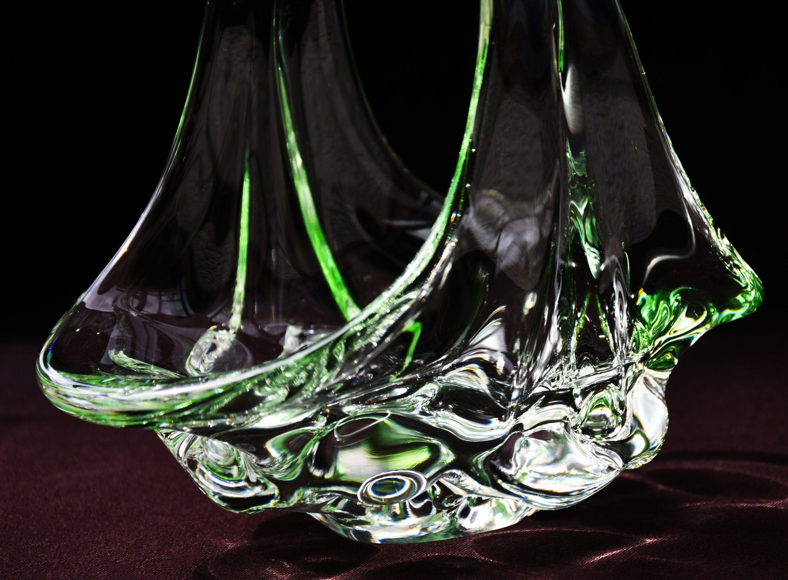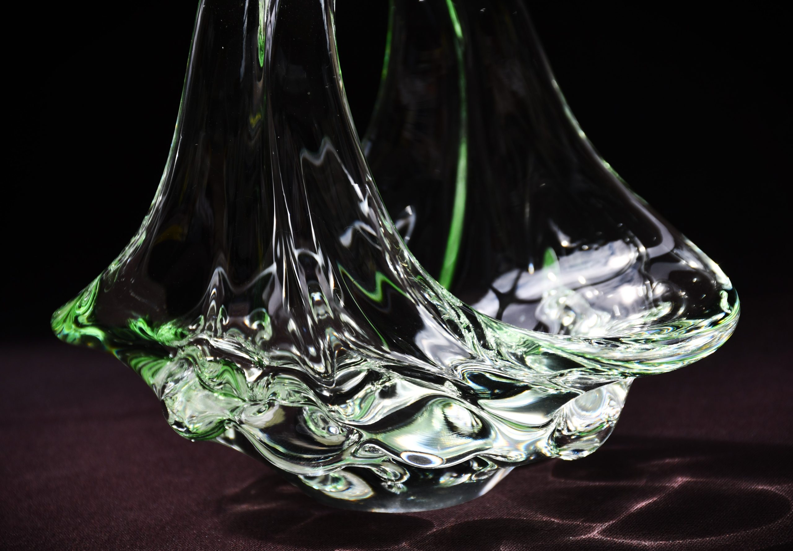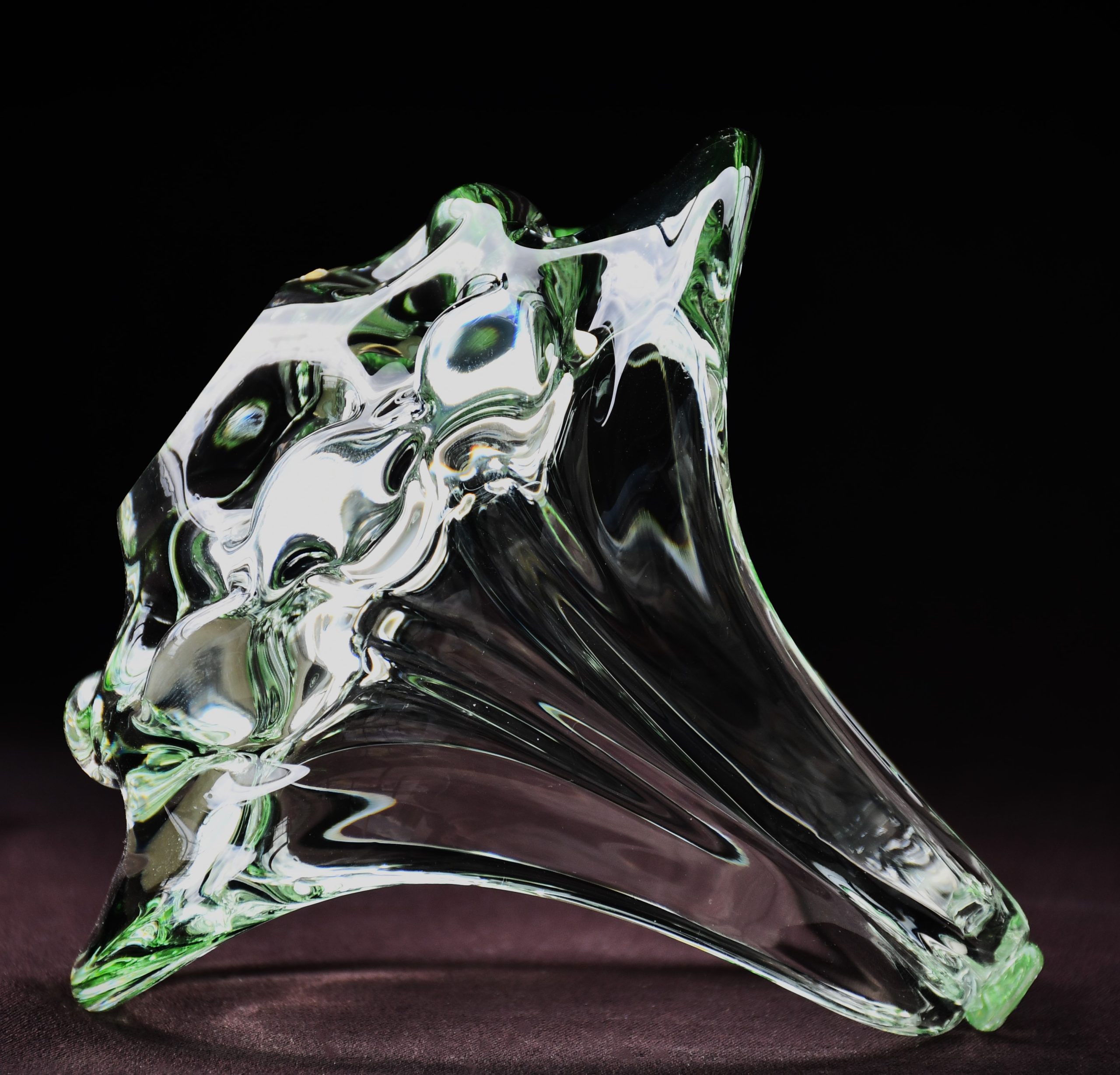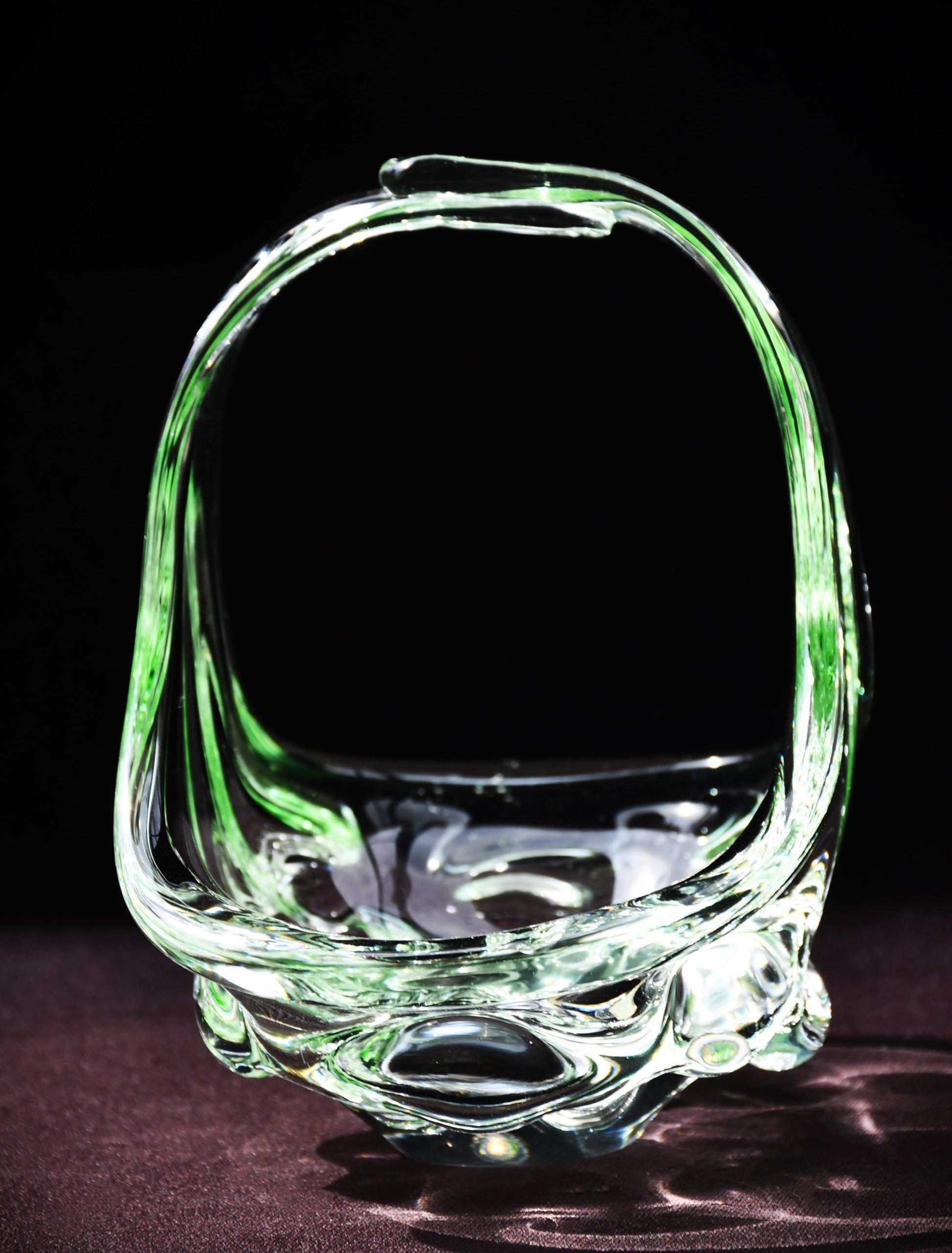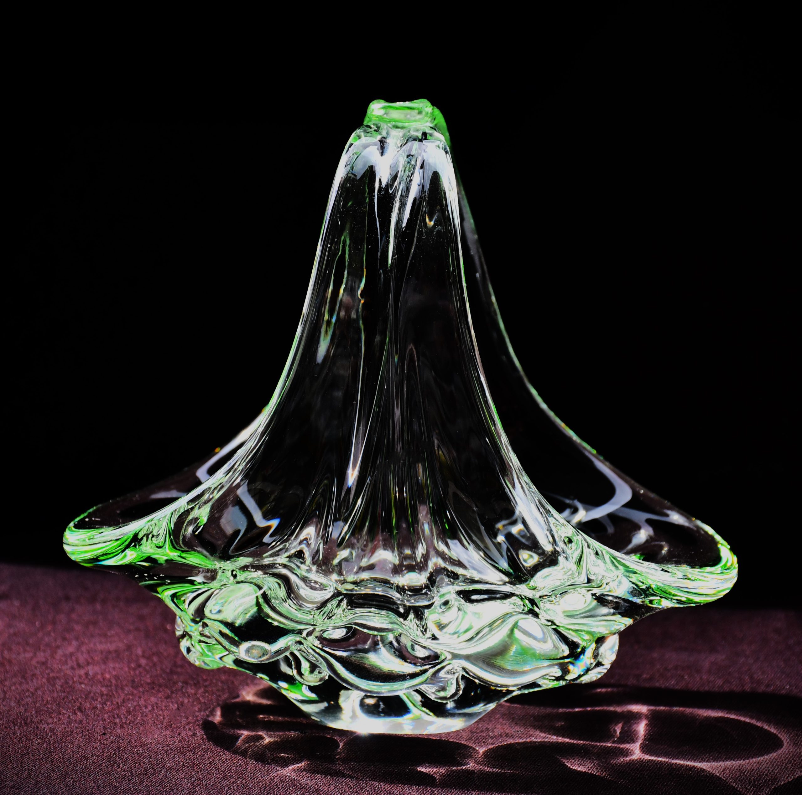 Изцяло ръчно изработен продукт. В прозрачно „пролетно“ зелено, много нежен цвят. Разгледайте множеството приложени снимки, в различни светлинни условия. Полирано дъно, също в отлична форма. Оригиналният стикер е на мястото си. Няма забележки.