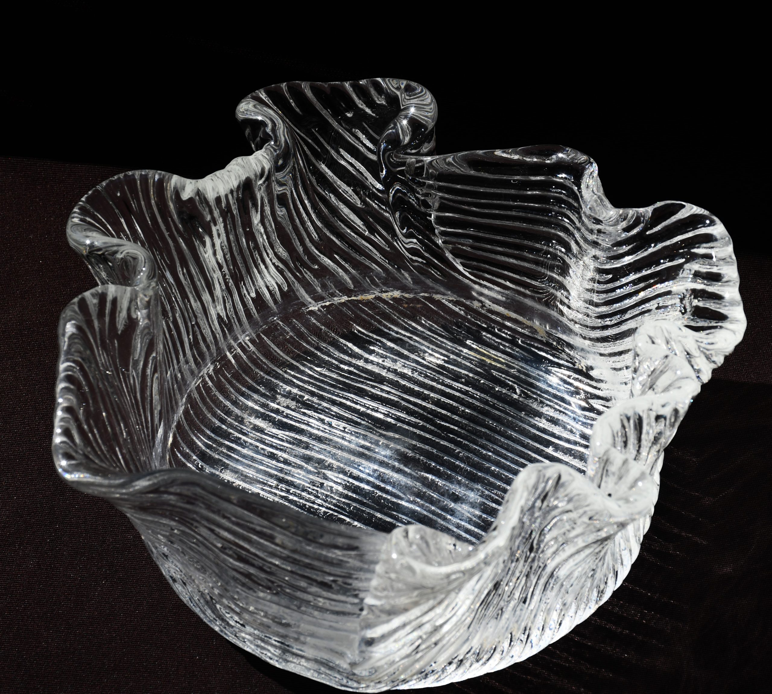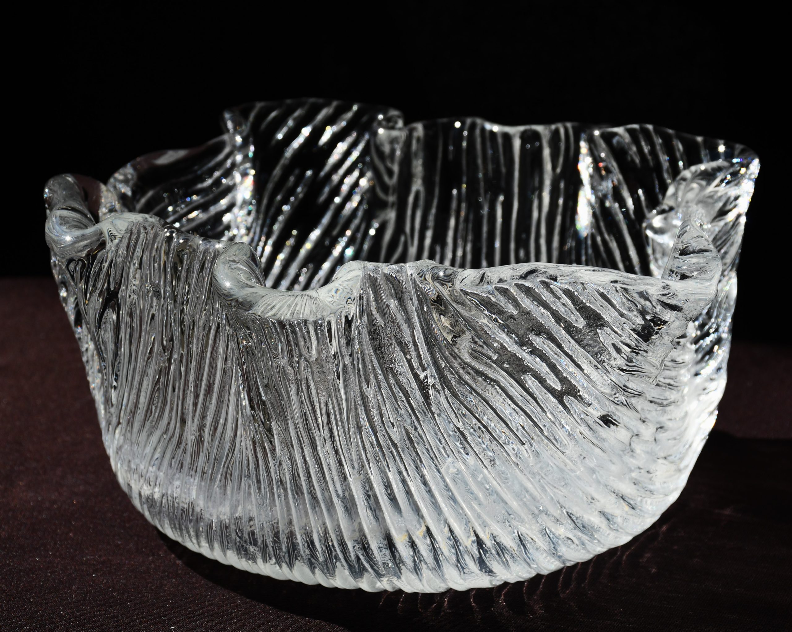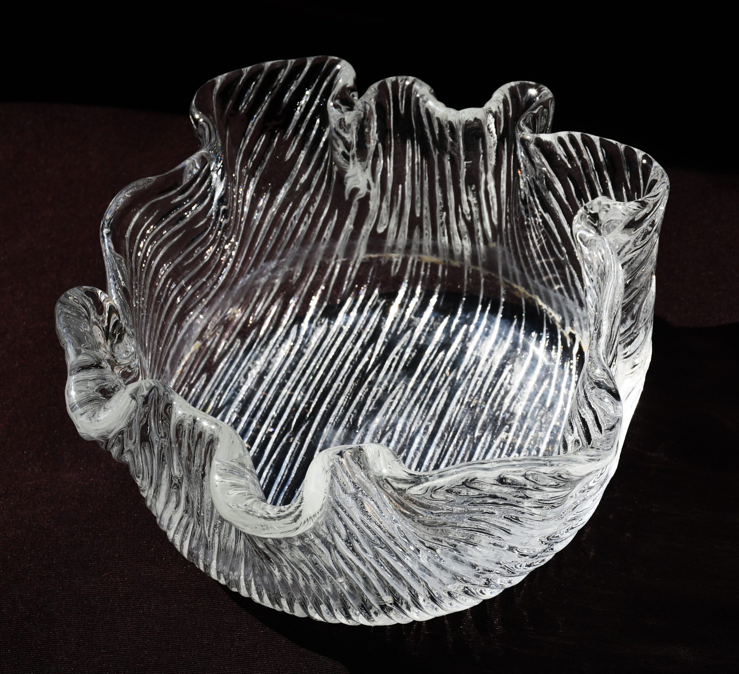 Купа/Фруктиера, ръчно изработена по технологията Handkerchief. Кристал. Скандинавски дизайн, вероятно Финландия – 70-те години на 20-и век.