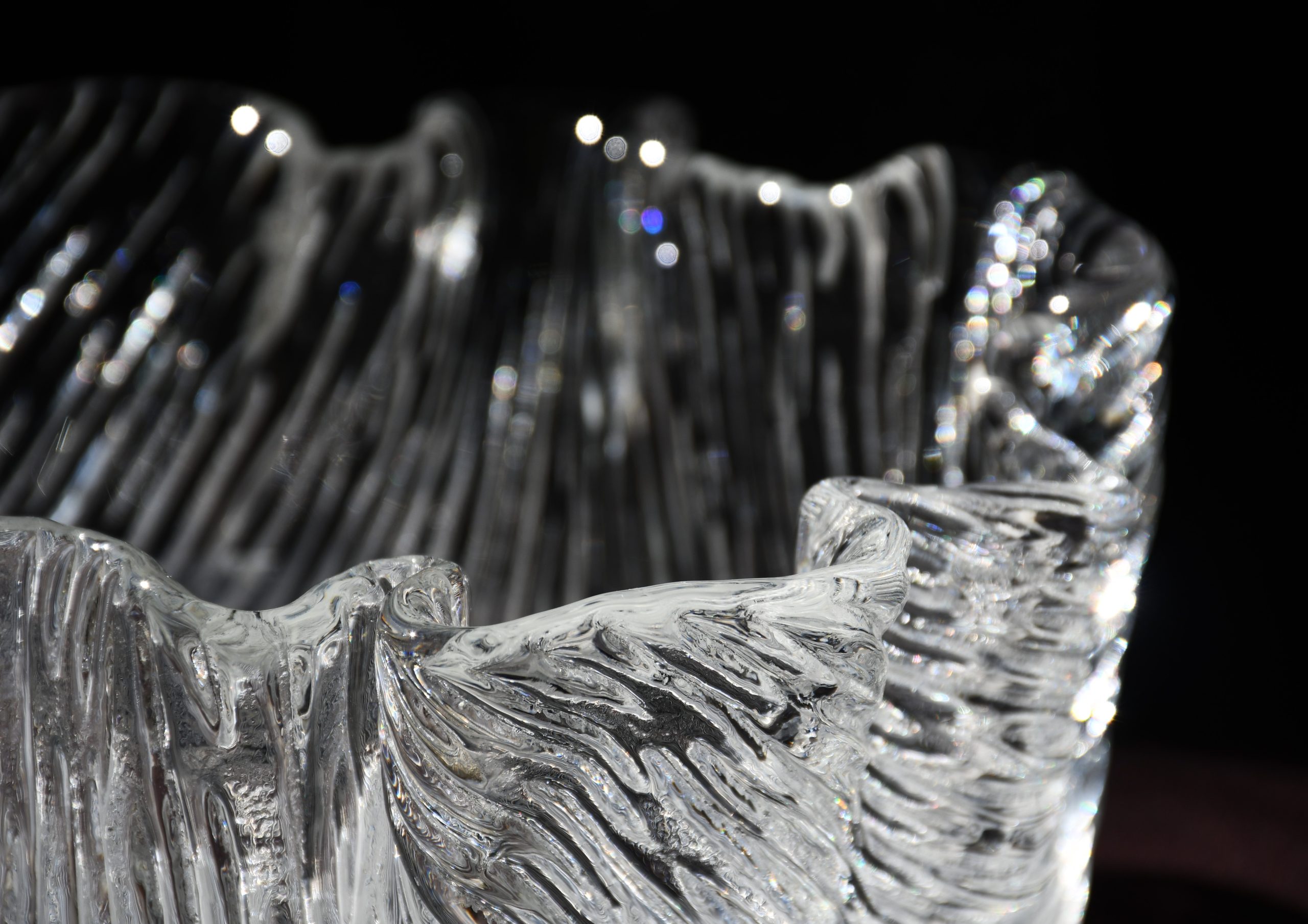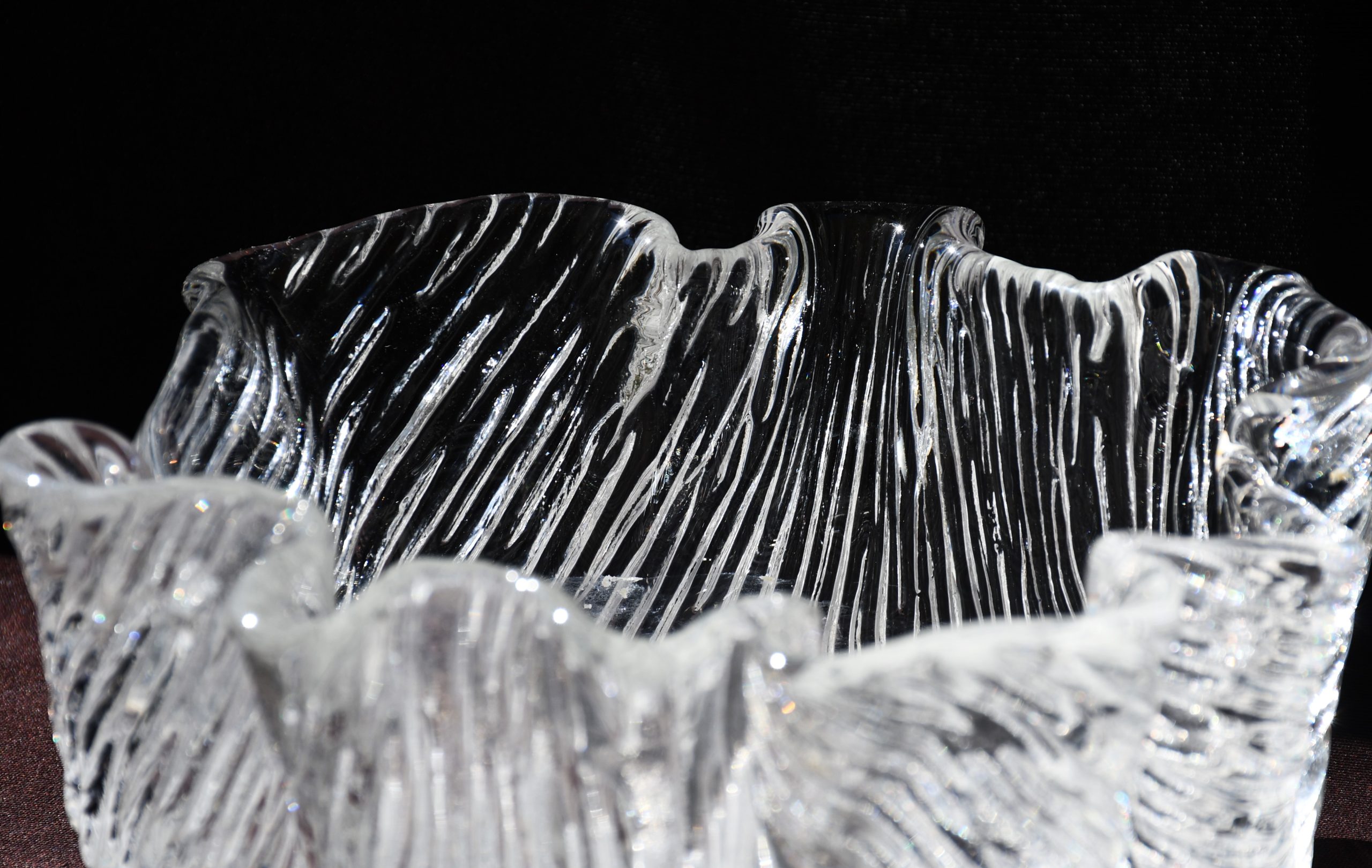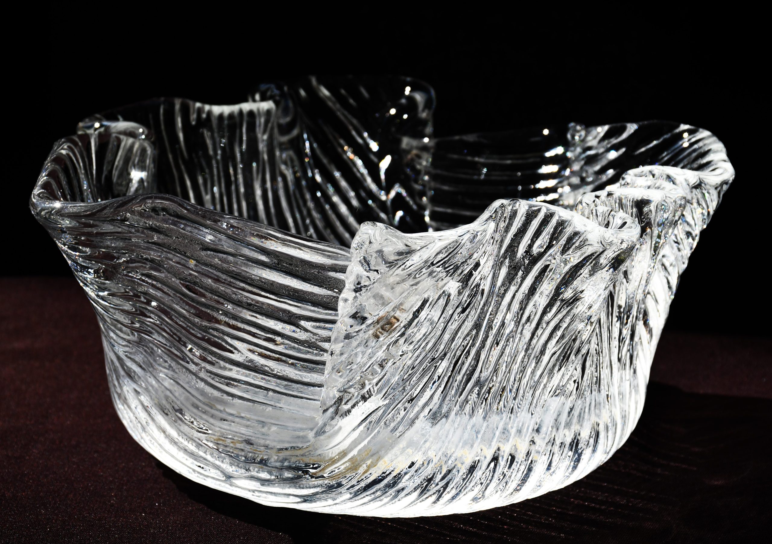 Купа/Фруктиера, ръчно изработена по технологията Handkerchief. Кристал. Скандинавски дизайн, вероятно Финландия – 70-те години на 20-и век.