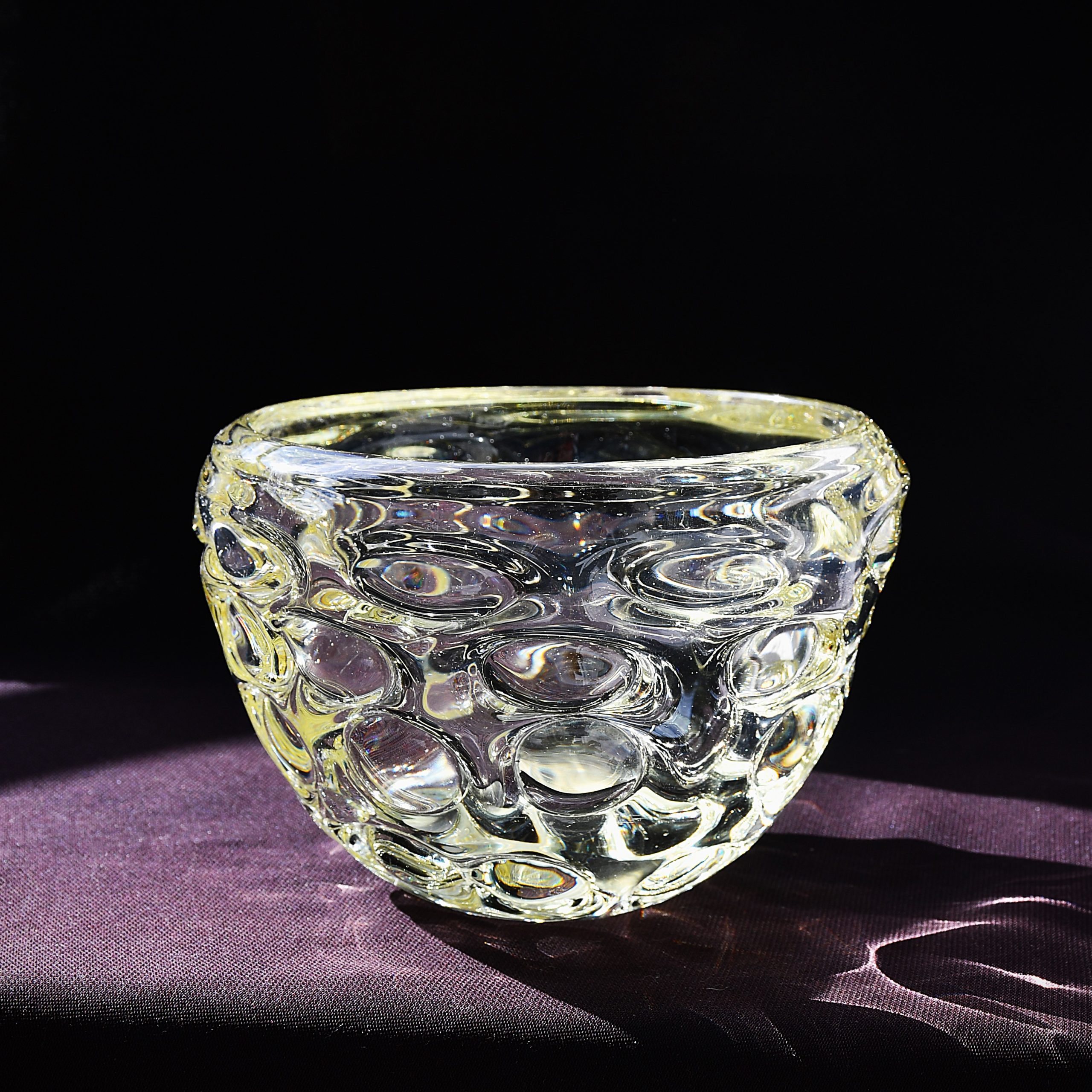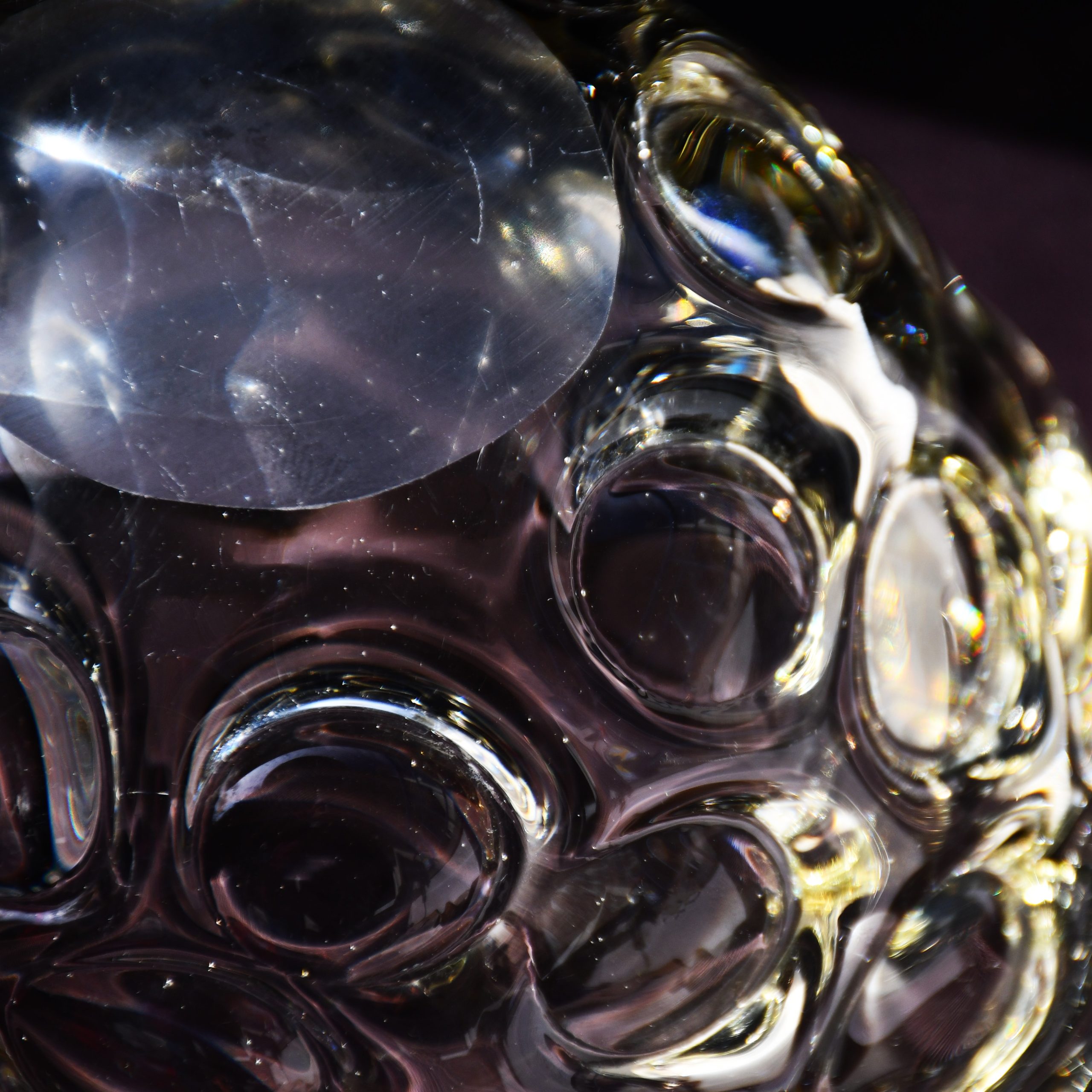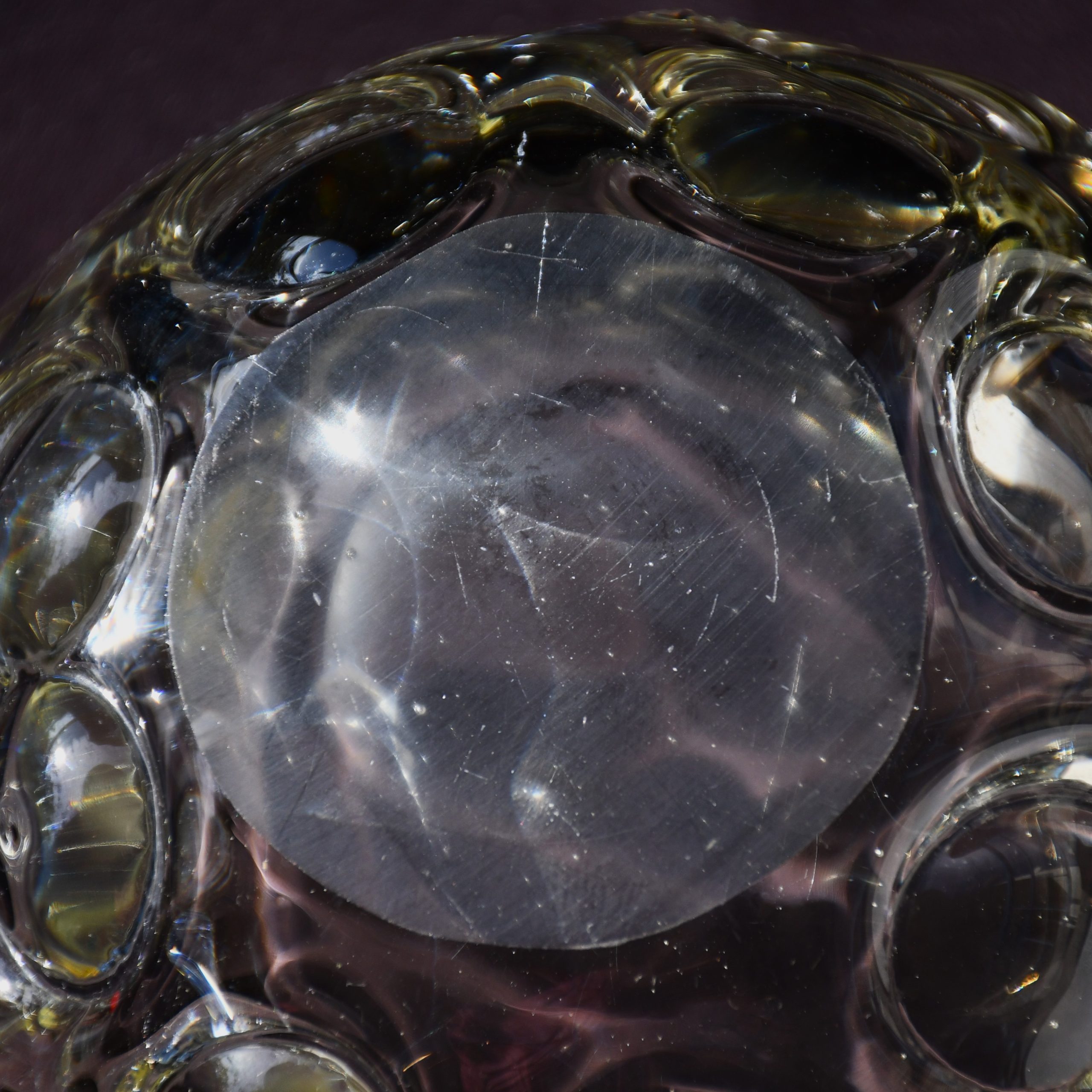 Прекрасно произведение на стъкларското изкуство. С органична кръгла форма и изпъкнали модули по външния периметър. Стабилни стени, тежка основа. Ръчна полировка на дъното.