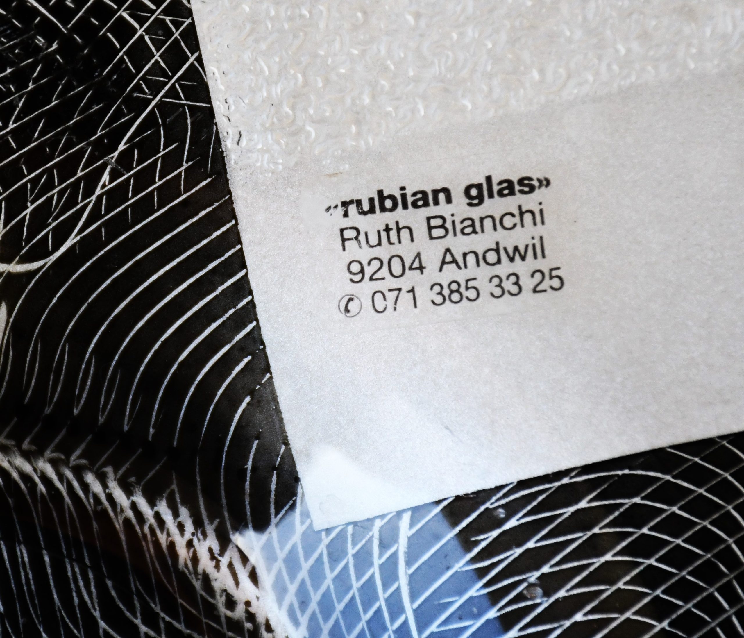 Дизайн на Ruth Bianchi. Производител е много малката фирма „Rubian Glas“. Ръчно рисувана; Изключително декоративна.