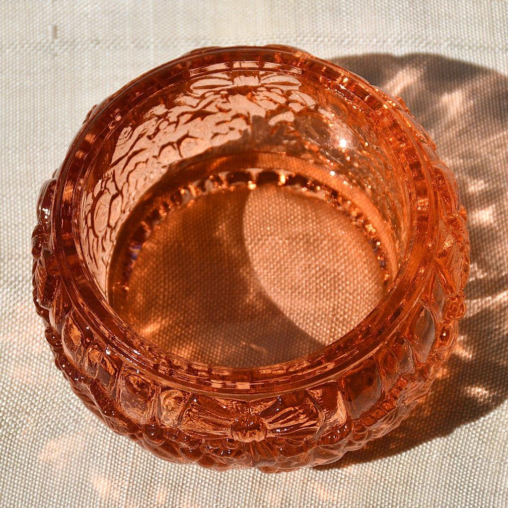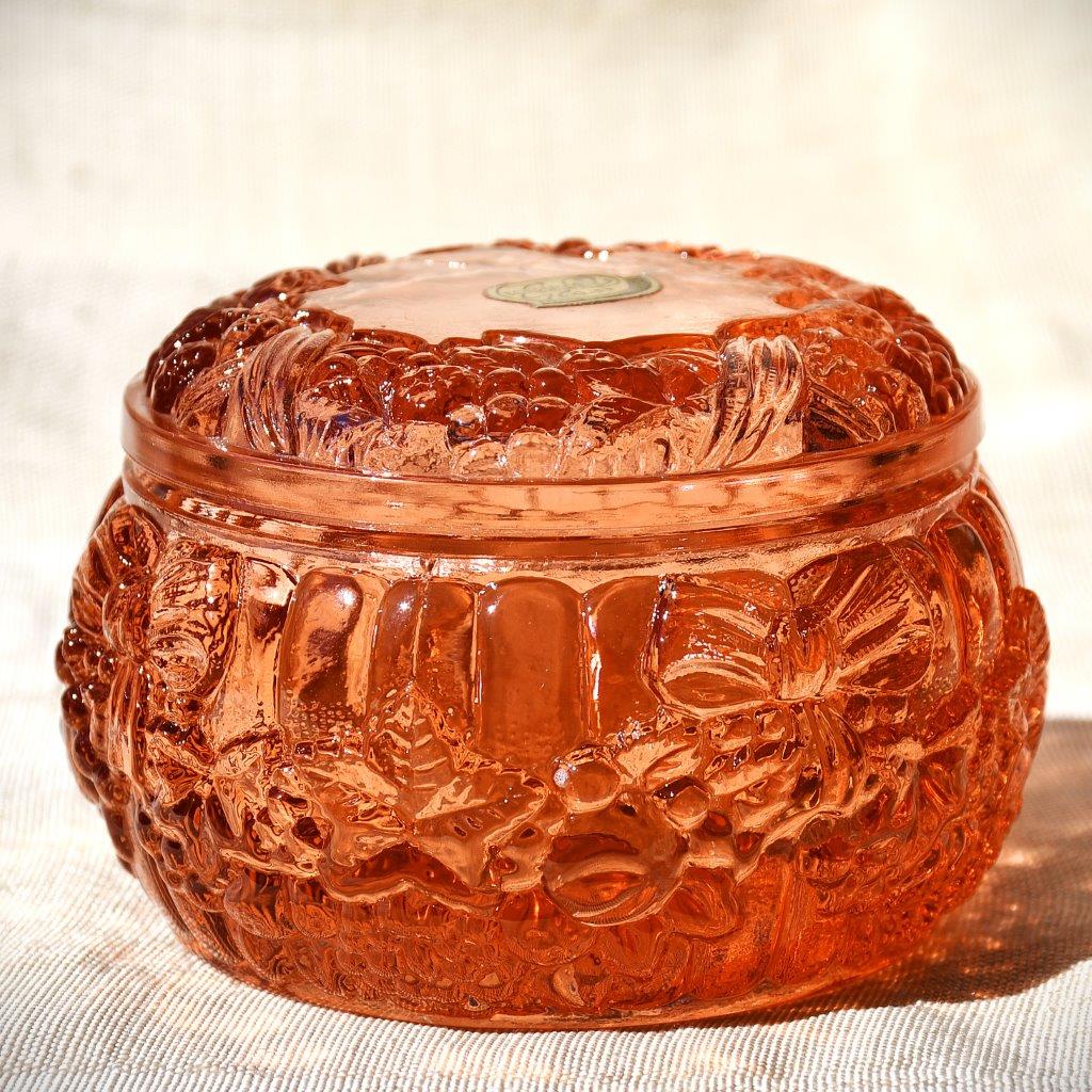 Великолепна кутия за бижута от пресовано розалиново стъкло. Солидна изработка. Стилен и елегантен предмет.