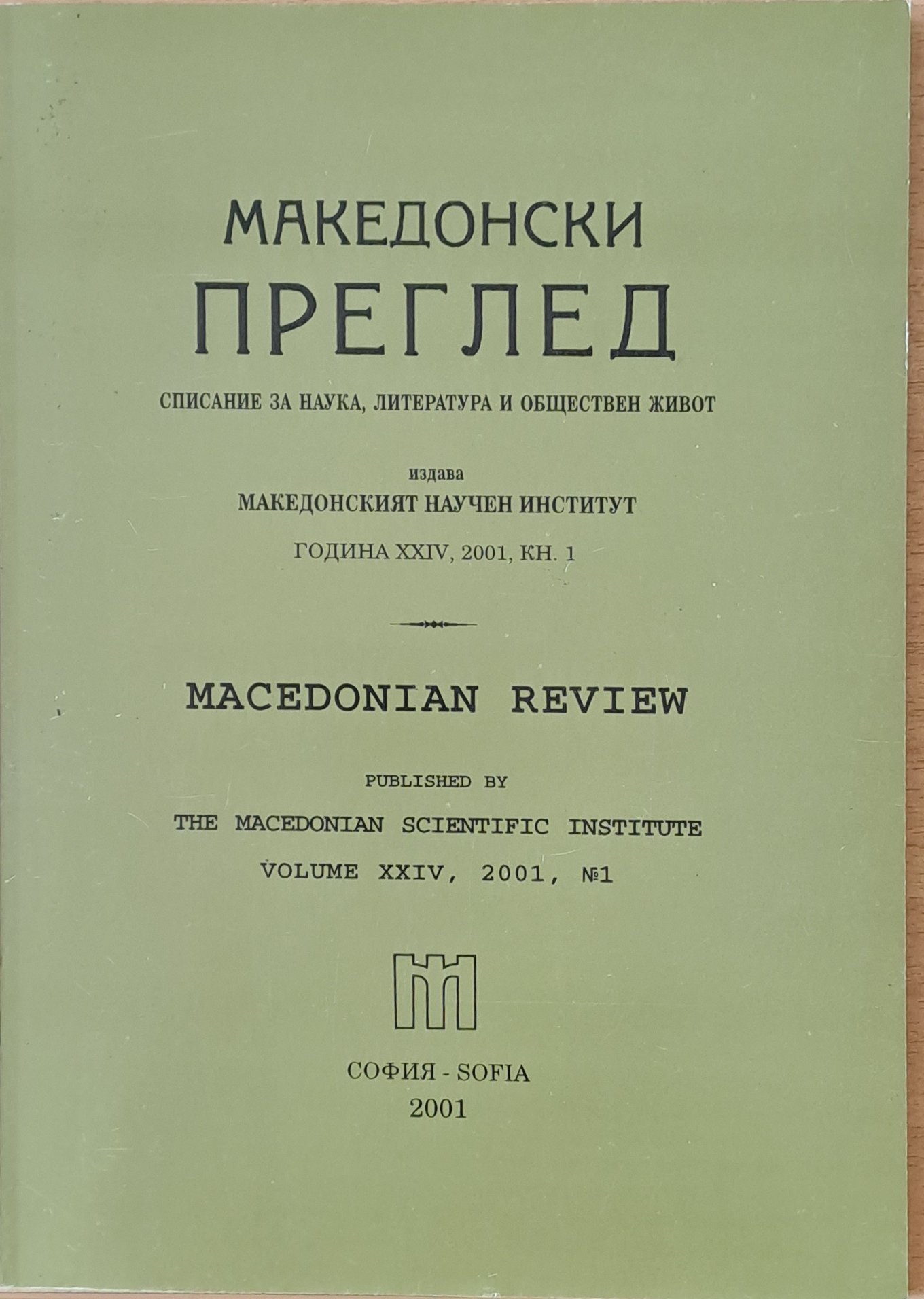 Македонски преглед, година ХХІV, 2001, кн. 1