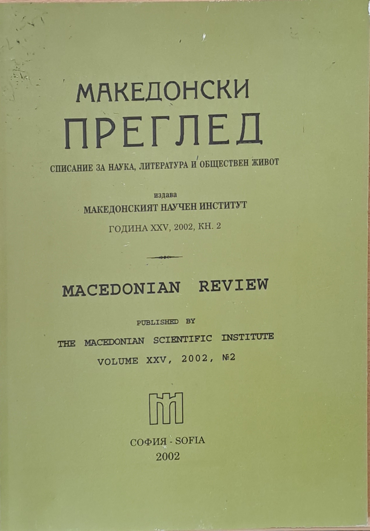 Македонски преглед, година ХХV, 2002, кн. 2