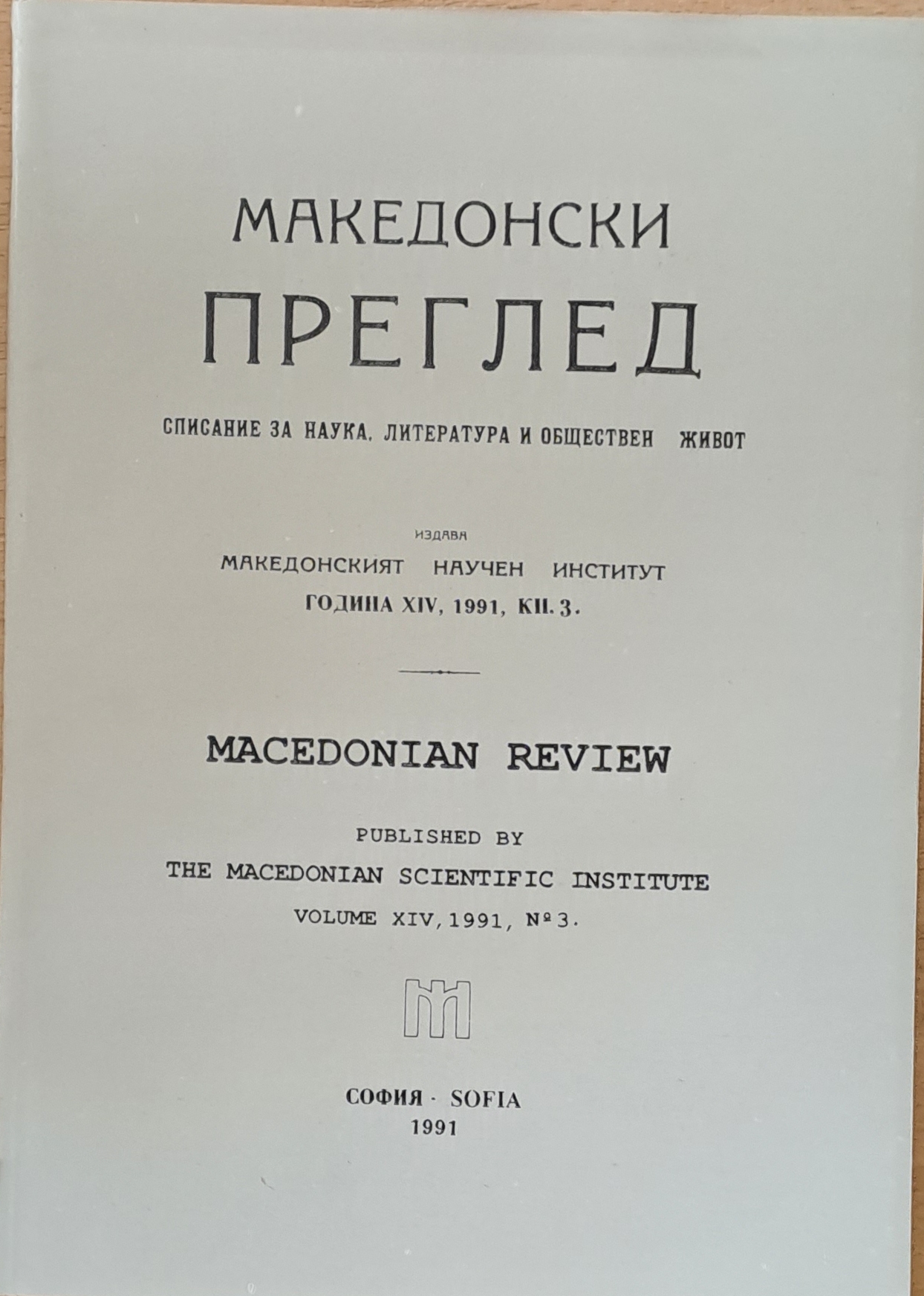 Македонски преглед, година ХІV, 1991, кн. 3