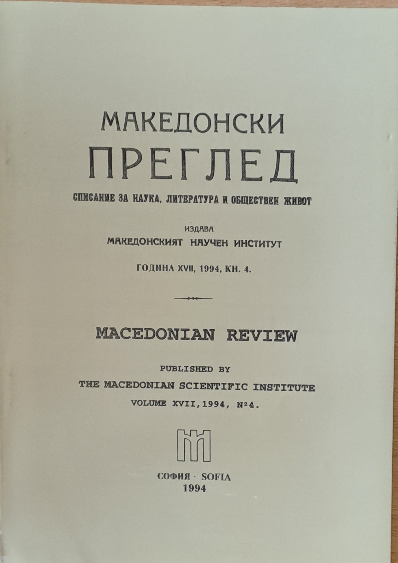 Македонски преглед, година ХVІІ, 1994, кн. 4