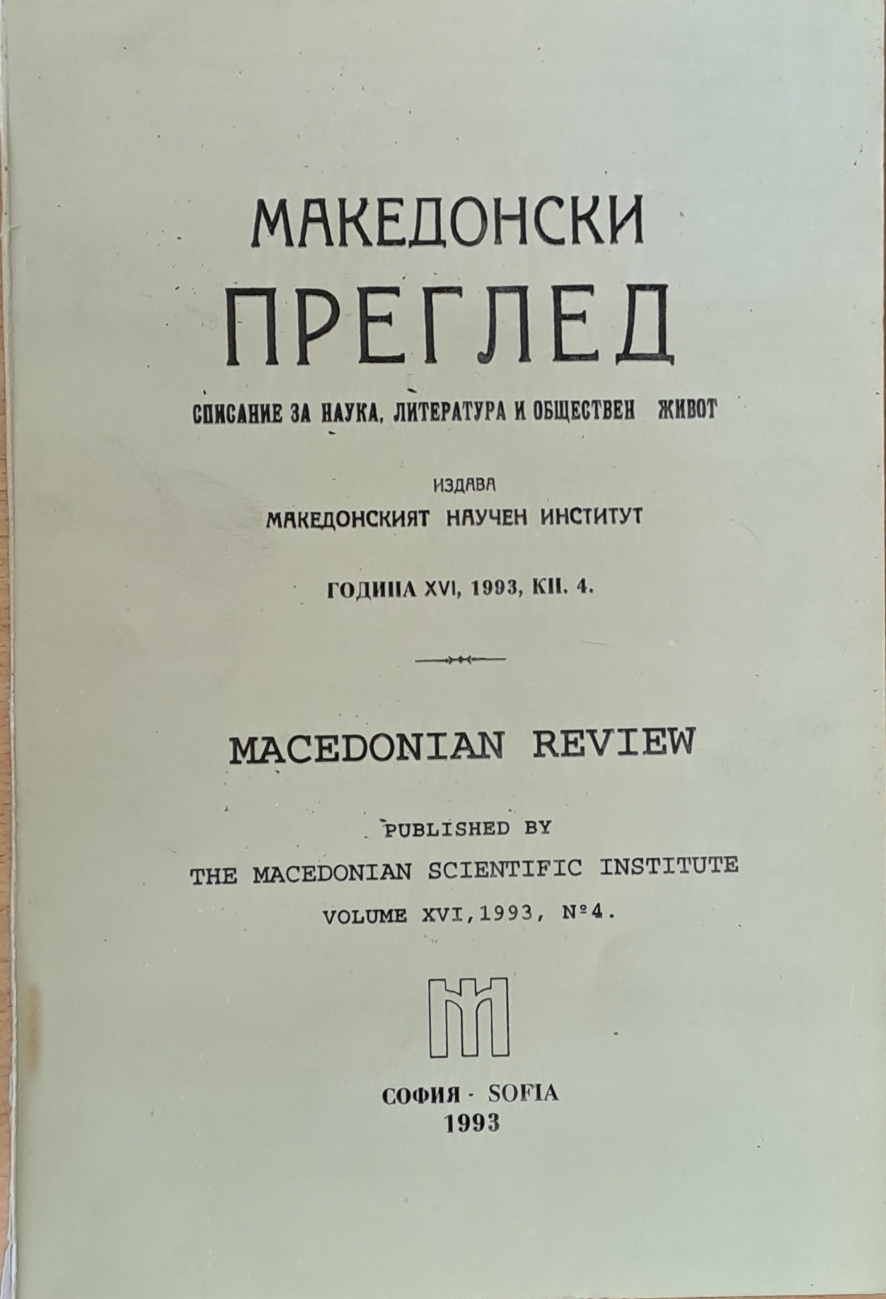 Македонски преглед, година ХVІ, 1993, кн. 4