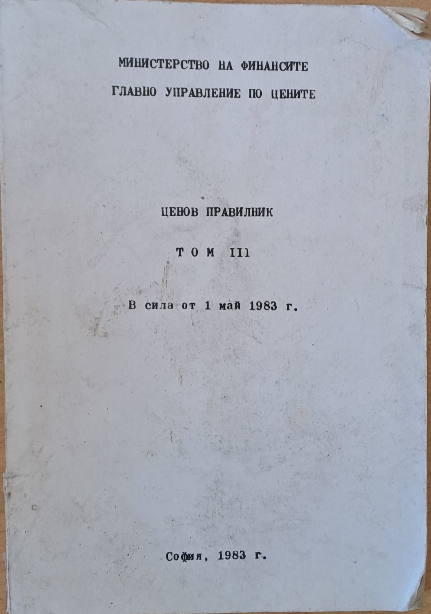 Министерство на Финансите. Ценов правилник, том ІІІ, в сила от 1 май 1983 г.