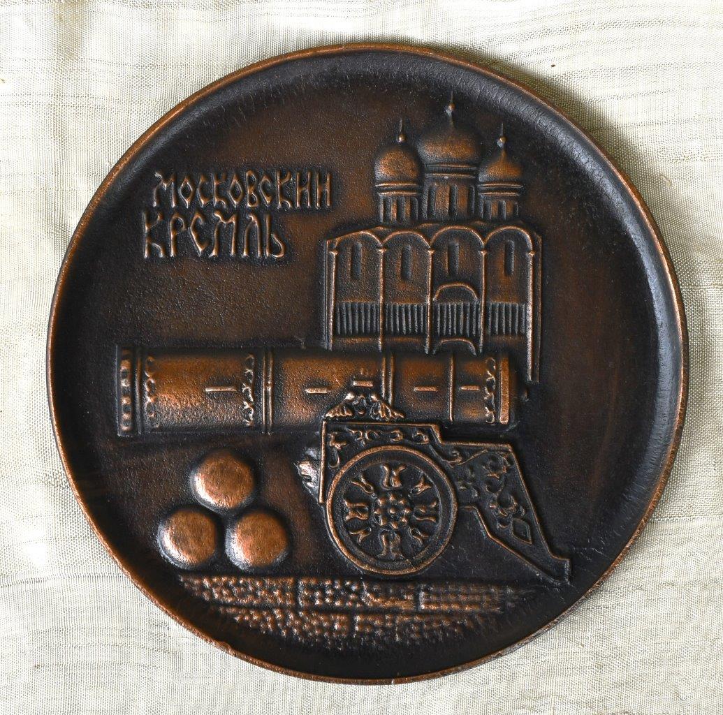Оригинална стенна декорация от съветския период – 1970-те. Голям размер. Представени са легендарното оръдие Цар Пушка и силует на кремълска църква.