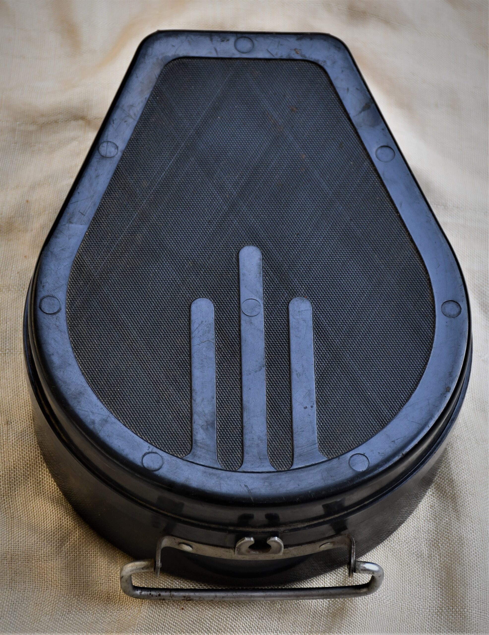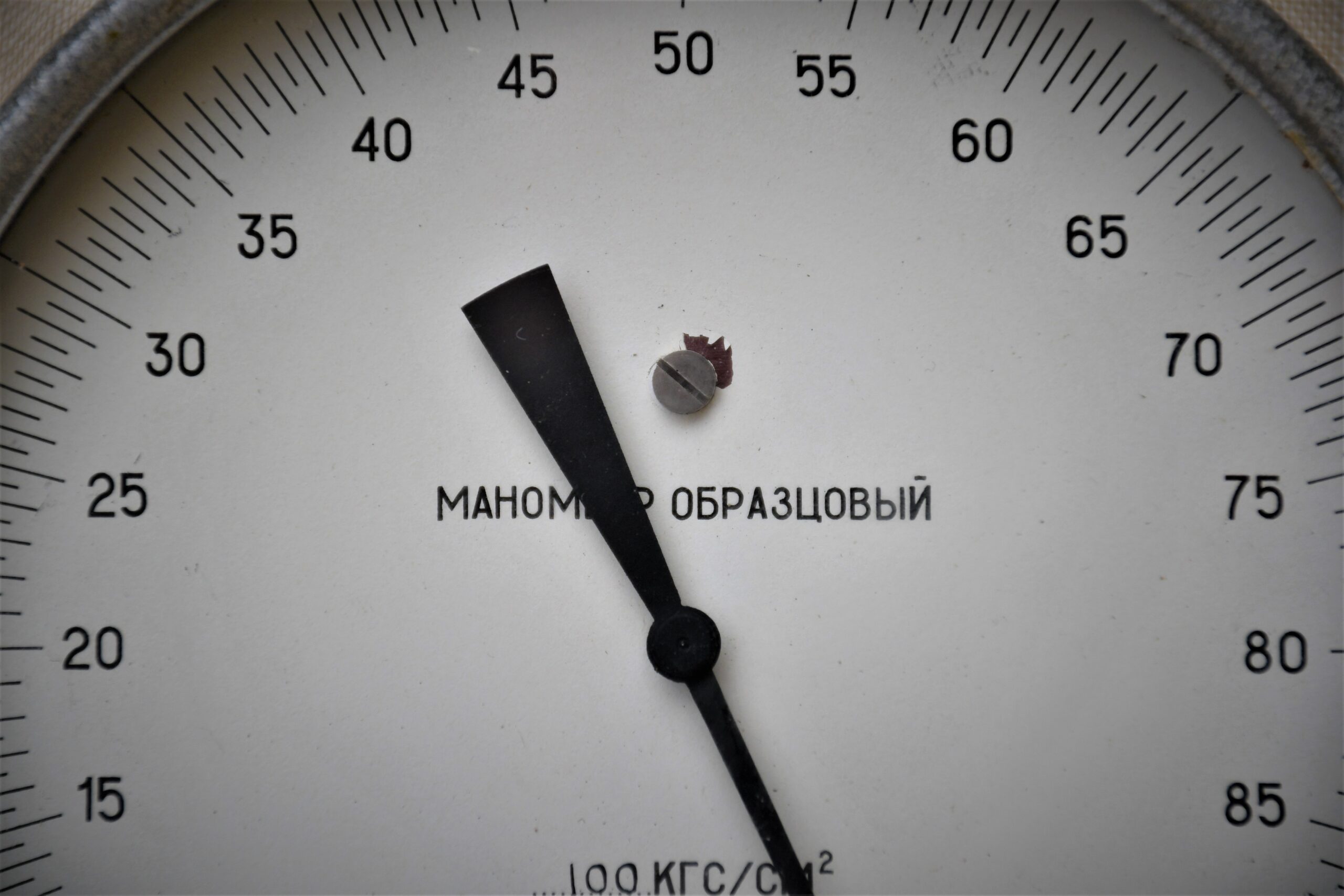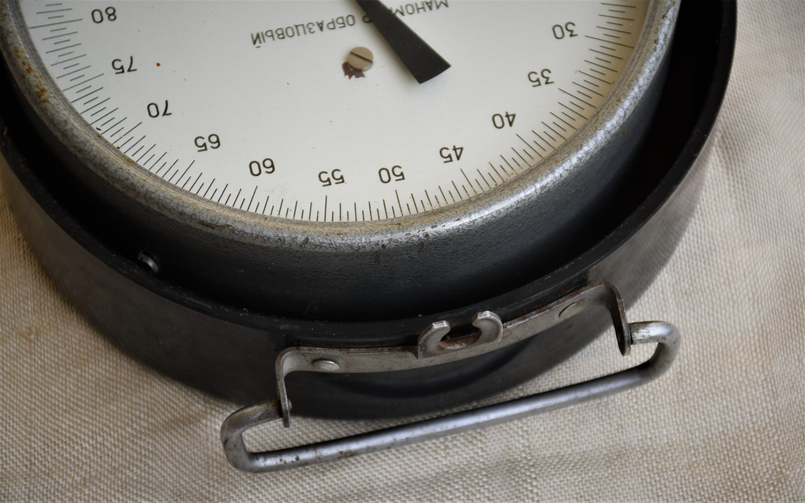 Рядък предмет, впечатляващ образец на Mid-century индустриалния дизайн. В бакелитова кутия с елементи на съветското Art Deco, също много интересна като предмет. Произведен от МЗМ Манометр. Сред най-старите руски предприятия, основано през 1886 и работещо до ден-днешен.