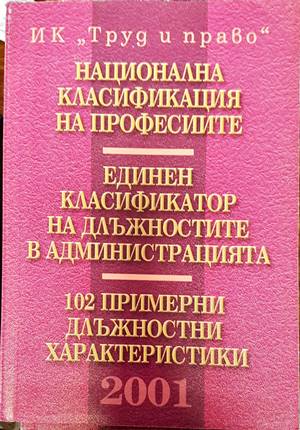 Национална класификация на професиите. Единен класификатор на длъжностите в администрацията. 102 примерни длъжностни характеристики