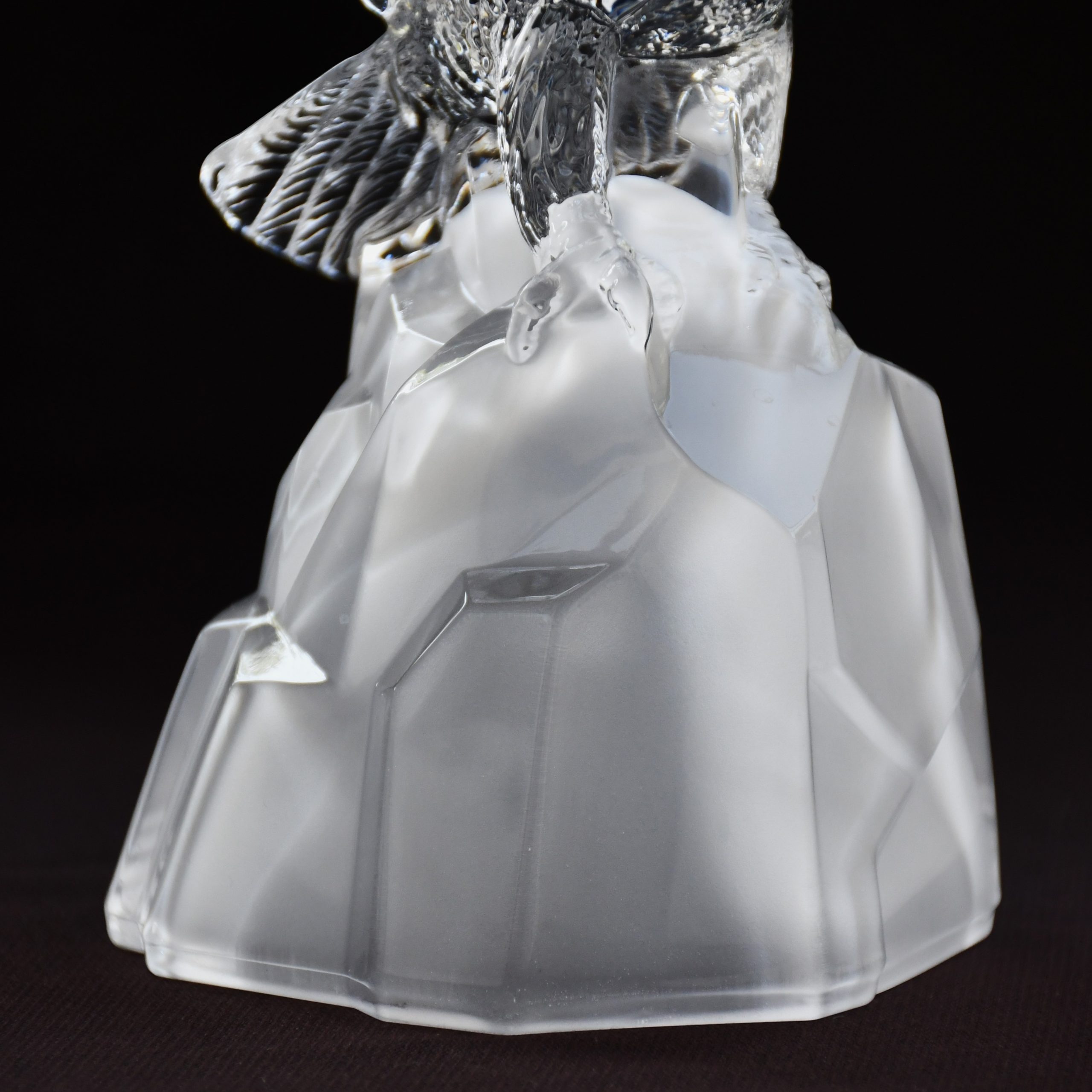 Птицата е от прозрачен кристал, основата-скала е сатенирана.