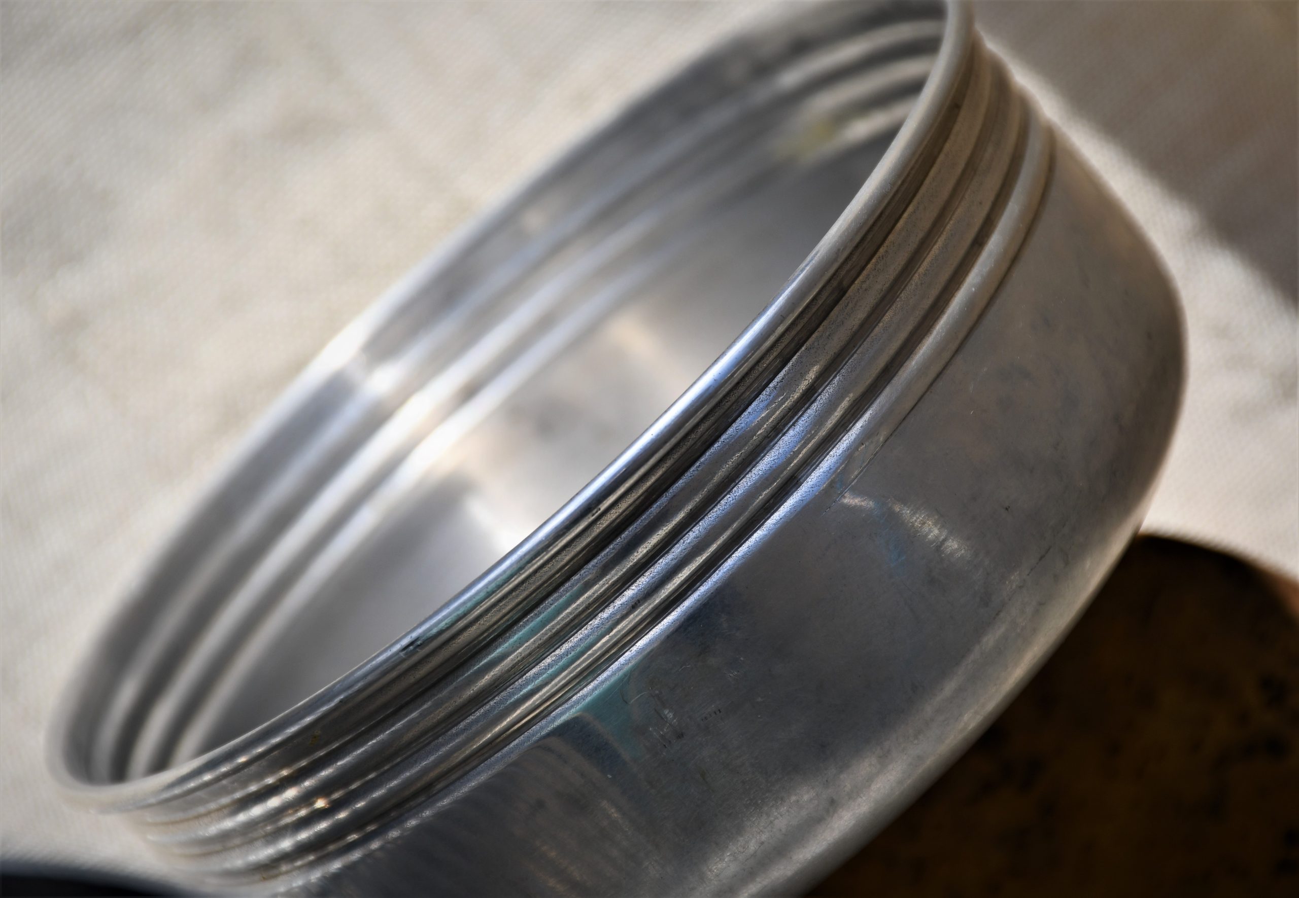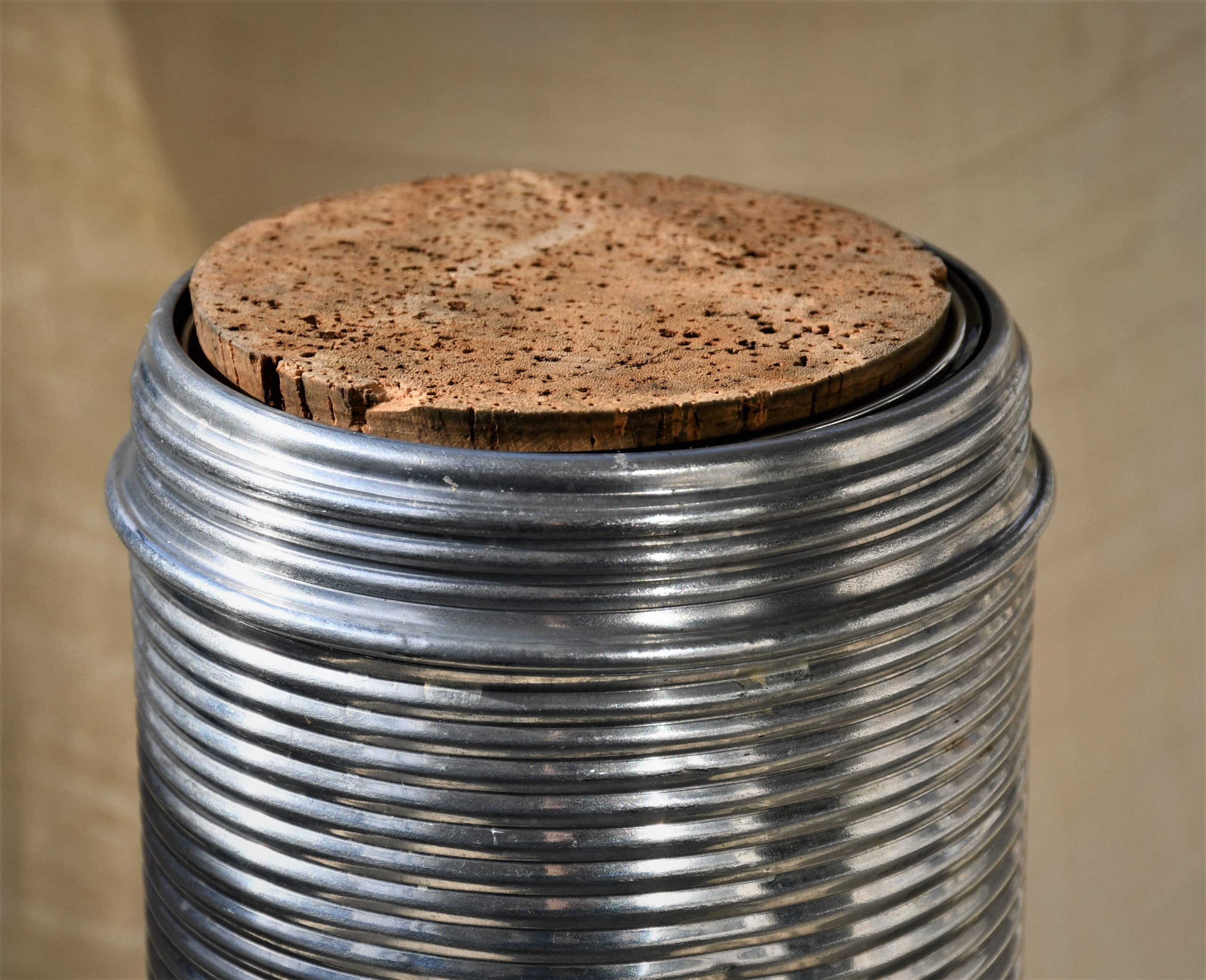 Легендарен предмет, перфектно запазен. Шедьовър на индустриалния дизайн. Алуминиев корпус, гофриран. С оригиналния хартиен етикет, датиран. Фирмени маркировки и в металните части.