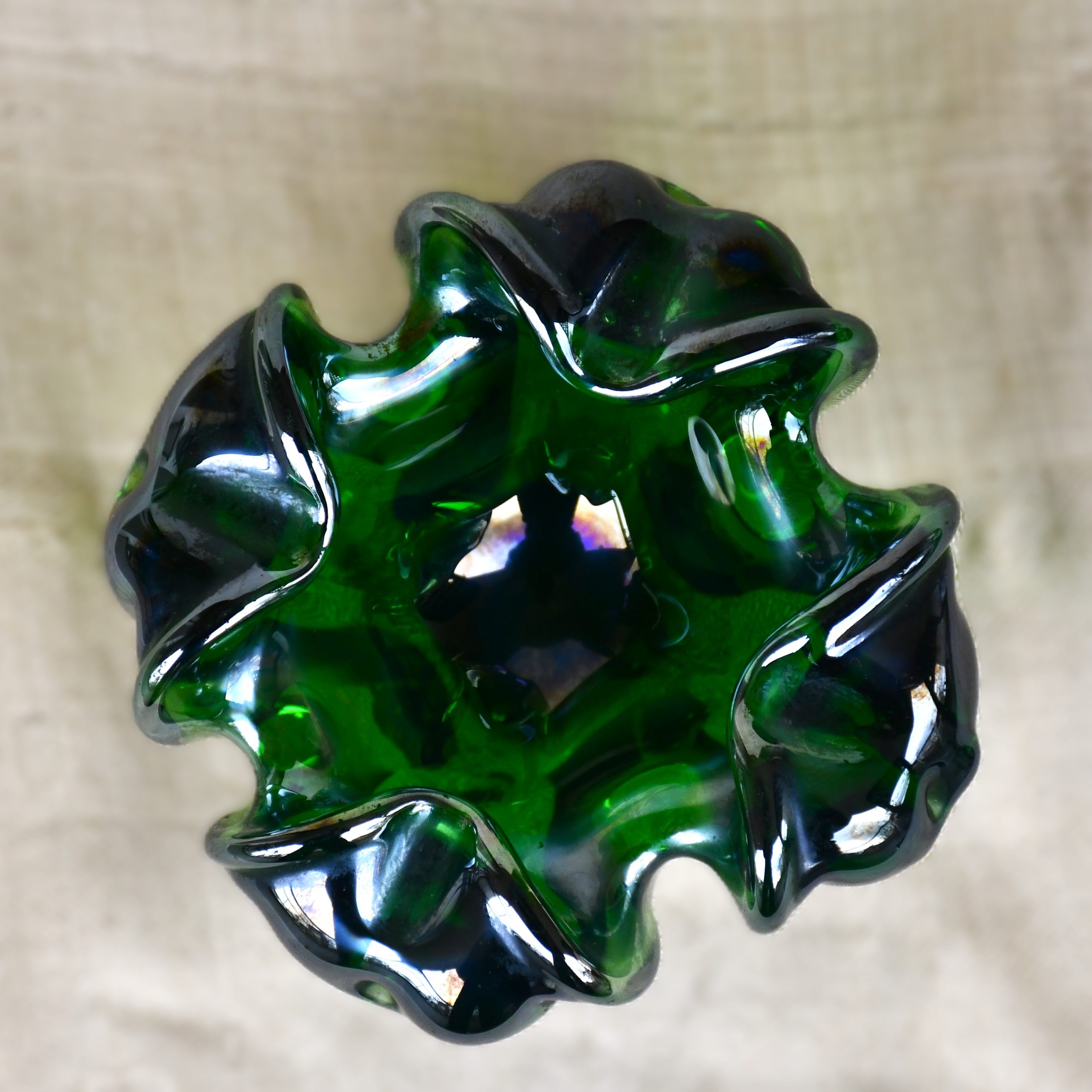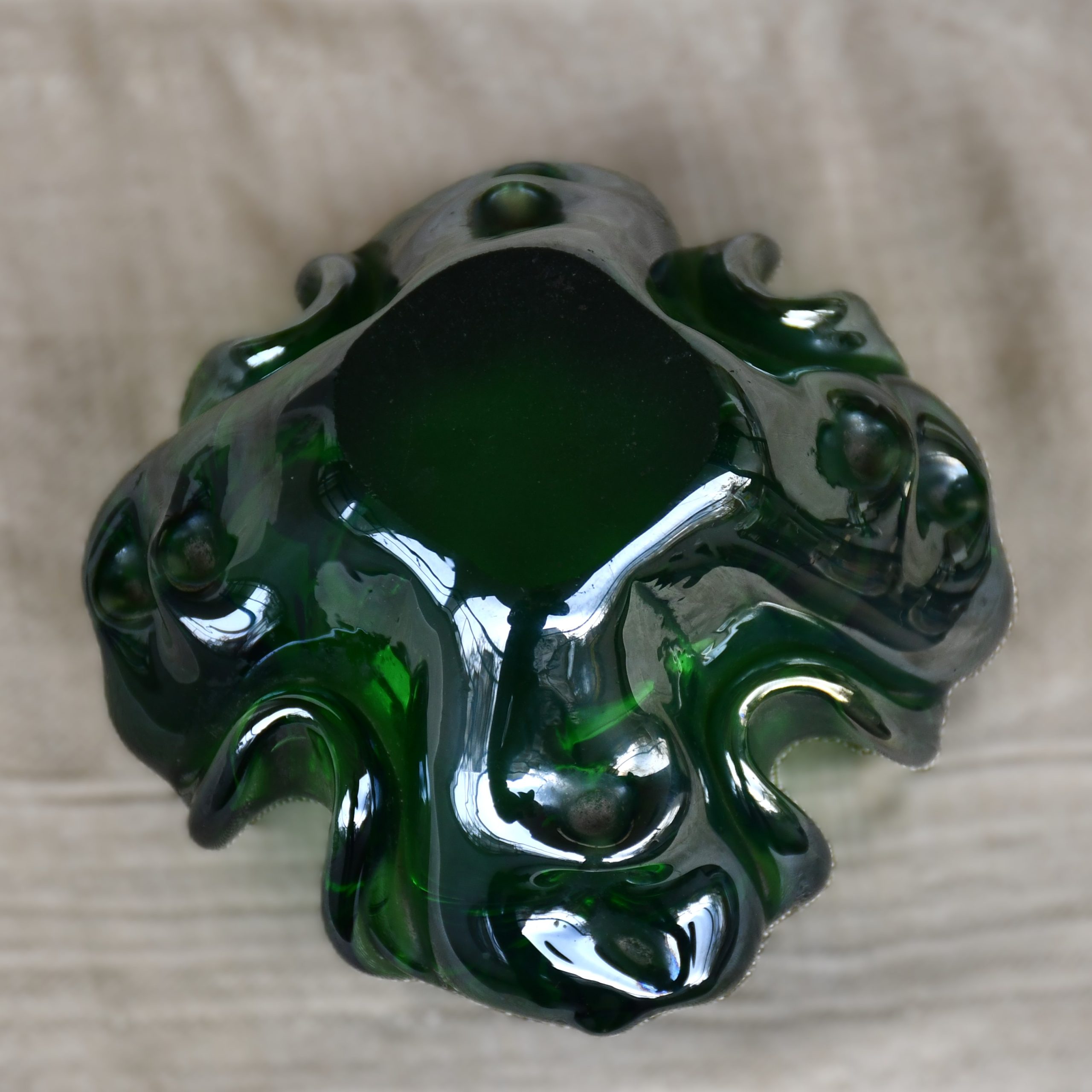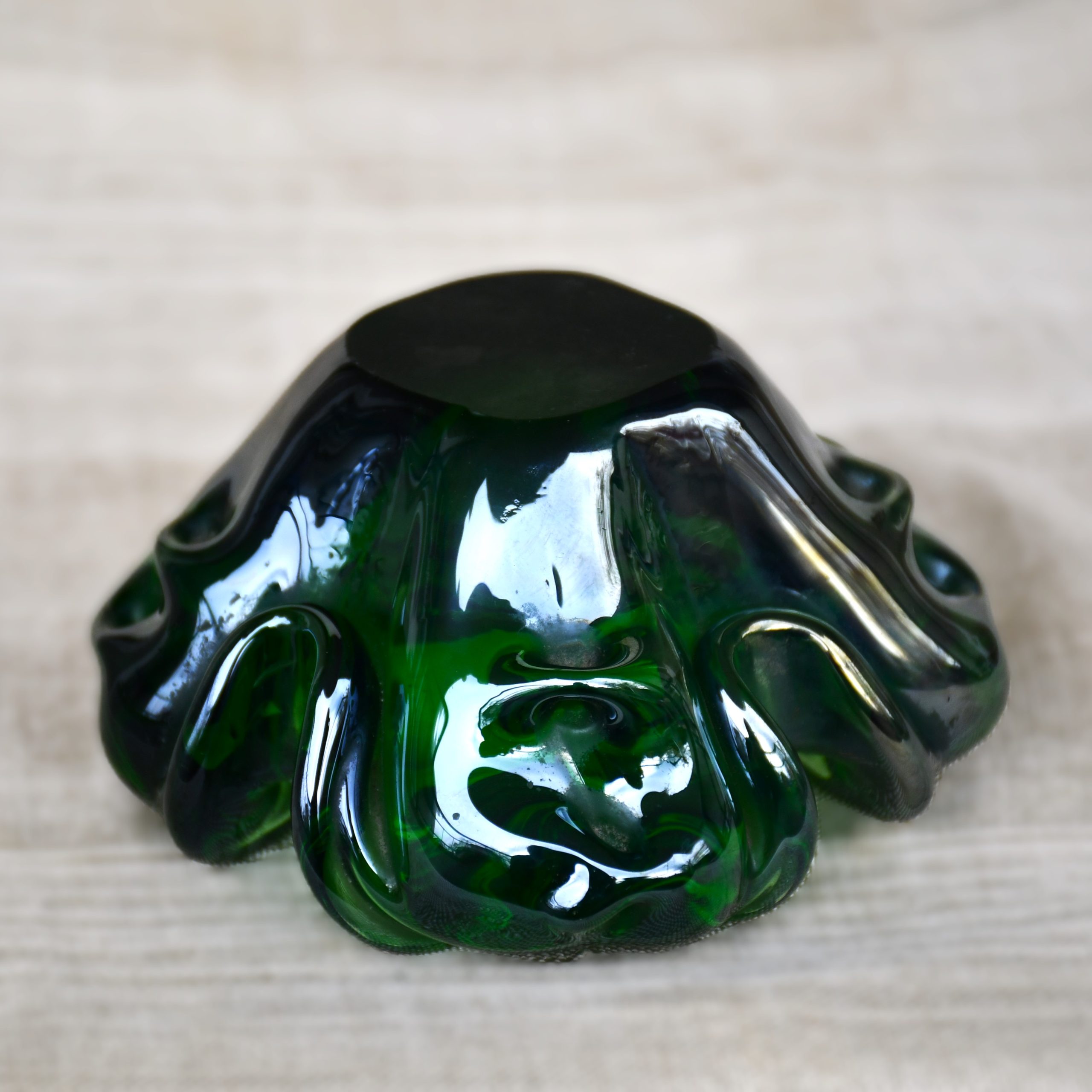 Красив стъклен пепелник от средата на 20 в., художествено стъкло – вер. Чехословакия. Неустановен дизайнер. Изцяло ръчна работа.