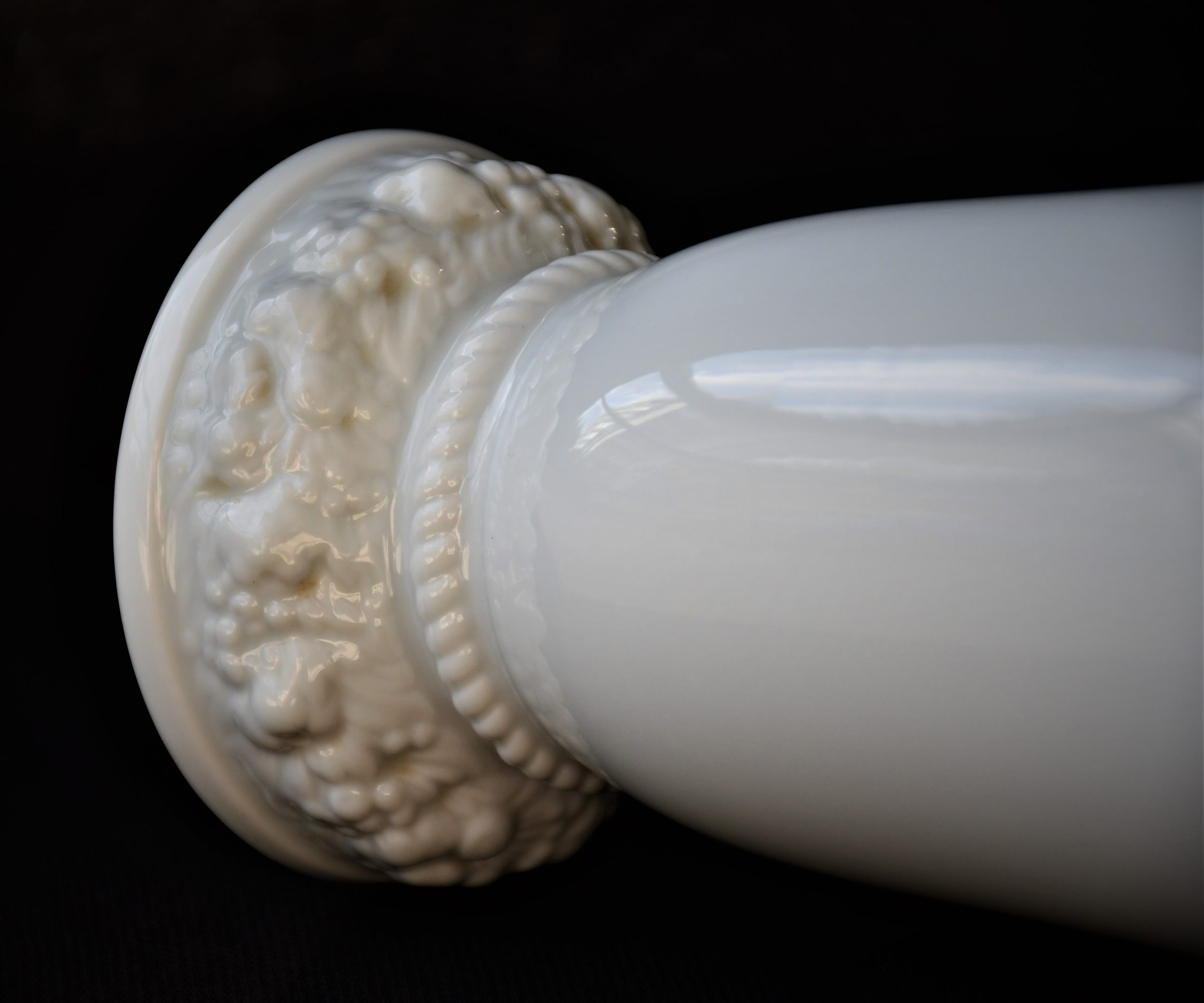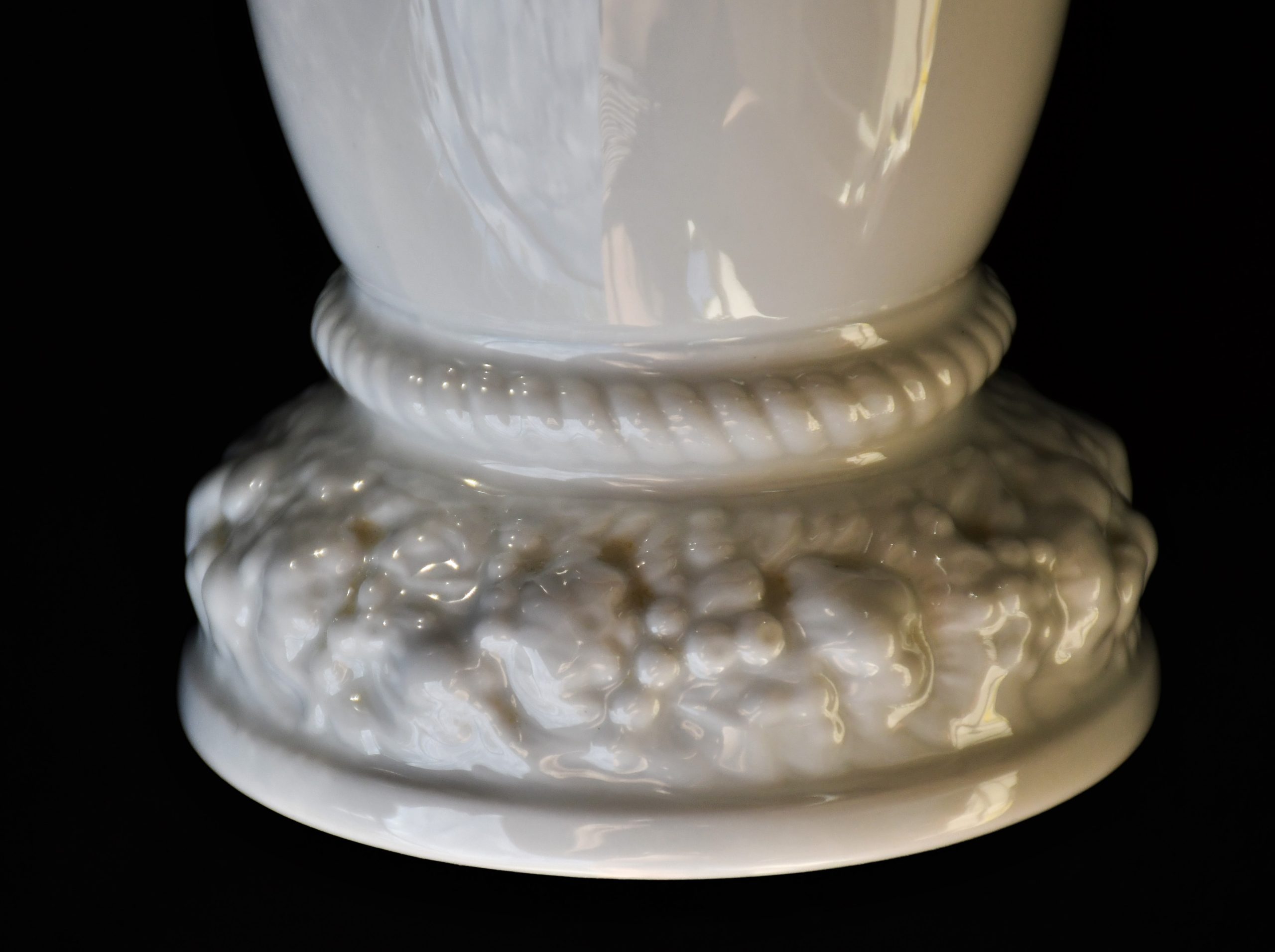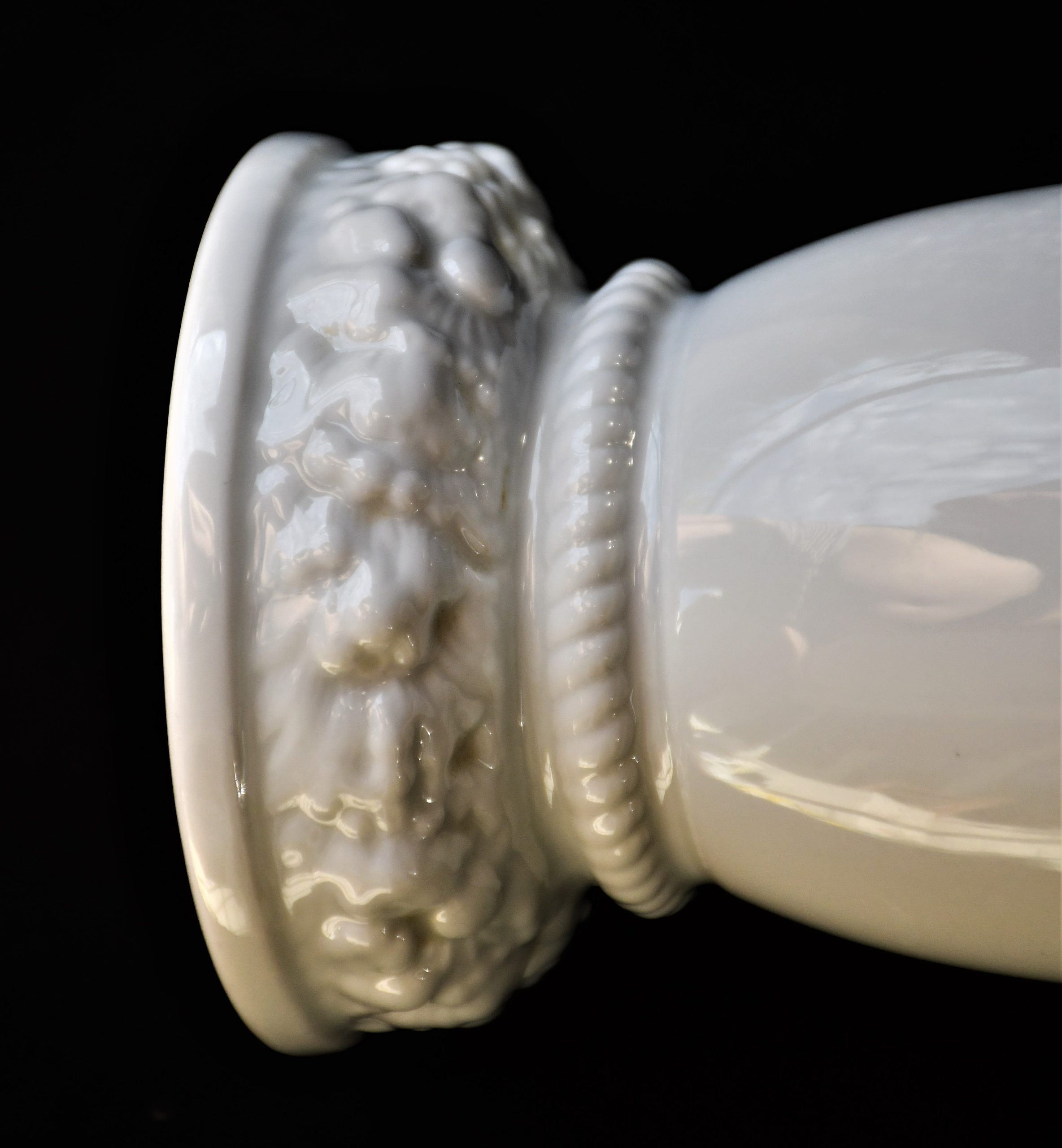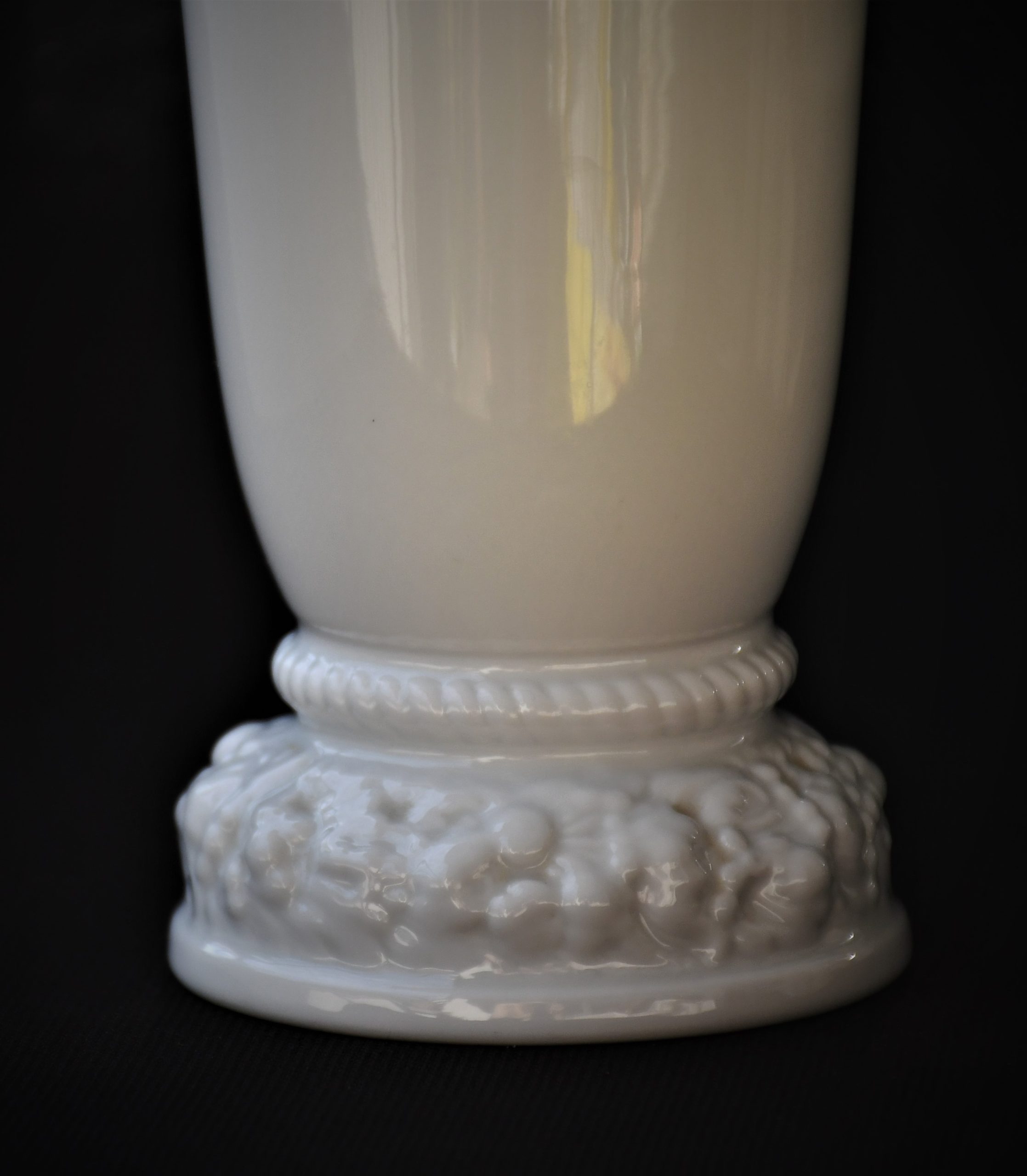 Класически дизайн с изчистени форми. Флорална декорация на базата във висок релеф.Маркирана с логото в тъмно зелено.