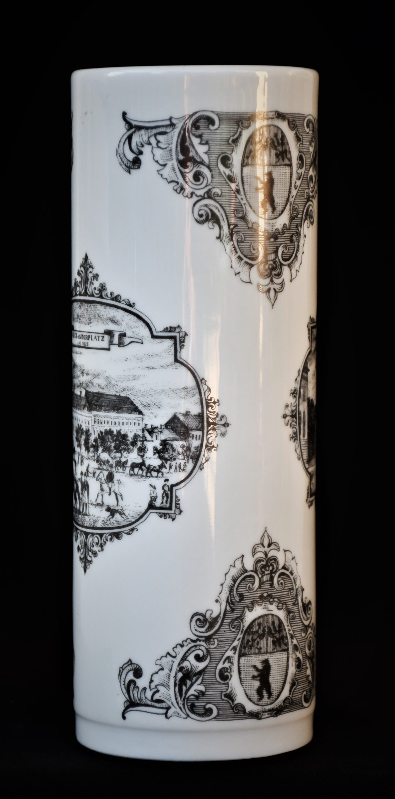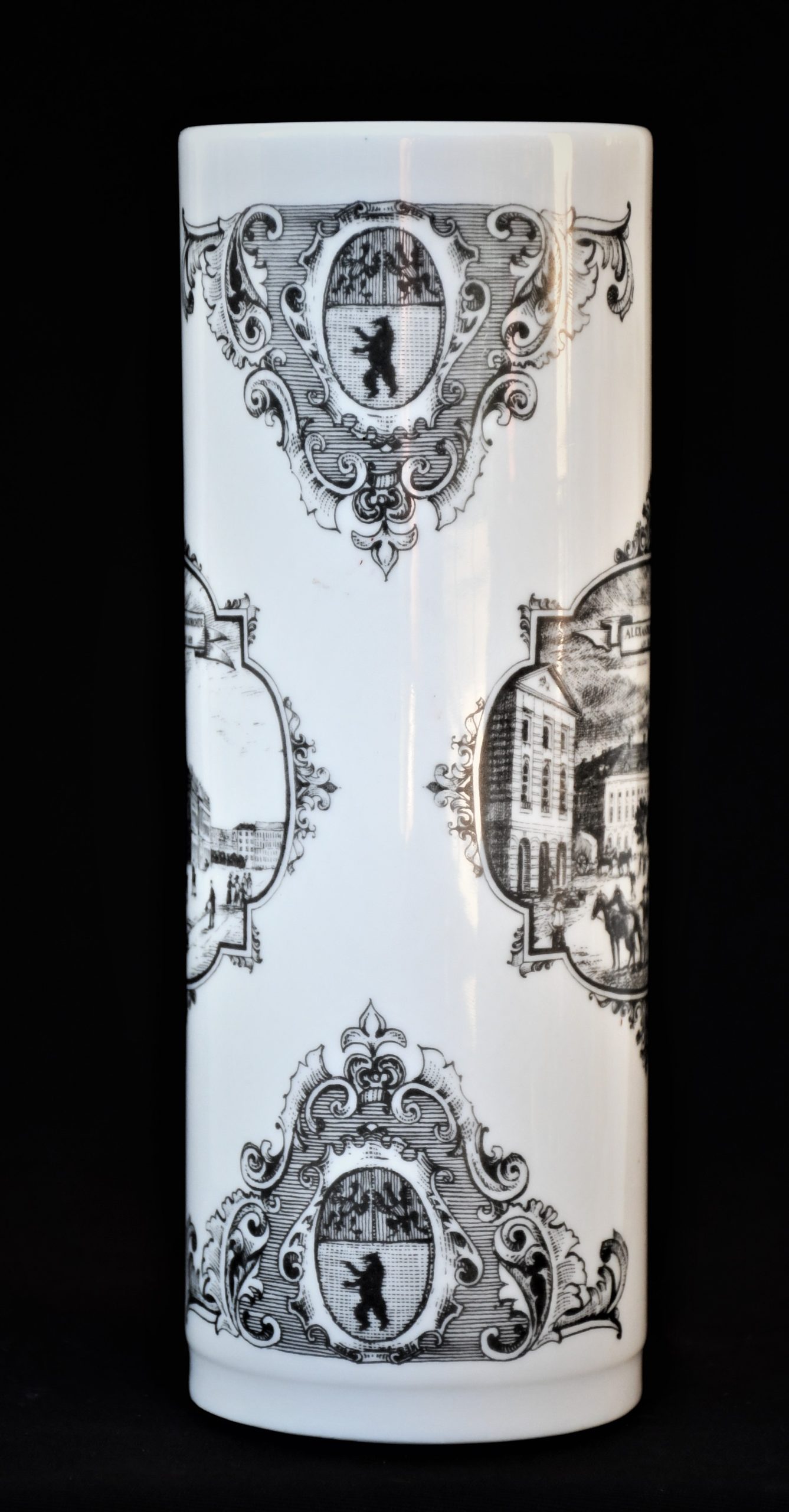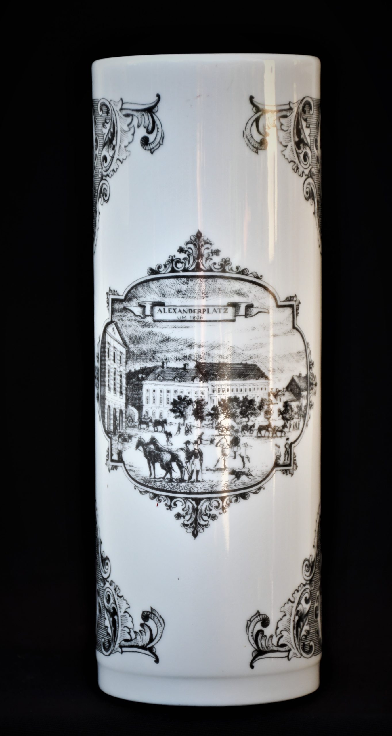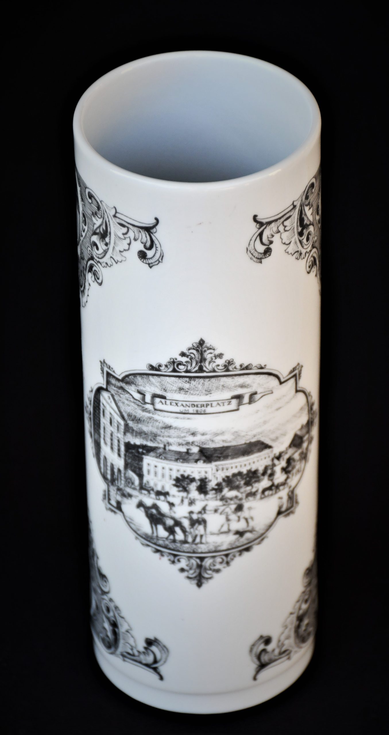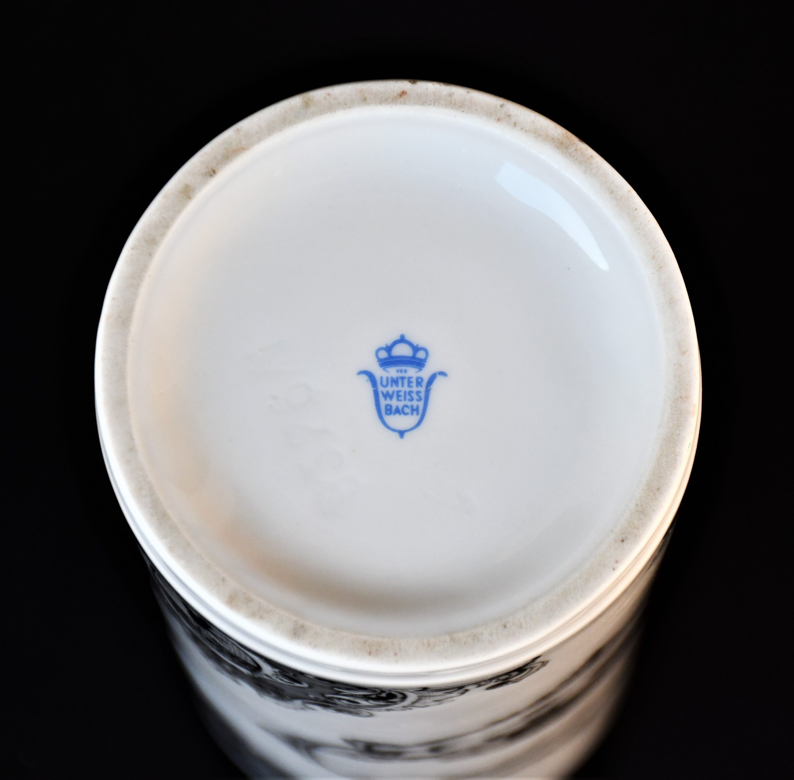 Елегантна порцеланова винтидж ваза, произведена от Unterweissbach, Тюрингия през 1960-70те. Цилиндрична форма. Лимитирано издание.