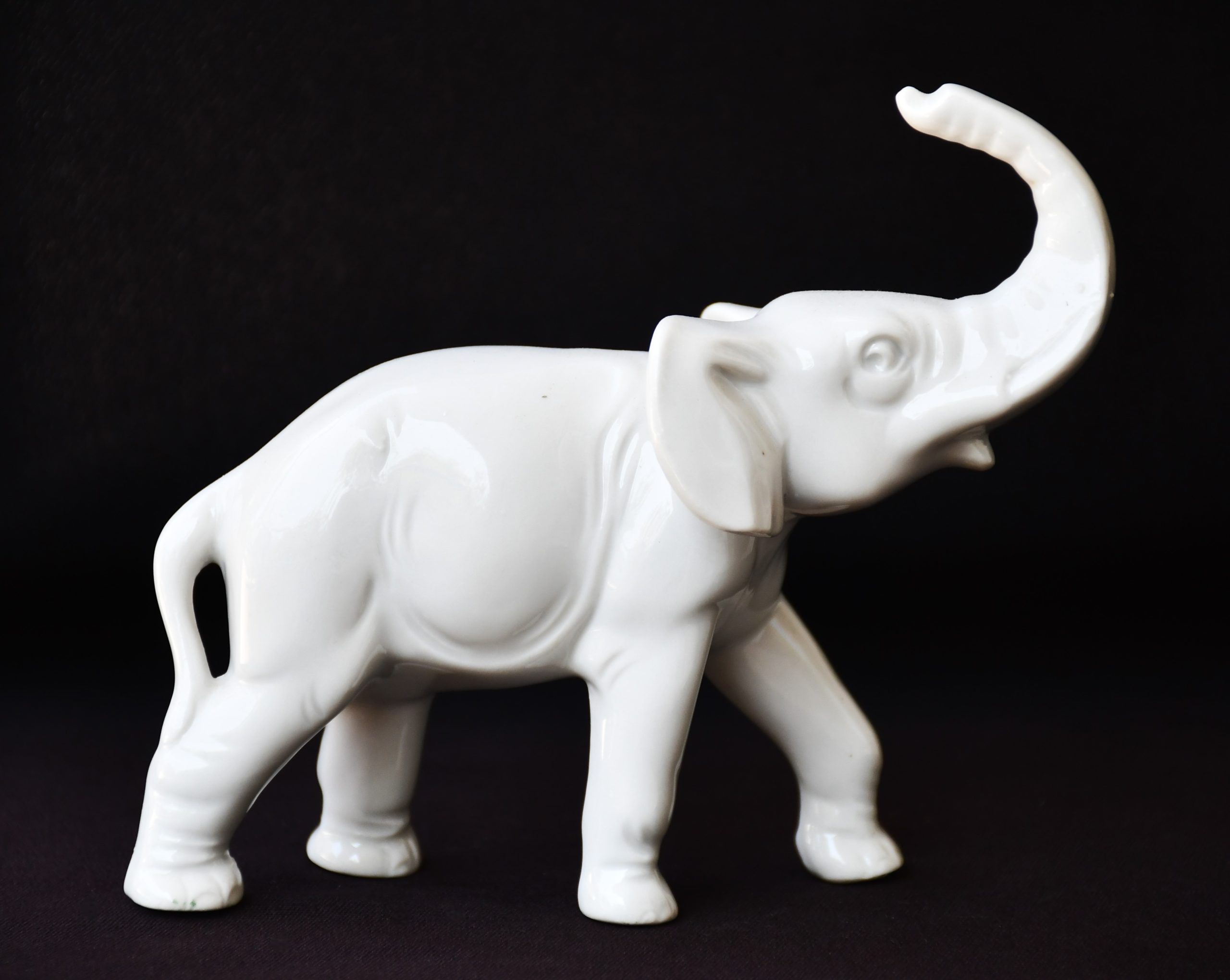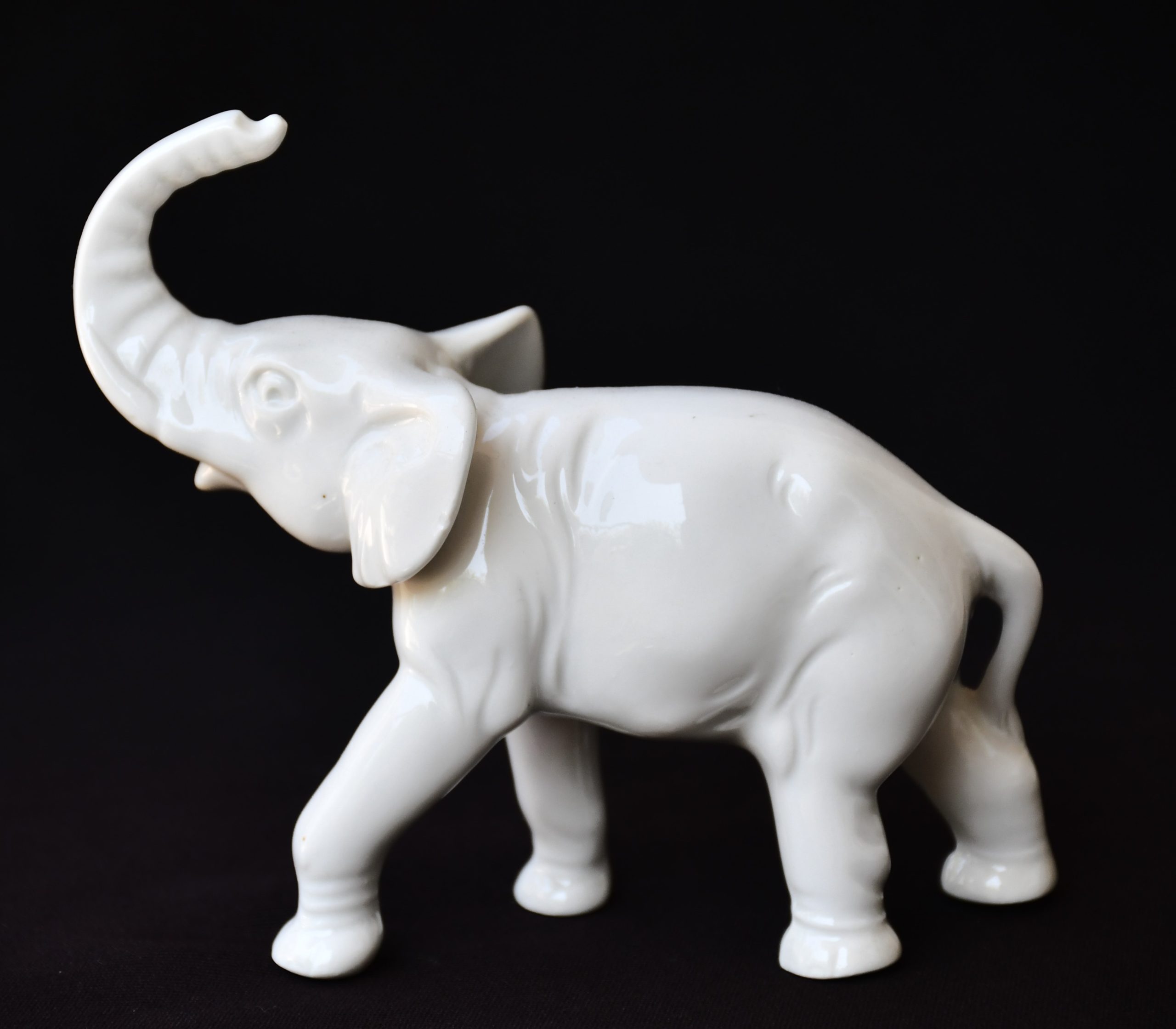 Чаровна порцеланова статуетка „Слон“, винтидж, създадена от класическия немски производител „Lippelsdorf“ през 1960-те.