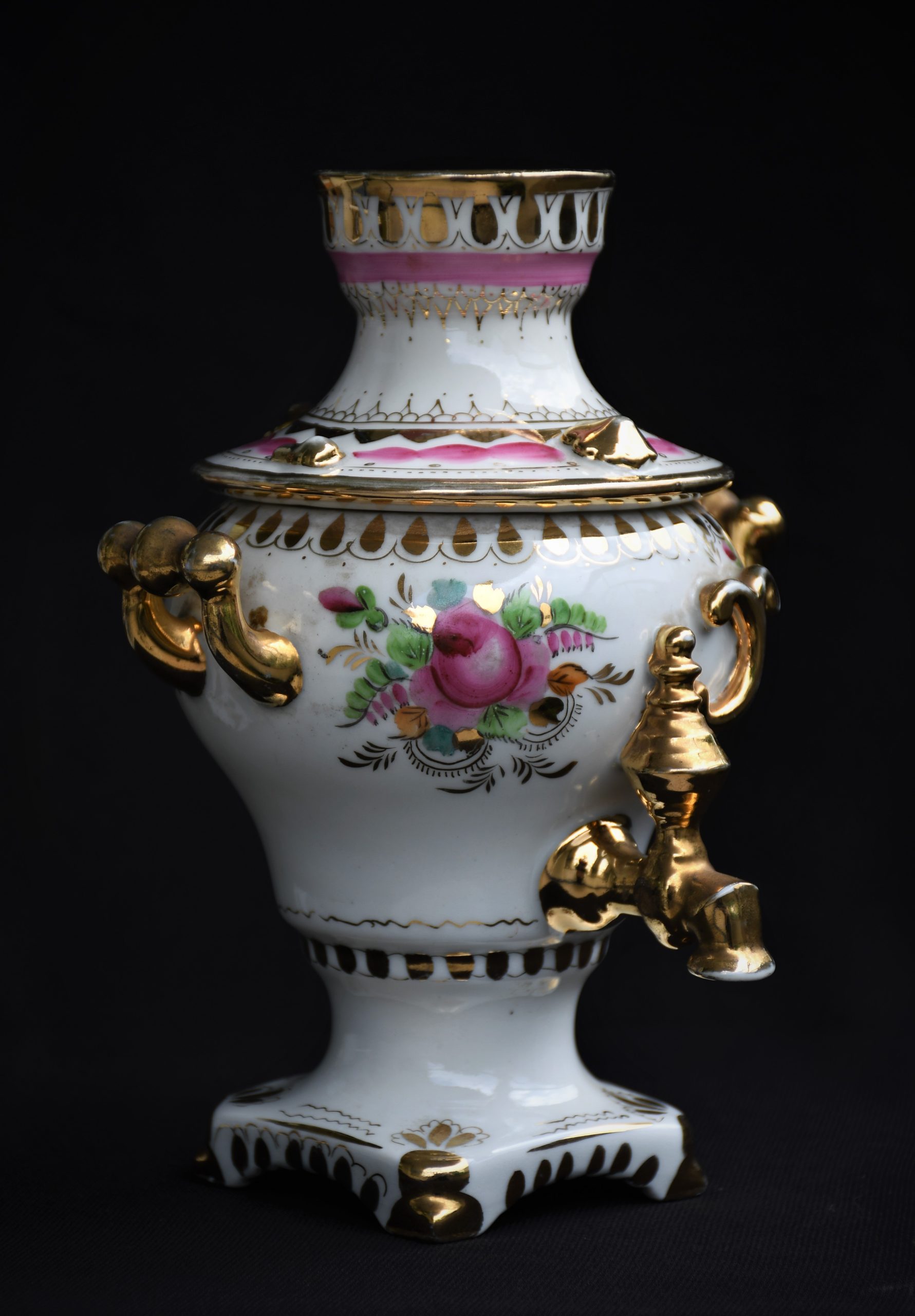 Наистина рядка находка! Прекрасен порцеланов самовар от Гжел (Гжель), СССР. Ръчно рисуван. Маркиран. Датировка: 1960-те.