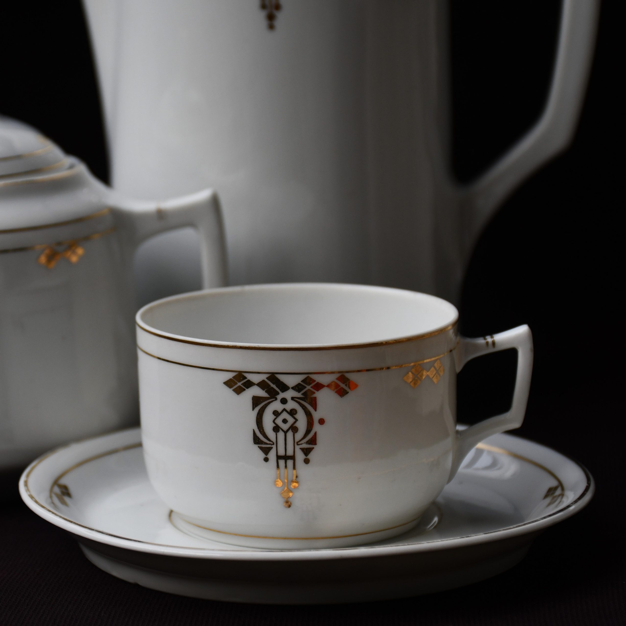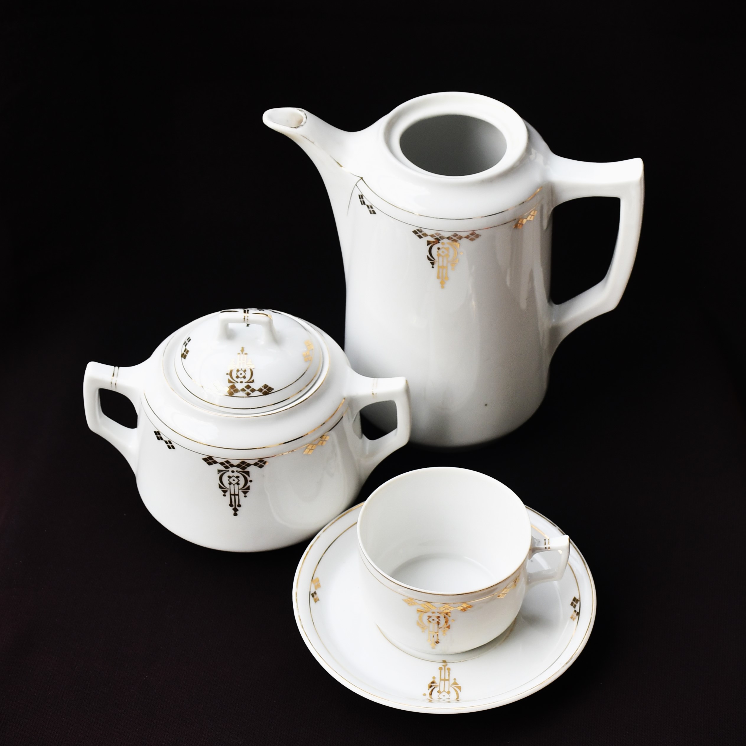 (Почти) пълен сервиз за кафе/мока (5 чаши + 5 чинийки + захарница + чайник без капак) – предполагаемо Чехословакия. Няма маркировка, което е обичайно за по-старите производства. (Вторият заподозрян е някоя от германските компании.)