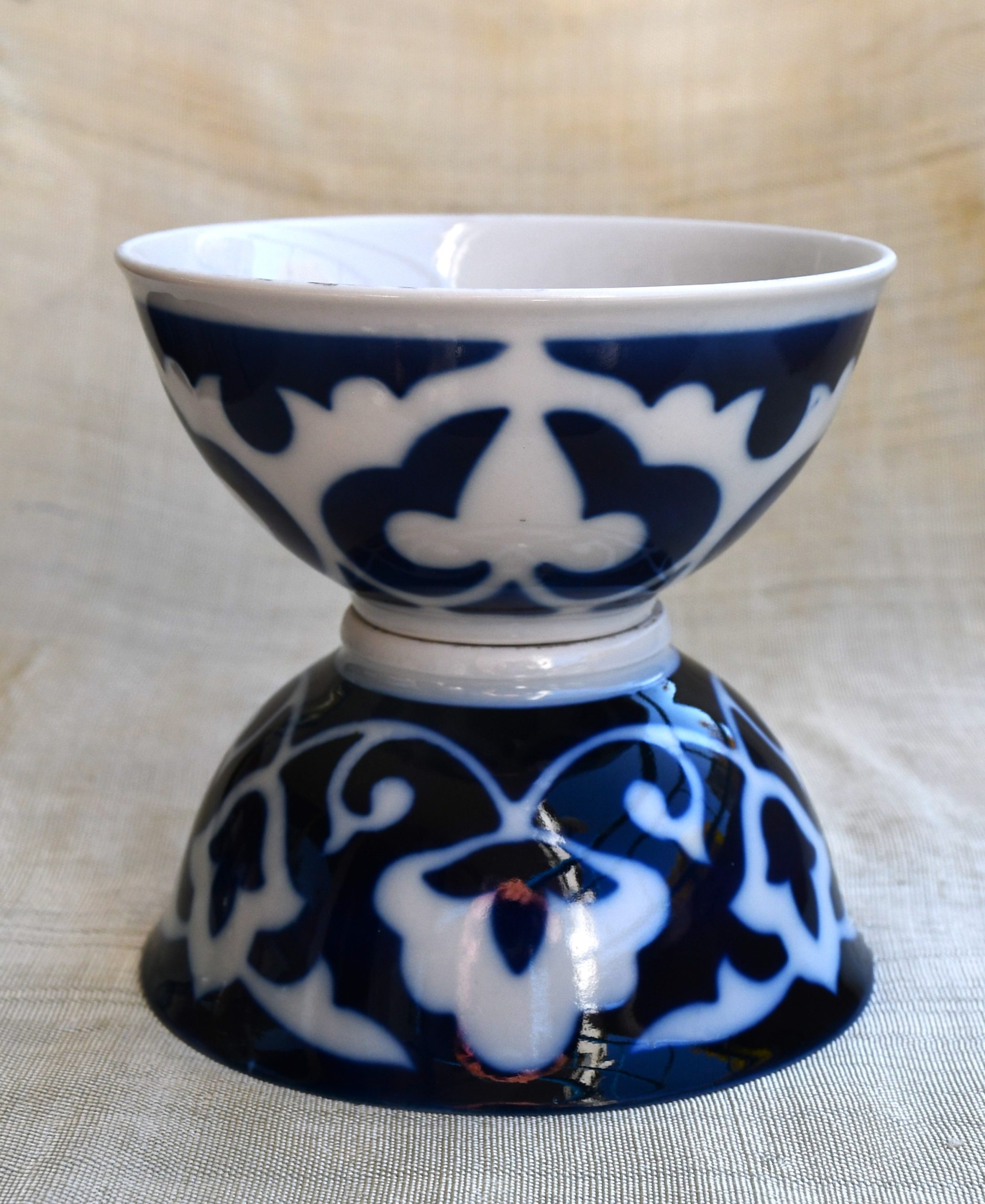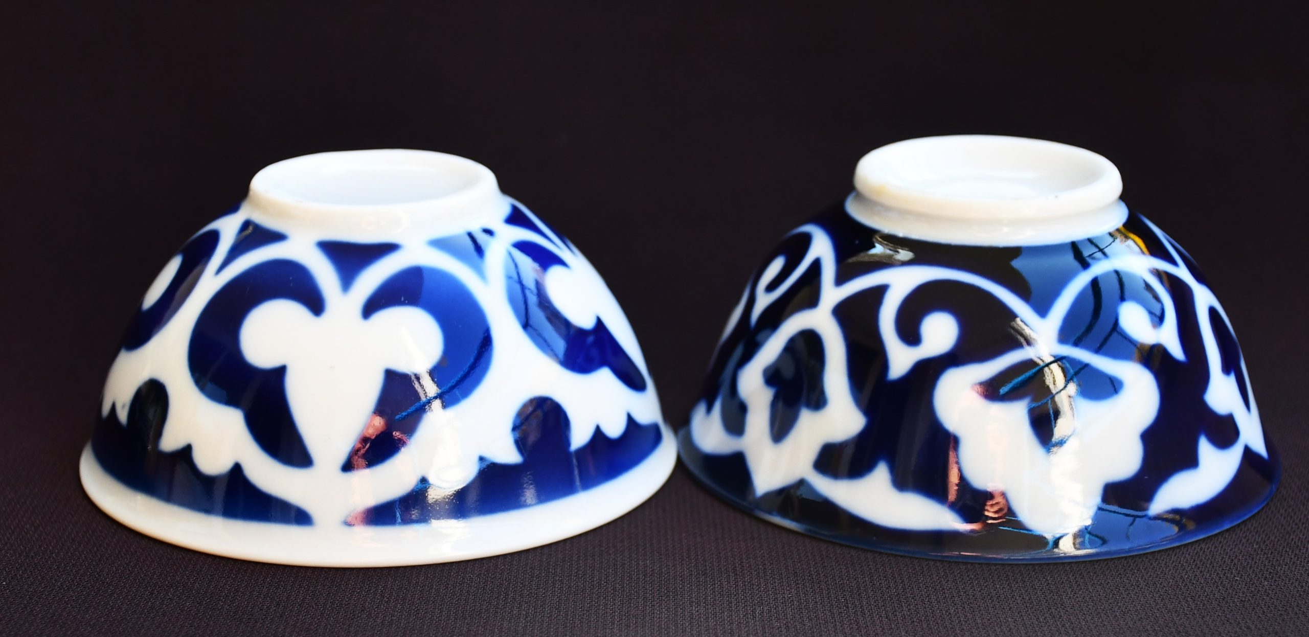 Едната е с огледална декорация – същият декор, но местата на цветовете са обърнати – може би да се разпознава коя е чашата на тамадата…:)