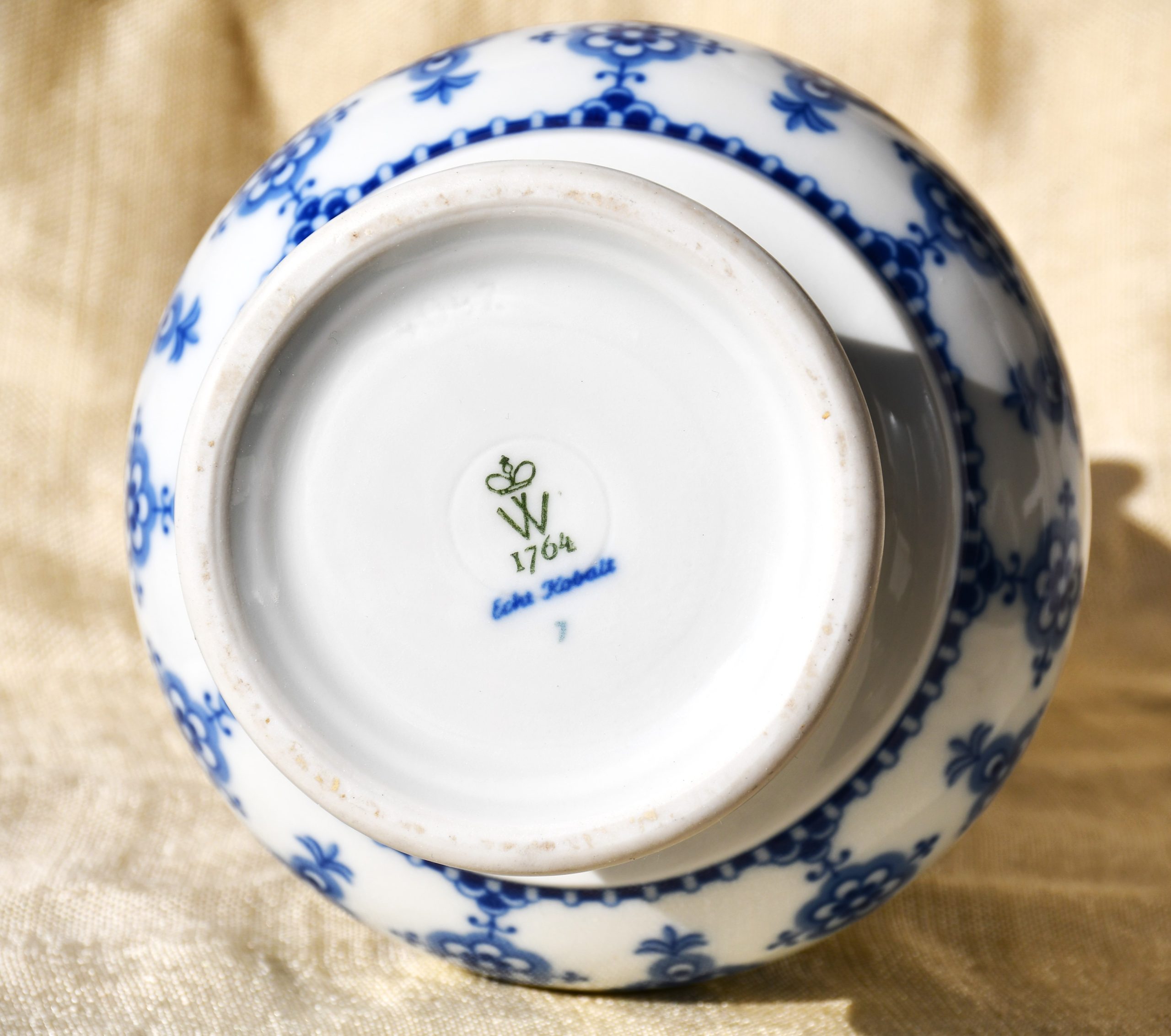 Датировка: 1970-те, ГДР. Материал: порцелан. Декорация на флорална тема. Монохромия – ехт кобалт.