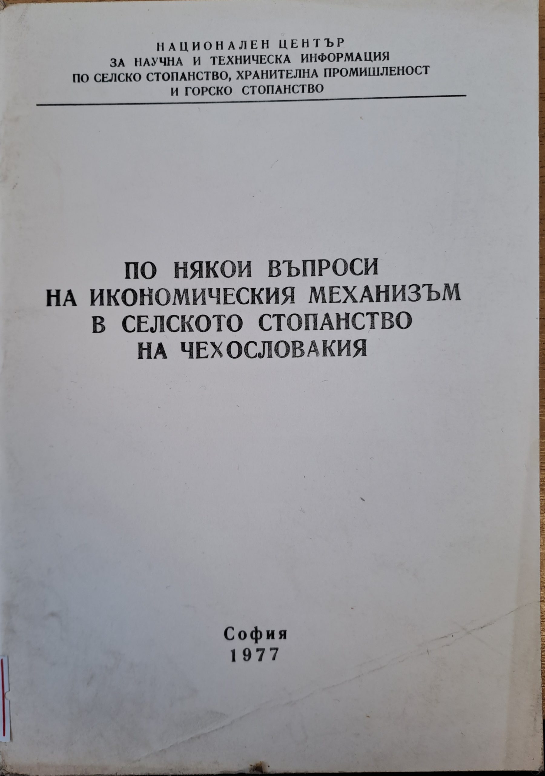 По някои въпроси в икономическия механизъм в селското стопанство в Чехословакия