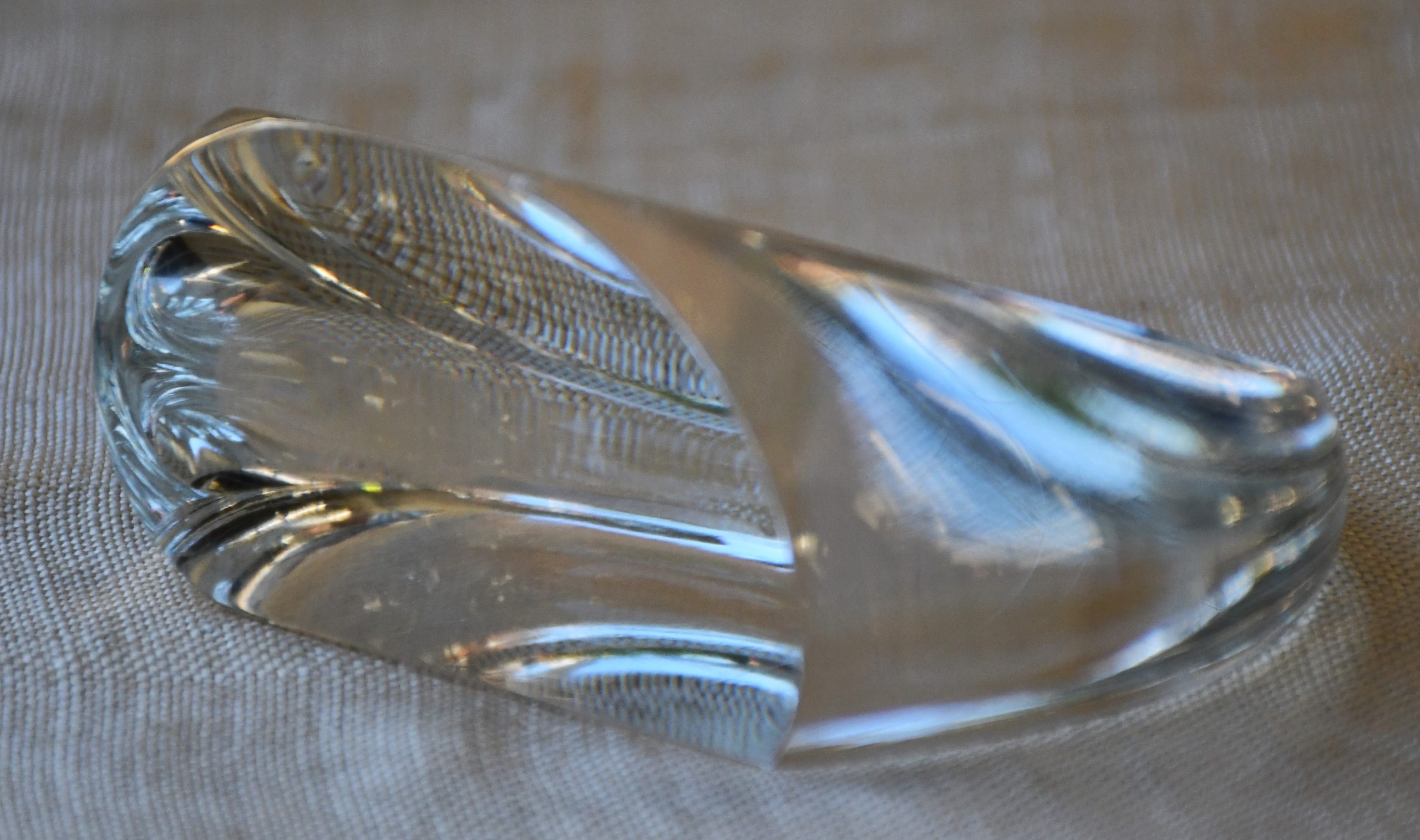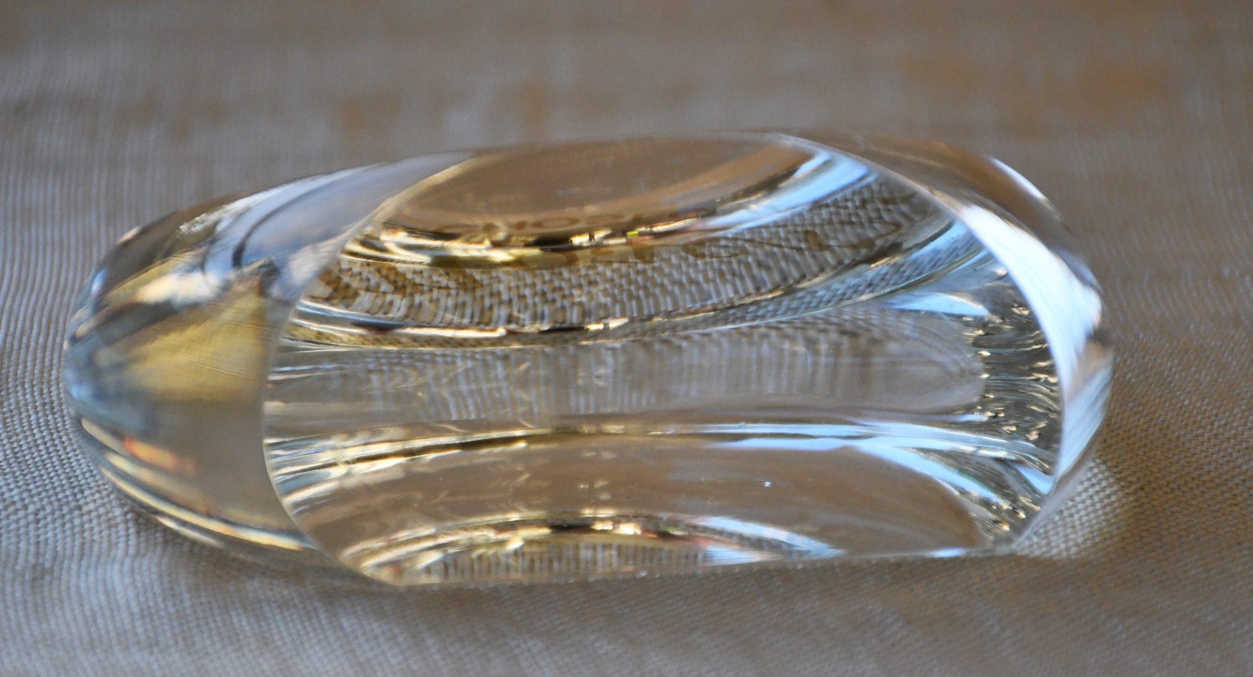 Ръчно направено и ръчно шлифовано. Тежко, с неподвластен на модите дизайн. Освен със златното лого на предната стена е маркирано и на дъното. Обичайното перфектно качество на изработка и магическа рефракция на светлината. Безброй оптични ефекти.