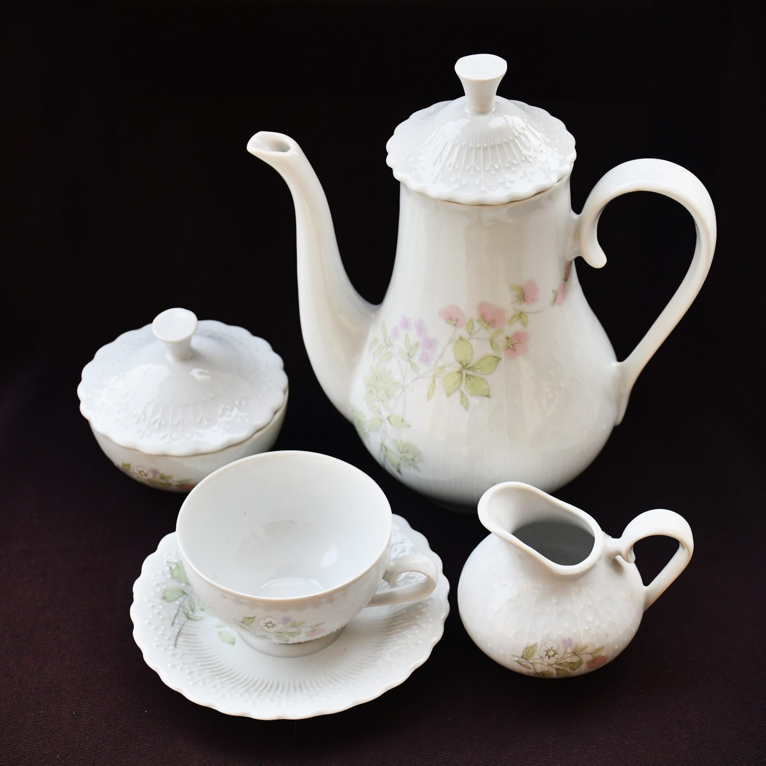 Пълен сервиз за чай/кафе (15 части) на порцелановия завод „Дянко Стефанов“ – Разград.