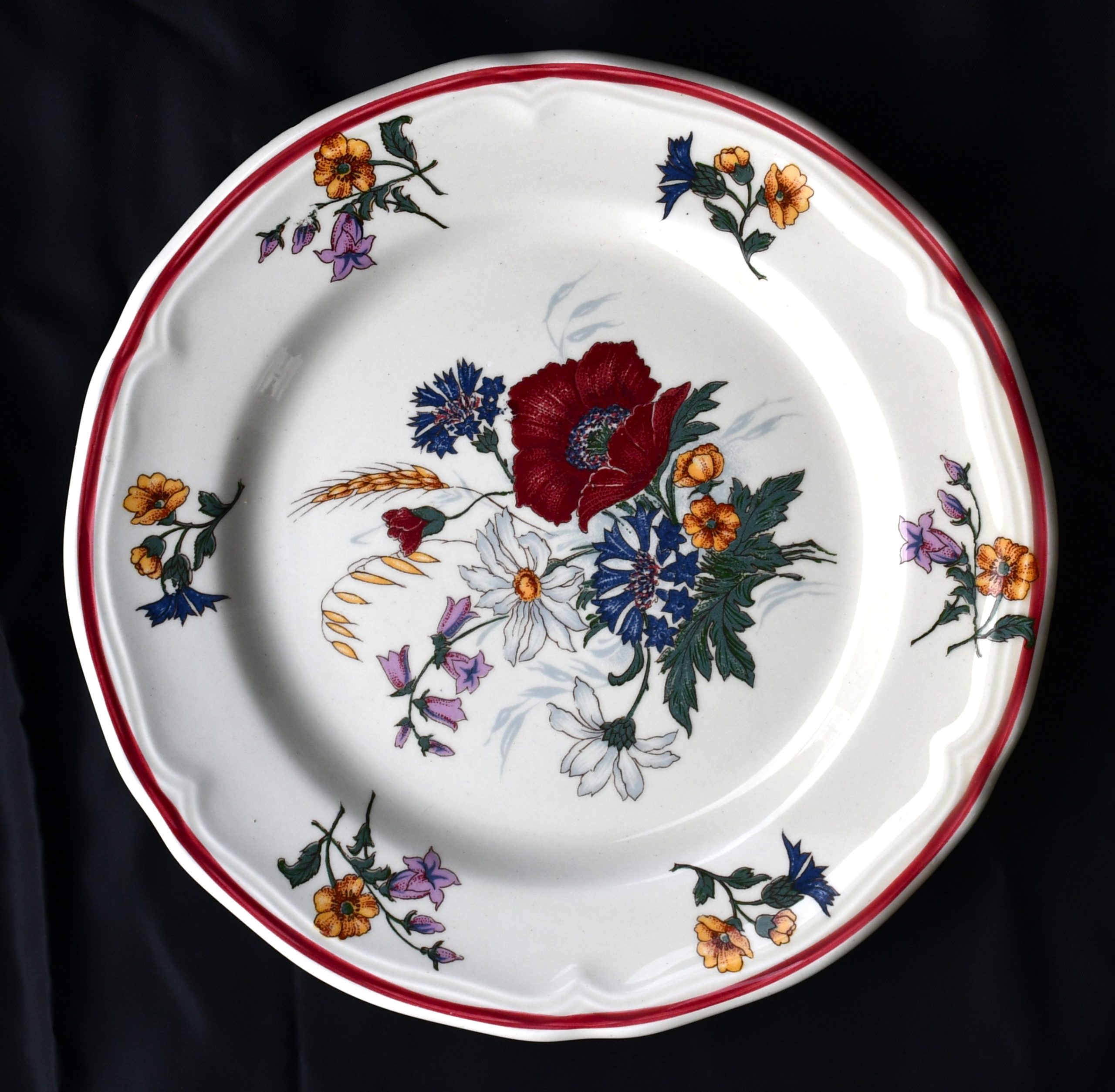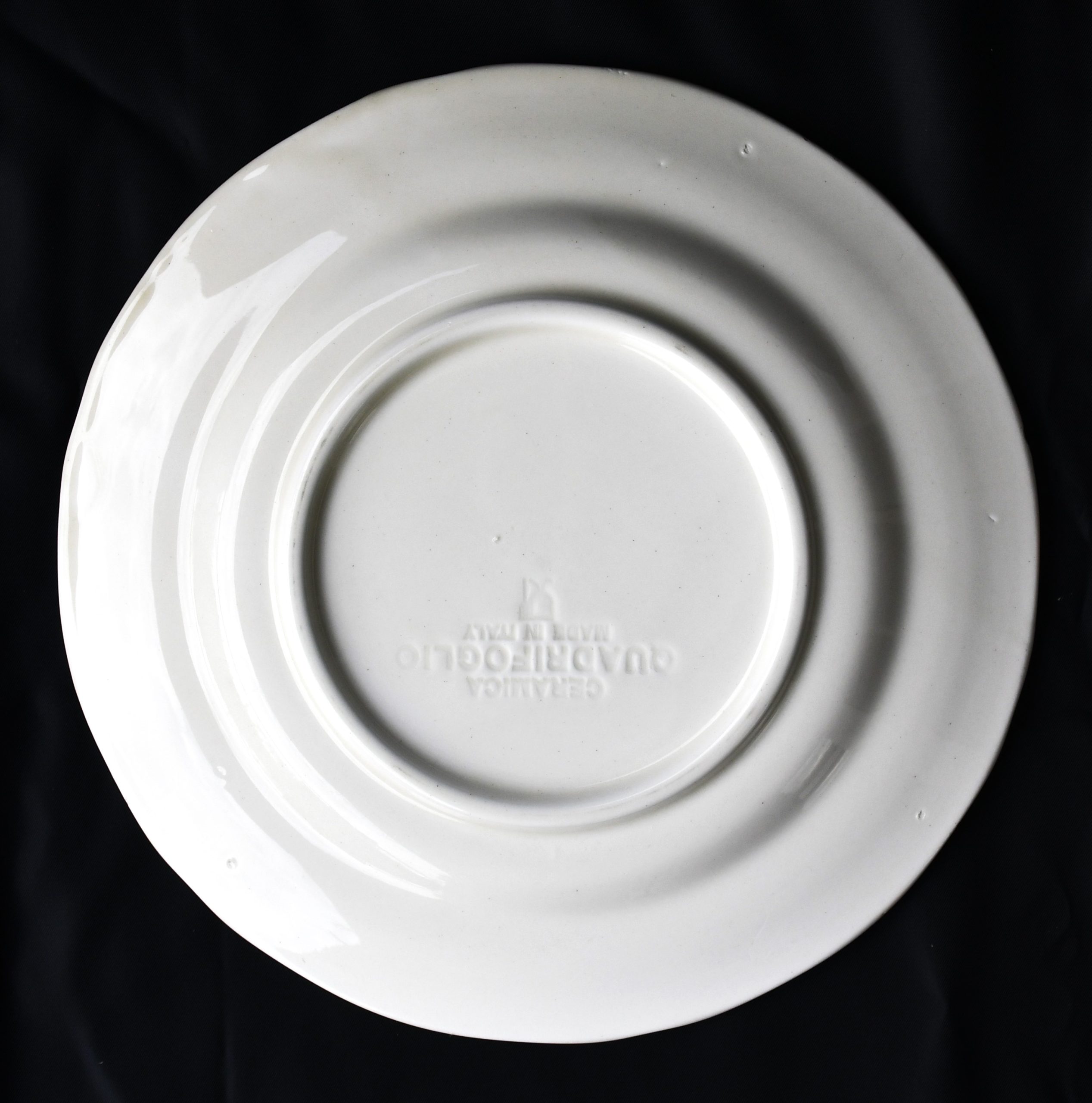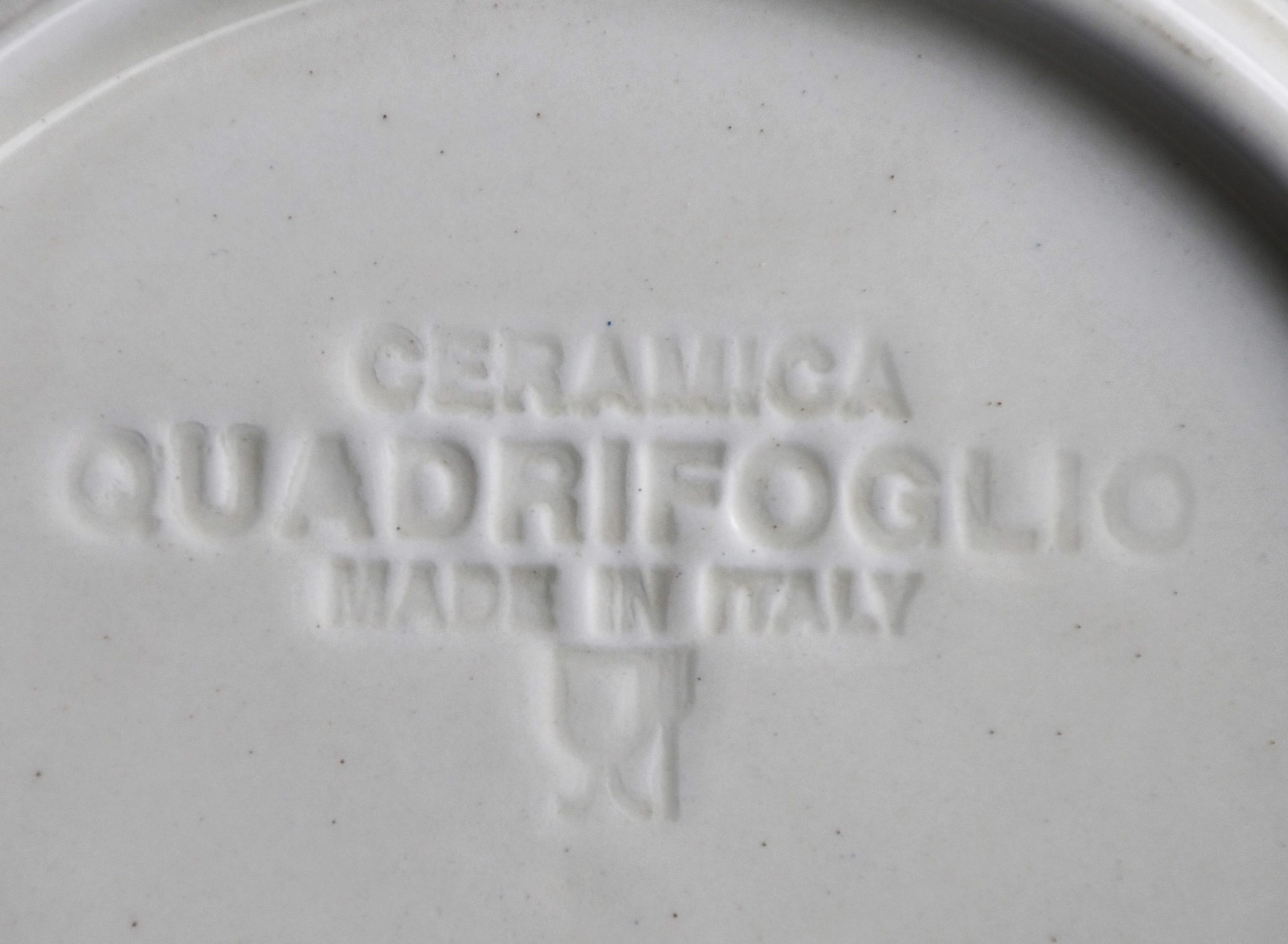 Пълен комплект (6) винтидж чинии на Quadrifoglio Ceramica, бяла керамика с глазура. Многоцветна флорална декорация.