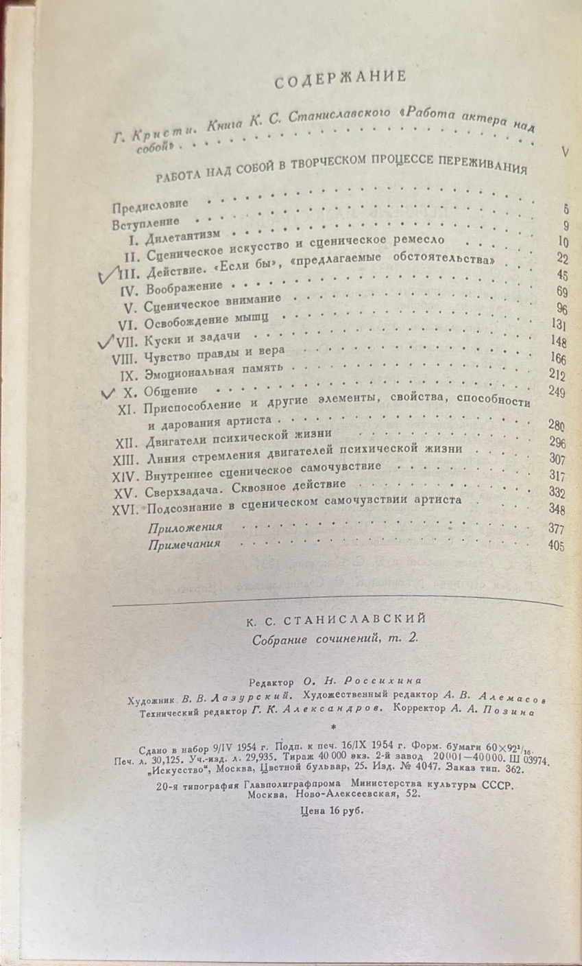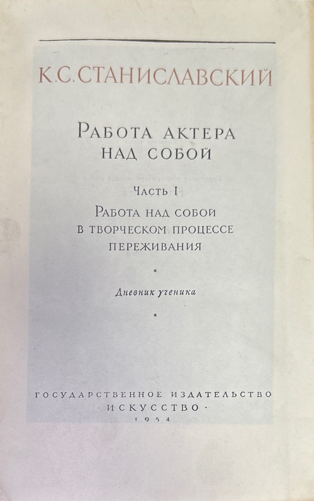 Работа актера мас собой. Част 1. Дневник учченика